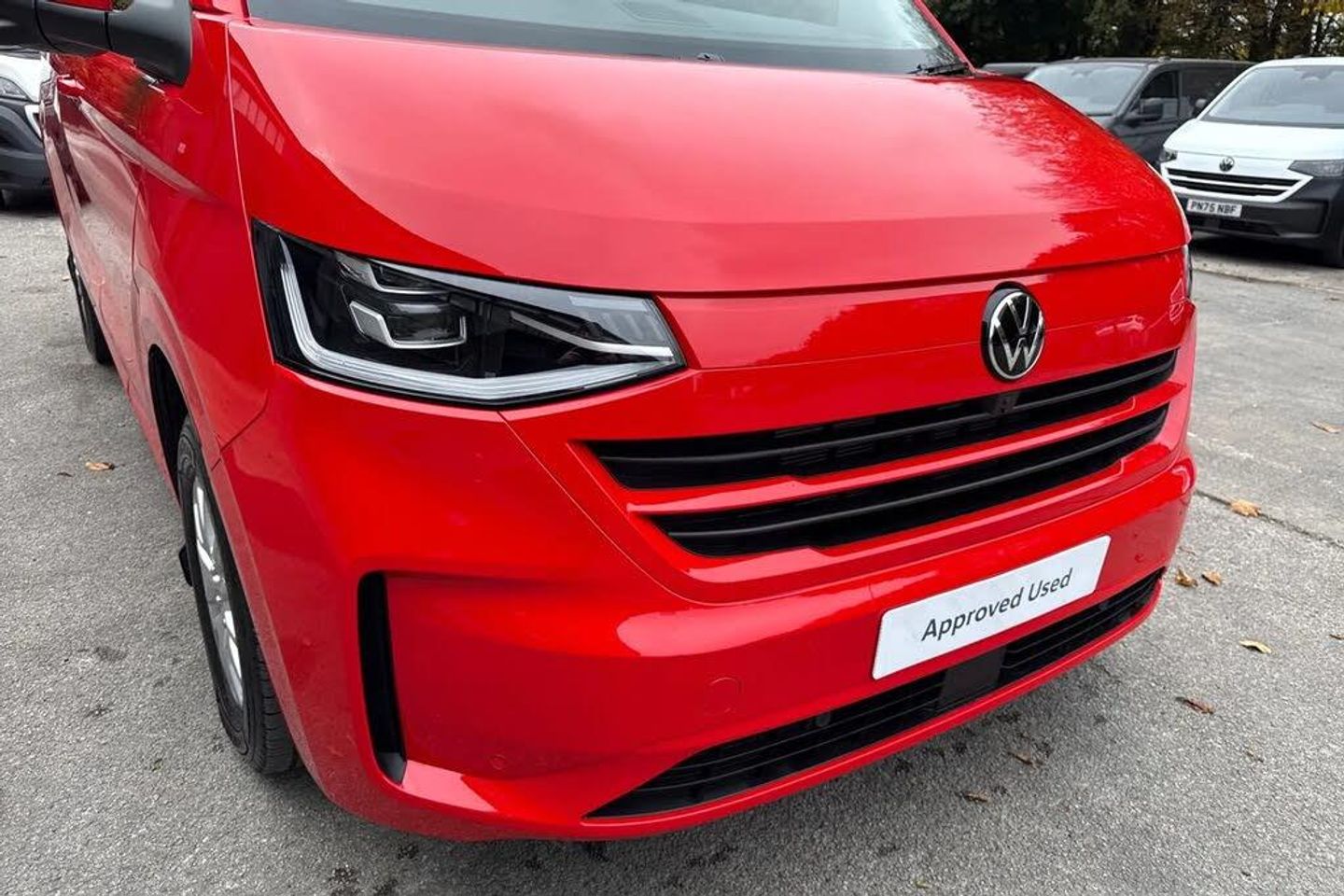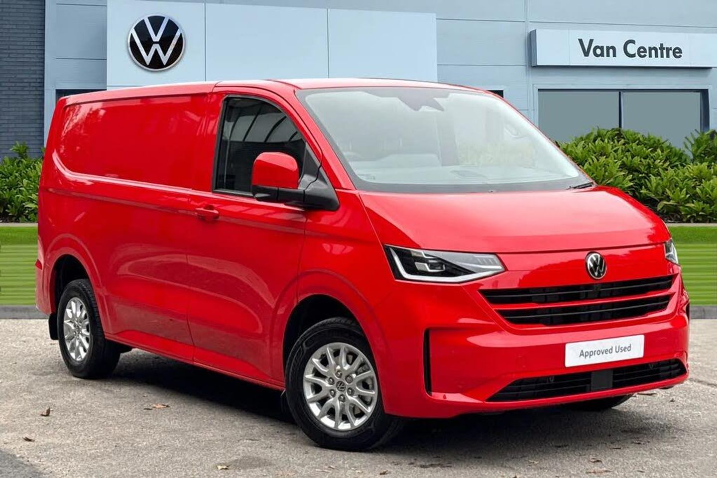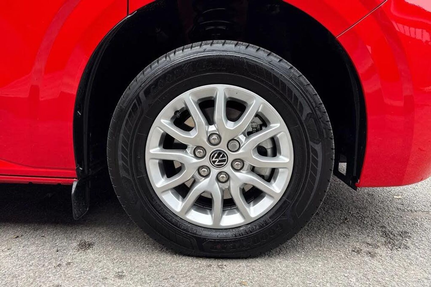 Heated rear window,Solid paint,IQ light LED matrix headlight with coming home and leaving function,Harman kardon sound system with 4 speakers,Navigation system,3 spoke heated leather wrapped multi function steering wheel,High metal partition with window,fabric covering on upper part of partition on cab side,Rear tailgate,3 seat cab life package heated - Transporter,Life interior trim pack - Transporter,Parking package premium plus - Transporter,Solid - Intensive red,16" Montreal silver alloy wheels,Heat reflecting side window glass,Body colour bumpers,Body coloured door handles,Body coloured radiator grille,Mud flaps front and rear,Rear Transporter nameplate in black grained decorative trim,Vehicle opening configuration 1x 1st row of seats,2x all doors,Electromechanical brake booster,Electronic stability control,ABS,ASR with deactivation button,hill start assist and brake assist system,Adaptive cruise control,Electromechanical speed sensitive power steering,height and longitudinally adjustable steering column,Lane and blind spot assist with exit warning system,Traffic jam assist,Wrong way driver warning,Body coloured door mirrors,Electrically heated,adjustable and folding door mirrors,Driver and front passenger airbag with front passenger airbag deactivation,Dual tone horn,Front and curtain airbags for driver and front passenger,Seat belt pretensioner for driver seat,Apple CarPlay and Android Auto,Wireless mobile phone charging,12" digital drivers display,13" touchscreen infotainment display with wireless app connect and DAB radio,5G Modem,Dynamic road sign display,eCall emergency system,Preparation of VW connect and connect plus,Alternator - 230A,2x 15-W USB data/charging ports in dashboard and 1x USB-C,1x USB-A center bottom,5 additional USB-C charging ports,Black plastic scuff plate for sliding door in cargo without illumination,Gear selector lever on steering wheel,Glasses compartment in driver side roof,Grab handle on A-pillar passenger side,Illuminated lockable glovebox,Narrow centre console with cup holder and compartment for mobile phone,Overhead storage compartment,Rubber floor covering in cab,Striped fabric upholstery,Cabin interior lighting,12V outlet in centre console and 12V outlet on rear right D-pillar,2x LED lights in load compartment,3x additional super bright LED lights in load compartment,Lashing rings for reinforced floor covering,Without passenger seats in load compartment,4 way height and tilt adjustable head restraints,Anti theft alarm system with interior monitoring in cab,backup horn and towing protection,Electronic immobiliser,Lockable wheel bolts,Preparation for alcohol ignition interlock,5+ Promise