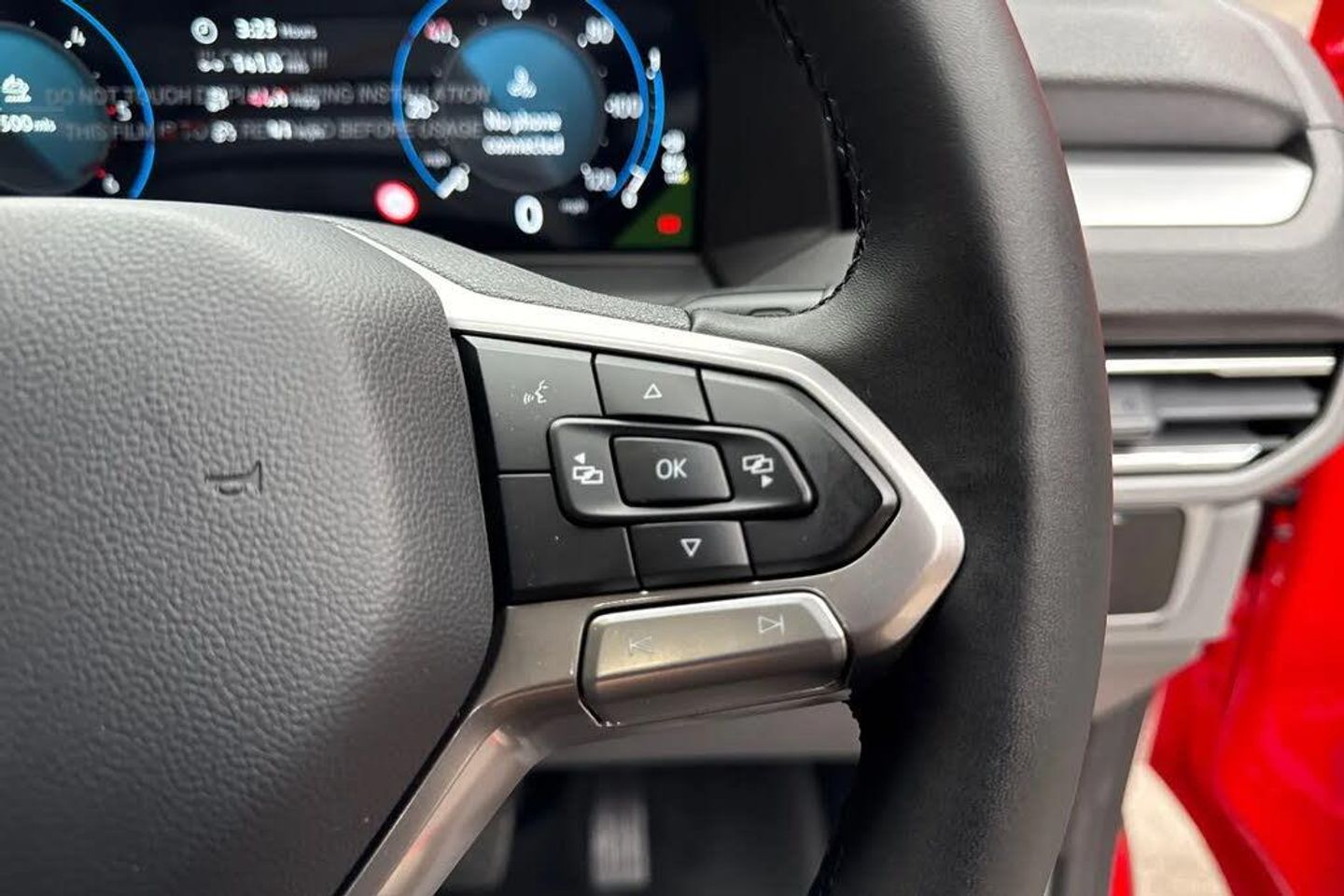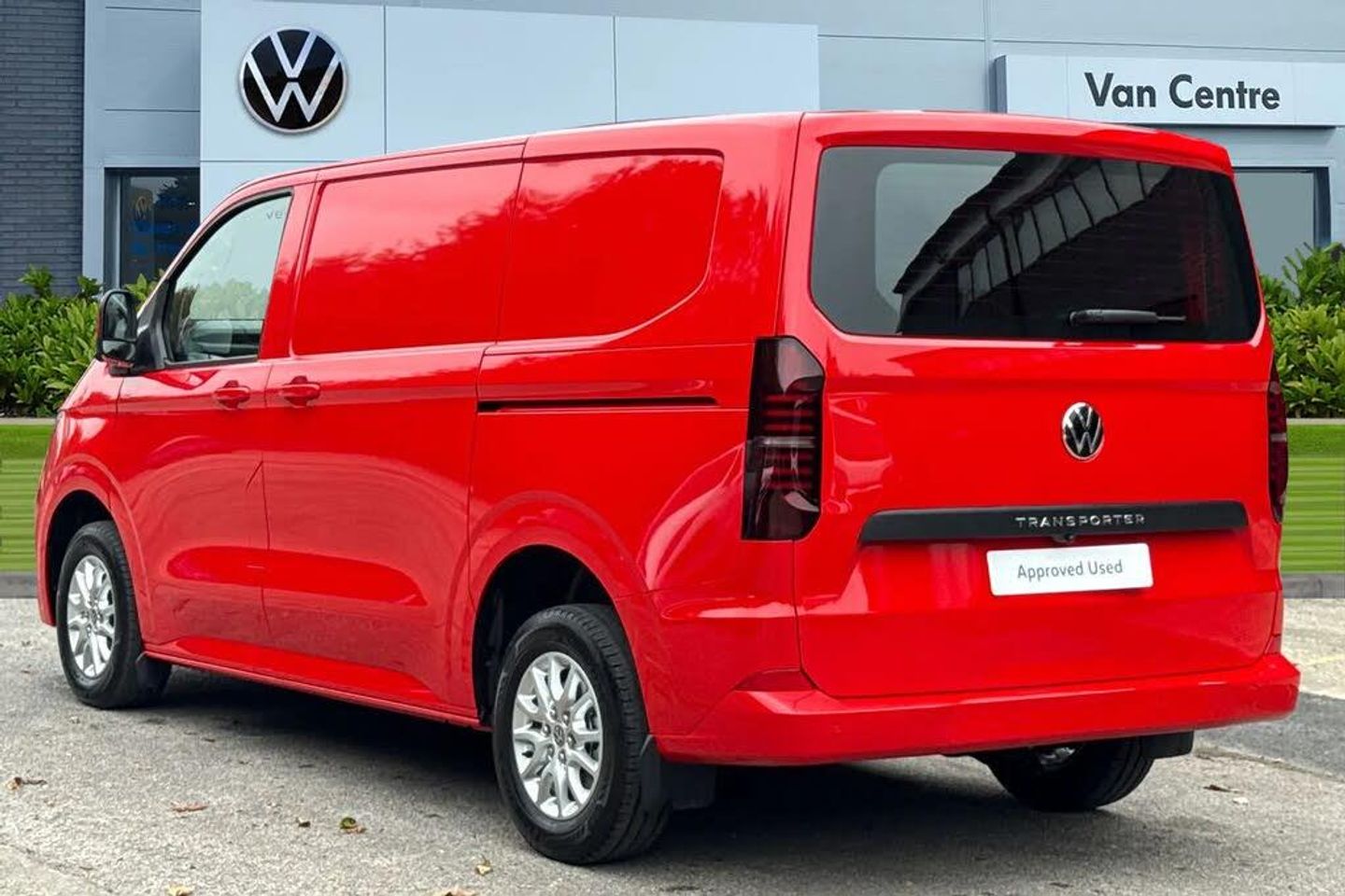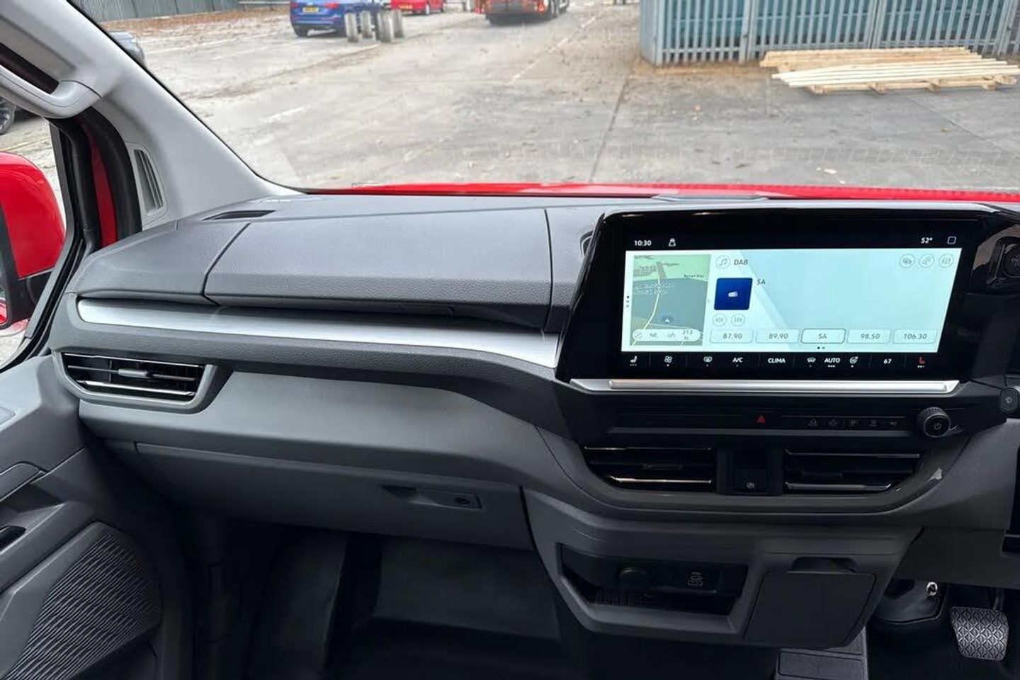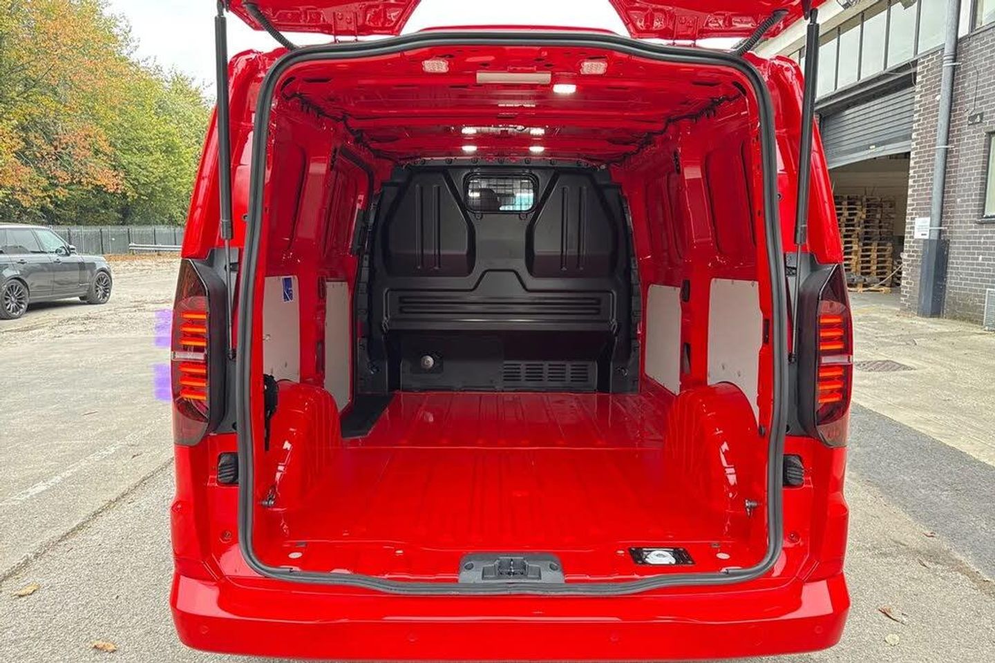 Heated rear window,Solid paint,IQ light LED matrix headlight with coming home and leaving function,Harman kardon sound system with 4 speakers,Navigation system,3 spoke heated leather wrapped multi function steering wheel,High metal partition with window,fabric covering on upper part of partition on cab side,Rear tailgate,3 seat cab life package heated - Transporter,Life interior trim pack - Transporter,Parking package premium plus - Transporter,Solid - Intensive red,16" Montreal silver alloy wheels,Heat reflecting side window glass,Body colour bumpers,Body coloured door handles,Body coloured radiator grille,Mud flaps front and rear,Rear Transporter nameplate in black grained decorative trim,Vehicle opening configuration 1x 1st row of seats,2x all doors,Electromechanical brake booster,Electronic stability control,ABS,ASR with deactivation button,hill start assist and brake assist system,Adaptive cruise control,Electromechanical speed sensitive power steering,height and longitudinally adjustable steering column,Lane and blind spot assist with exit warning system,Traffic jam assist,Wrong way driver warning,Body coloured door mirrors,Electrically heated,adjustable and folding door mirrors,Driver and front passenger airbag with front passenger airbag deactivation,Dual tone horn,Front and curtain airbags for driver and front passenger,Seat belt pretensioner for driver seat,Apple CarPlay and Android Auto,Wireless mobile phone charging,12" digital drivers display,13" touchscreen infotainment display with wireless app connect and DAB radio,5G Modem,Dynamic road sign display,eCall emergency system,Preparation of VW connect and connect plus,Alternator - 230A,2x 15-W USB data/charging ports in dashboard and 1x USB-C,1x USB-A center bottom,5 additional USB-C charging ports,Black plastic scuff plate for sliding door in cargo without illumination,Gear selector lever on steering wheel,Glasses compartment in driver side roof,Grab handle on A-pillar passenger side,Illuminated lockable glovebox,Narrow centre console with cup holder and compartment for mobile phone,Overhead storage compartment,Rubber floor covering in cab,Striped fabric upholstery,Cabin interior lighting,12V outlet in centre console and 12V outlet on rear right D-pillar,2x LED lights in load compartment,3x additional super bright LED lights in load compartment,Lashing rings for reinforced floor covering,Without passenger seats in load compartment,4 way height and tilt adjustable head restraints,Anti theft alarm system with interior monitoring in cab,backup horn and towing protection,Electronic immobiliser,Lockable wheel bolts,Preparation for alcohol ignition interlock,5+ Promise