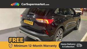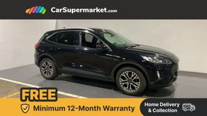 Ford easy fuel,Front and rear parking sensors,Hands free power tailgate,Lane keeping aid with lane departure warning,Mobile phone wireless charging pad,Power assist steering,Rear view camera,Selectable drive modes,Auto dimming rear view mirror,Auto headlamps with high and low beam,Auto wipers,Front LED fog lamps,LED daytime running lights,LED rear lights,Power folding heated door mirrors with puddle lights,Power front/rear windows with global close,Privacy glass,Quickclear heated windscreen,Rear spoiler,Silver roof rails,Twin exhausts,10 way power adjustable drivers seat,2nd row sliding seats with 60:40 split,8 way manual passenger seat including lumbar support and height adjust,Ambient lighting,Centre console with electronic parking brake,Dual electronic automatic temperature control,Front and rear head restraints,Partial premium touch sensico sports seats with ebony cloth inserts,Rear charging point,Salerno partial leather upholstery,B&O with large instrument cluster pack - Kuga,3x3 point rear seatbelts,Airbags - front driver/passenger, front and rear curtain,Drivers knee airbag,Electronic stability control (ESC) and ABS,Ford MyKey Gen 2 safety system,Manual child proof rear door locks,Post collision braking,Pre collision assist with autonomous emergency braking,Rear seat Occupancy alert,Tyre pressure monitoring system,Engine immobiliser,Keyless entry,Keyless start with 'Ford Power' starter button,Locking wheel nuts,Remote powered central double locking doors,Thatcham category 1 alarm,Agate Black,Salerno Leather - Ray Cloth - Ebony