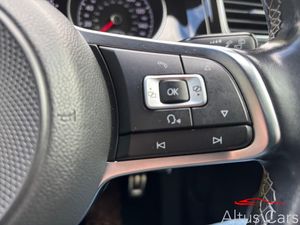 Excellent R Line specification including Opening glass sunroof, Car-Net App Connect, Composition Media System, Discover Navigation Touch-Screen Navigation-Radio System with Car-Net Guide and Inform. Dark Diamond decorative inserts in dash and door panels, Piano black centre console with aluminium inlay, CD/MP3/WMA, USB and SD card reader, aux-in, Composition media system, DAB Digital radio, ABS, Automatic post collision braking, Electronic parking brake with auto hold, ESP with EDL + ASR, Front and rear curtain airbags, Front passenger airbag deactivation, Cooled glovebox, Gearshift paddles, Multifunction leather steering wheel with grey stitching leather trimmed gear knob including paddle shift, Overhead storage box, Stainless steel pedals, Automatic coming/leaving home lighting function, Automatic headlights, Black front air intake and radiator grille with chrome insert, Black sports rear diffuser, Body colour bumpers, Body colour door handles, Body colour door mirrors, Body colour rear roof spoiler, Chrome trapezoidal exhaust, Electrically adjustable and heated door mirrors, Heat insulated tinted glass 65% light absorbing from B pillar back, LED daytime running lights, LED rear lights, Rain sensor,8'' touch screen, Adaptive Cruise Control with pedestrian detection and speed limiter, App-Connect, Bluetooth hands free telephone connection, Driver alert system, Driver profile selection, Ultrasonic front and rear optical and audible parking sensors, Lowered sports suspension, XDS electronic differential lock, Ambient lighting pack - Golf, Mirror pack.