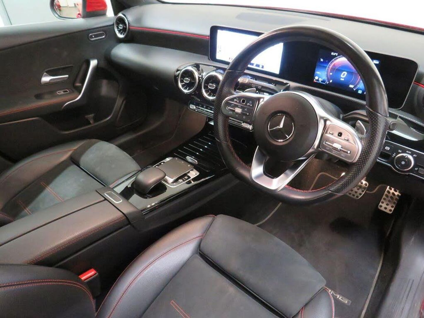Arrow Motor Company are pleased to present this fantastic, Mercedes A180d AMG finished in the stunning Metallic Jupiter Red Paintwork, with Full Black Leather and Alcantara Interior. Equipped with Mercedes 1.5-Litre Diesel engine producing 114bhp, whilst providing the most economical of drivers with an incredible 64.2mpg, with potential to rise to 72.4mpg in Extra-Urban environments. This Particular Example is Complimented by a Full Service History (FSH). This vehicle also benefits from the following impressive list of features below. , . Interior Features, 10.25-Inch Digital Multimedia Display | 7-Inch Virtual Cockpit Cluster Display | Satellite Navigation System | Automatic Dual Zone Climate Control with Digital Display | 4x Adjustable Black Alcantara and Leather Heated Bucket Seats | Rear High Definition Parking Camera | Rear Wide Angle High Definition Parking Camera Display | PARKTRONIC System | Front and Rear Ultrasonic Parking Sensor Display with Distance Indicators | Cruise Control | DAB Radio | Bluetooth Connectivity | Active Lane Keeping Assist | Active Brake Assist | Tow Away Protection System | Sport Mode | Comfort Mode | Eco Mode | Speed Limiter | Black Leather Red Stitched Multifunctional Flat Bottom Steering Wheel with Touch Sensitive Controls | Silver Wheel Mounted Paddle Shifters | Automatic Headlight Switch | Electric Parking Brake | Ergonomic Rubber Touch Sensitive Media Control Pad | Front and Rear Electric Windows | Electrically Adjustable Folding Wing Mirrors | 2x USBC Port | Alcantara Red Contrast Stitched Door Cards | Full Leather Red Lined Dashboard | Chrome Plated Pedals | Gyro Air Vents | Eco Display with Acceleration and Costing Tracking | Digital Horse Power Output, Battery Voltage, Engine Torque and Turbo Boost Pressure Gauge Display | Internet Connectivity | Mercedes-Benz Chrome Door Sills | Push Button Start | Split Opening Centre Console, Exterior Features, 18-Inch Diamond Cut Metallic Grey Alloy Wheels | Active Parking Assist With PARKTRONIC, Including Front And Rear Parking Sensors | 2x Rear Parking Cameras | LED Automatic Headlights | LED Day Time Running Lights | Wing Mirror Mounted Indicators | Chrome Front Grill | Chrome Lined Windows | Chrome Lined Diffuser | Chrome Front Lip | Chrome Dual Exhaust | Rear Roof Spoiler |