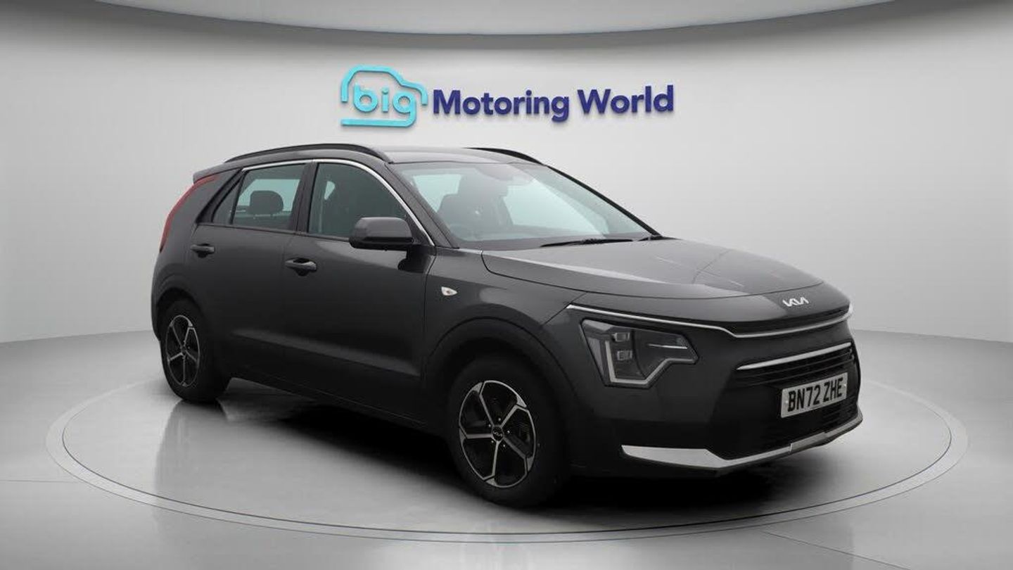 Apple CarPlay,Adaptive Cruise-Our Kia Niro is finished in Grey. Specification includes a range of fantastic features including Apple CarPlay, Adaptive Cruise Control, Lane Assist, Android Auto, Rear View Camera, Bluetooth, Parking Sensors, 2 Zone Climate, Cruise Control, Climate Control Specification information is supplied by CAPHPI and may vary to the actual car. This data does not form any part of a buying contact. Please check specification prior to purchase in-store. The MOT is valid until September 2026, visit bigmotoringworld.co.uk for more photos, a 360 tour, service history and a free HPI report.Were BIG on peace of mind and this Grey Kia Niro has completed our comprehensive 200 point inspection and passed all checks. Its ready for you to drive away with immediate collection in-store. We include a 90-day warranty as standard plus an option to extend for up to 3 years.Reserve this car exclusively for you, safely and securely at bigmotoringworld.co.uk, with a fully refundable £99 deposit. Test drive before you buy, with no commitment, no hassle and a completely haggle free experience. Still searching and want to see thousands more cars? We are BIG on choice with over 8000 cars to choose from.Visit our award winning web site bigmotoringworld.co.uk.Were Big Motoring World and were BIG on what matters to you.