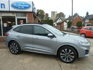 UNDER OFFER !!!!This 2023 Ford Kuga ST-Line X offers an exceptional blend of efficiency and advanced technology, featuring a 2.5 litre petrol plug-in hybrid engine that meets Euro 6 emissions standards. This model comes equipped with the desirable Driver Assistance Pack, which includes Blind Spot Assistance and Adaptive Cruise Control, alongside front and rear parking cameras for enhanced maneuverability. The Technology Pack adds a Head Up Display and LED headlights, while the Ford Key Free System allows for effortless keyless entry and start.20'' Pearl machine alloys, Mini spare wheel, Wireless charge pad, Inside, you'll find the Ford SYNC3 Navigation System, compatible with both Android Auto and Apple CarPlay, and Dual Zone Electronic Automatic Temperature Control for personalized comfort. Direct from Ford . Please call for appointment to view.The Kuga ST-Line X stands out with its comprehensive suite of features designed to elevate your driving experience. The inclusion of the Driver Assistance Pack and Technology Pack signifies a higher level of safety and convenience compared to many other vehicles in its class. The seamless integration of smartphone connectivity through Android Auto and Apple CarPlay, coupled with the intuitive SYNC3 navigation, ensures you stay connected and informed on every journey. Furthermore, the plug-in hybrid powertrain offers a more economical and environmentally conscious way to travel, making this Ford Kuga a compelling choice for the modern driver.-Fully loaded 5 Extras.-VISIT kilbourns.co.uk for MORE STOCK CHOICE