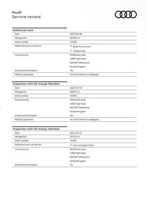 12V Power Socket - Centre Console, 17in Alloy Wheels - 5-Arm Design, 2 x SDXC Card Readers, ABS - Anti-Lock Braking System, AMI - Audi Music Interface, ASR - Anti Slip Regulation, Adaptive Brake Lights, Airbags - Driver, Airbags - Drivers Knee, Airbags - Front Passenger, Airbags - Front Side, Airbags - Head Level Side For Front and Rear, Alarm - Thatcham Category 1, Aluminium Interior Elements, Anti Theft Locking Wheel Bolts, Audi Drive Select, Audio Output - 80 Watts, Car Jack, Child Locks - Manual, Coat Hooks - B Pillar - Both Sides, Colour Drivers Information System - DIS, Cup Holders - x2 in Centre Console, DAB Digital Radio, Daytime Running Lights, Display Screen Colour - 5.8in, Door Mirrors - Body Coloured with Integrated LED Indicators, Door Mirrors - Electrically Adjustable and Heated, Door Sill Trims, Dual-Zone Electronic Climate Control, EBD - Electronic Brakeforce Distribution, EDL - Electronic Differential Lock, ESP - Electronic Stability Programme, Electric Windows - Front and Rear, Electromechanical Parking Brake, Electromechanical Power Steering, Exhaust Tailpipe - Twin, First Aid Kit, Fog Lights - Chrome Surrounds, Front Centre Armrest, Front Fog Lights, Front Passenger Airbag Deactivation Switch, Front Sports Seats, Front and Rear Floor Mats, Full European Map Data, Glovebox - Illuminated, Halogen Headlights, Headlights - Electric Range Control, Heated Rear Windscreen, Heated Windscreen Washer Jets, Height Adjustable Boot Floor, Hydraulic Brake Assist, ISOFIX Child Seat Mounting for Front Passenger and Rear Outer Seats, Immobiliser, Inlays - Aluminium Mistral Silver, Interior Elements - Air Vents - Aluminium, Interior Elements - Frame Around the Inside Door Handle - Aluminium, Interior Elements - Glove Compartment - Aluminium, Interior Elements - Window Control Switches - Aluminium, Interior Lighting, Luggage Compartment - Illuminated, Luggage Compartment - Lashing Points x4, MMI Radio, Mobile Telephone Preparation - Bluetooth Interface, Model and Engine Technology Badges at Rear, Pollen Filter, Rear Parcel Shelf Removable, Remote Central Locking with 2 Fold Away Keys, Rest Recommendation System, Roof Spoiler - Painted in Body Colour with Aerodynamic Inserts in High-Gloss Black at the Side, Satellite Navigation System - SD Card Based, Seat Belt Reminder for All Seats, Seats - Adjustment for Cushion Depth, Seats - Extendable Thigh Support, Seats - Front Height Adjustment, Seats - Split Folding Rear - 60-40, Secondary Collision Brake Assist, Smoking Package, Space Saver Spare Wheel, Speakers x8, Spoiler - Body Coloured, Sport Suspension, Steering Wheel - 3-Spoke Leather - Multi-function - Sports - Shift Paddles, Steering Wheel - Gear Shift Paddles, Steering Wheel - Height and Reach Adjustable, Steering Wheel - Multi-function, Storage Compartment - Centre Console, Storage Compartment Under Drivers Seat, Storage Compartments - Door Side Trims, Sun Visors - with Covered Vanity Mirrors, Tool Kit, Tyre Pressure Monitoring System, USB Connection, Voice Control, Voice Control - Navigation, Warning Triangle, Washer Fluid Level Indicator, Window Surrounds - Aluminium, Audi Parking System Plus with Park Assist, Audi Parking System Rear with Acoustic Indicators, 18in Alloy Wheels - 5-Arm Dynamic Design Part Polished, LED Light Package, Light and Rain Sensor Package, Cloth Headlining in Lunar Silver, Comfort Package, Rallye Cloth - Sports Seats - Black-Silver, Technology Package, Through-Load Facility, Headlights - High-Beam Assist, Headlights - Variable Range Control, Rear Side Airbags, Audi Magnetic Ride, Progressive Steering
