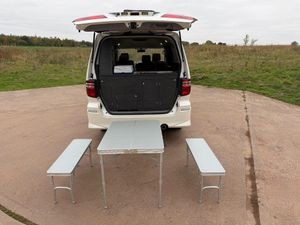 Toyota Alphard G Automatic Quality Camper Conversion, 5 Seater, 2/3 Berth, ULEZ Compliant, 80000 Miles with Service History to include a Clear Japanese CAR VX Report with an excellent Rust Free Auction Grade 4 Interior B, Camper Converted once in UK, Unused 2 Burner Gas Hob, Sink, Storage, Second Leisure battery with Split Charger plus Stationary Charger, LED Lightening, plus Original Dimming Lights, Table which Doubles up as part of the Bed with LED Strip Light, Fully Carpeted, Air Conditioning plus Rear Air con Control, Cool Box / Fridge, Heads up Display showing speed in MPH, Privacy Glass with Wind Deflectors, Alloys, Centre Seats Rotate, Twin Electric Side Doors with Soft Close Tailgate, Spoiler, Reverse Camera with DVD, Outside Table and Chair/Bench, Front Fogs, Rear inbuilt Fog Lights, Electric Folding Mirrors, Just Fully Serviced ready to go, Stunning Condition any inspection welcome.Please see 100 photos plus a detailed walk around video on my website www.sportsandprestigeoflichfield.co.uk Other Cars and Campers Available, Px Welcome.-Quality Camper 5 seat-2/3Berth-Please see our Website for More Photos and a Video at www.sportsandprestigeoflichfield.co.uk