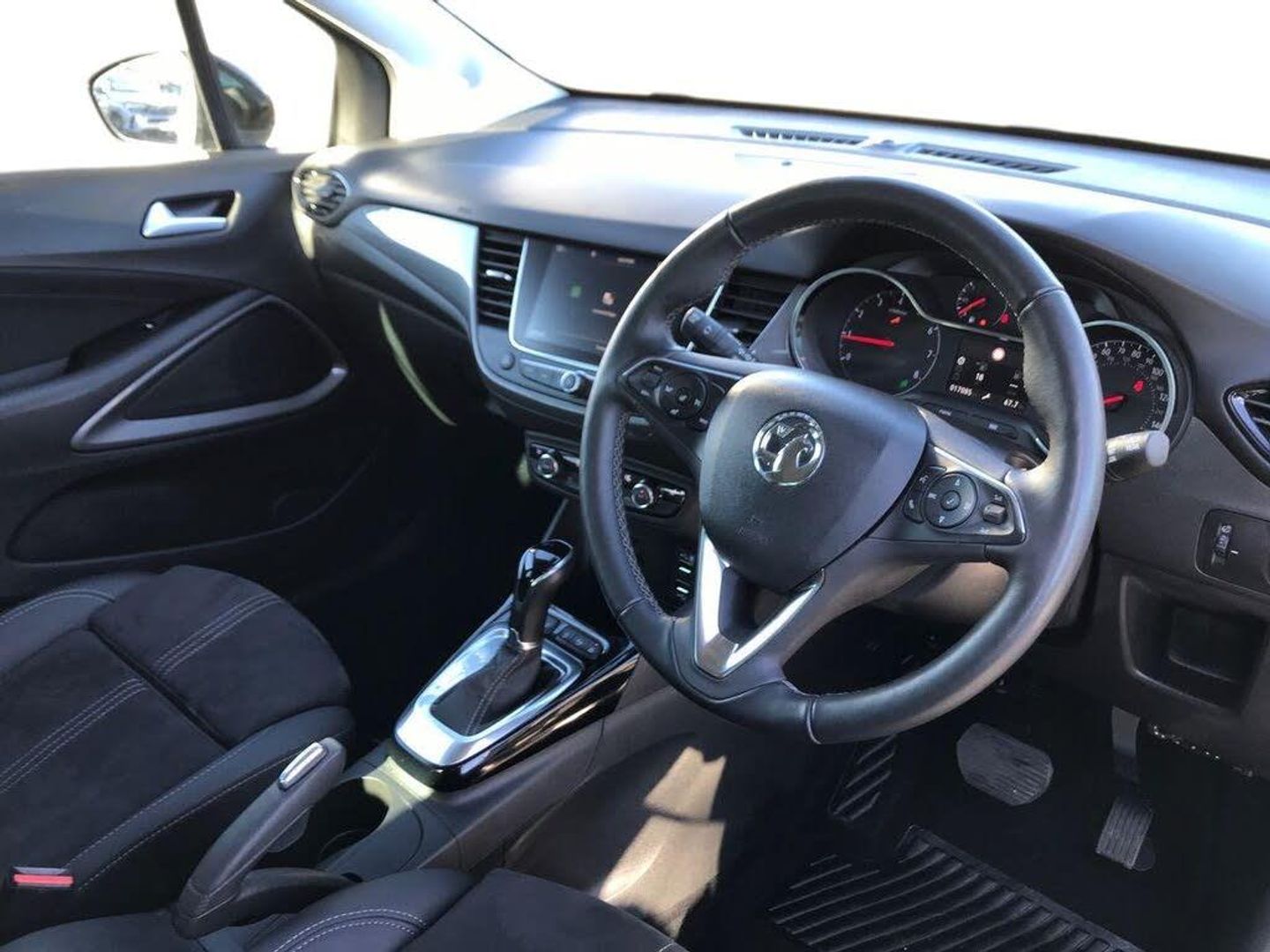 2D/3D street level mapping, 3.5" colour instrument display, Advanced parking assist and blind spot detection with front and rear parking sensors, Audible lights on warning, Central facia display - Audio information, Digital clock with automatic RDS time adjustment and outside air temperature with ice warning function, Cruise control + speed limiter, Driver drowsiness alert system, Driver information display - Total mileage, service due indicator, oil life, E-call, European coverage, Forward collision warning, Front camera system, Instrumentation - Speedometer, rev counter, low fuel gauge warning light + water temperature gauge warning light, shift up/down indicate light, Lane departure warning with lane keep assist, Multi function trip computer, Multimedia sat nav pro with 8" colour touchscreen, AM/FM, Bluetooth streaming, Bluetooth mobile phone portal, apple CarPlay/Android Auto + 6 speakers, Panoramic rear view camera, Points of interest search and Map updates via USB, RDS with traffic programme, Refridgerant low indicator, Smartphone projection, SMS read out and reply, Speed sensitive power steering, Speed sign recognition, Start/stop system, Vauxhall connect, Vehicle microphone, Front suspension - Independent, Lightweight MacPherson struts with gas pressure dampers and coil springs with anti-roll bar, Front wheel drive, Rear suspension - Compound crank with coil springs and hydraulic dampers, 2 x USB connections, DAB Digital radio, Steering wheel mounted audio/phone/cruise controls, 2 speed wipers/wash wipe/intermittent wipe, Automatic anti dazzle rear view mirror, Automatic headlamp levelling system, Automatic high beam control with cornering light, Automatic lighting control, Black door mirror caps, Black griffin logo, vizor frame, rear lettering and skid plates, Body colour door handles, Body colour front and rear bumpers, Chrome effect upper window moulding, Collapsible windscreen wipers, Dark tinted rear side windows + tailgate window, Electrically adjustable, heated and power folding door mirrors, Electrically operated front and rear windows with safety auto reverse and one touch up/down facility, Flexible roof mounted aerial, Hazard warning lights, Headlamps for left side traffic, Heated rear window, Integrated tailgate spoiler, Intermittent rear wash/wipe, LED 3rd brake light, LED daytime running lights, LED front fog lights, LED Headlights, LED side repeat indicators, LED tail lights, Rain sensitive windscreen wipers, Rear fog lights, Rear side wing doors, Reversing light, Side window demist vents, Silver roof rails, Solar heat absorbing windscreen and windows, Upper and lower bumper design, Welcome lighting, Windscreen demist vents, 12v power outlet - front, 12V power outlets on rear seat, 3 seat bench in 2nd row, 3 spoke leather covered steering wheel, Air recirculation facility, Alcantara upholstery, Ambient lighting, Anti submarining ramps in front seats, Cabin particulate filter - removes dust, airborne particles and pollen, Centre console storage box with sliding lid, Centre console with two cup holders and open storage box, Chrome effect digital instrument cluster surround, Driver's vanity mirror with flip up cover, Dual zone electronic climate control, Ergonomic active driver’s and front passenger’s seat with AGR approved 8 way adjustable, seat cushion extension, 4 way electrical lumbar adjustment, Fade up/fade down on interior lighting, Four adjustable facia vents, Front and rear central courtesy light, Front centre armrest for drivers seat, Front door pockets with 1.5 litre bottle holder, Front map reading lights, Fully carpeted luggage area, Glovebox with lid, Height adjustable front/rear head restraints, Illuminated load area, Isofix system on outer rear seats, Jet black fabric side bolsters, Luggage compartment cover, Multi-speed fan with Illuminated control, Passenger assist handles, Passenger's illuminated vanity mirror with flip up cover, Reach + rake adjustable steering column, Rear dome lamp, Rear door pockets with 0.5 litre bottle holder, Rear floor ventilation ducts, Satin chrome effect bezel on steering wheel, Single front passenger seat, Storage pockets on front seat backs, Versatility pack - Crossland, Winter pack - Crossland, 3x3 point rear seatbelts, ABS, Automatic emergency braking with pedestrian detection, Child locks on rear doors, CSC - Cornering stability control, Deactivate switch for side impact airbags, Deformation zones front and rear, Driver and front passenger airbags, Dual seatbelt pretensioners on front seats, EBD - Electronic brakeforce distribution, Energy absorbing steering column, Engine drag torque control, ESP + traction control, Front side impact airbag, Full size curtain airbags, Hill start assist, Hydraulic Brake Assist (HBA), Hydraulic brake boost, Inertia reel lap and diagonal seatbelts for all seats, Passenger airbag deactivate switch, Rear seat belt pretensioners, Reinforced passenger safety cell, Seatbelt load limiter, Side impact protection beams, Smart seatbelt reminder for front and rear seats, Tyre pressure monitoring system, 2 remote folding keys, Electronically protected audio equipment, Engine immobiliser, Keyless entry and start, Locking wheel bolts, Remote control central locking, Remote control security alarm system, Visible vehicle identification number, Black facia with dark grey trim inserts, Cluster black with chrome rings, Silver trim inserts on front doors, 17" Five twin spoke diamond cut bi colour alloy wheels
