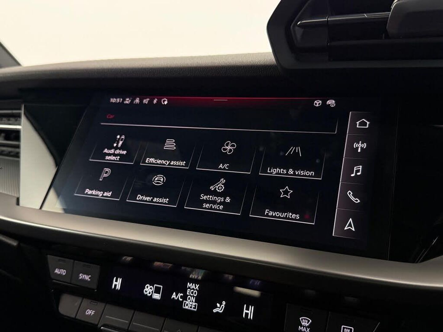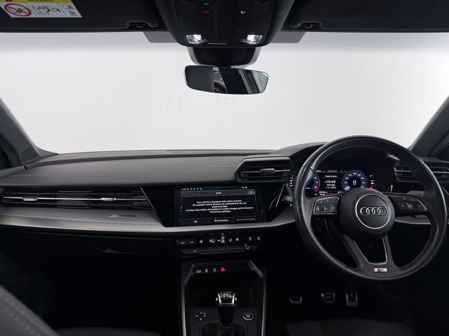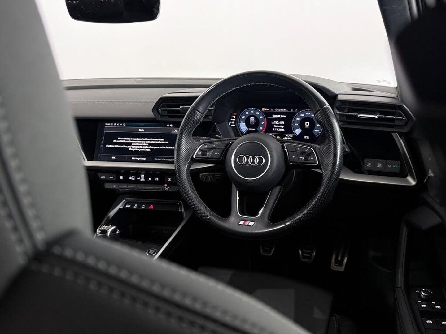 12v Socket and Storage Compartment in Front Centre Console, 18in Alloy Wheels - 5-Arm Dynamic Design, 2 USB-C Ports with Charge and Data Functions, 6 Passive Loudspeakers, Airbags - Driver and Front Passenger with Passenger Airbag Deactivation, Aluminium Interior Elements, Aluminium Window Trims, Anti Theft Locking Wheel Bolts, Anti-Theft Alarm, Audi Connect Emergency Call and Service, Audi Connect Navigation and Infotainment Services Plus (3 Year Subscription From New), Audi Drive Select, Audi Pre-Sense Front with Pedestrian and Cyclist Recognition, Audi Smartphone Interface, Audi Virtual Cockpit, Auto Dimming and Frameless Rear View Mirror, Automatic Start-Stop System with Recuperation, Bluetooth Interface, Body Coloured Door Mirrors, Child Locks - Manual, Cloth Headlining in Black, Collision Avoidance Assistant, Cruise Control, DAB Digital Radio, Dual-Zone Electronic Climate Control, ESC - Electronic Stabilisation Control inc ABS - ASR and EDL, Electric Windows - Front, Electromechanical Power Steering, Electronically Operated Child Locks, Exterior Mirrors - Electrically Adjustable - Heated and Folding - Automatically Dimming on Both Sides with Built-In LED Side Indicators - Including Automatic Kerb-Side Function for the Passenger-Side, First Aid Kit and Warning Triangle and 2 Safety Vests, Front Side Airbags with Head Airbags and Interaction Airbag, Front Sports Seats, Front and Rear Centre Armrest in Leather, Front and Rear Floor Mats, Hill Hold Assist, I-Size and Top Tether Child Seat Mounting for the Outer Rear Seats, Illuminated Door Sill Trims with Aluminium Inserts and S Logo, Illuminated Vanity Mirrors, Inlays - Dark Spectrum Aluminium, LED Headlights with LED Rear Lights and Dynamic Rear Indicators, Lane Departure Warning, Light and Rain Sensor, Luggage Compartment Floor Covering, MMI Navigation Plus with High Resolution 10.1in Touchscreen Colour Display, Manual Boot Compartment Lid, Pedals in Stainless Steel and Footrest in Black, Privacy Glass, Privacy Glass - Dark-Tinted Rear Window - Rear Door and Side Window., Rear Parking Sensors, Rear Side Air Outlets - Grained Matt Black, Remote Central Locking, S Line Bumpers, S Line Styling, S Roof Spoiler, Seat Belt Monitoring, Split-Folding Rear Seat Bench can be Split 40: 20: 40 or Fully, with Centre Armrest and Cup Holders, Sport Suspension, Steering Wheel - 3-Spoke Leather-Multi-Function, Tool Kit, Tyre Pressure Loss Indicator, Tyre Repair Kit, Voice Control System with Natural Language Interaction, Windscreen with Acoustic Glazing