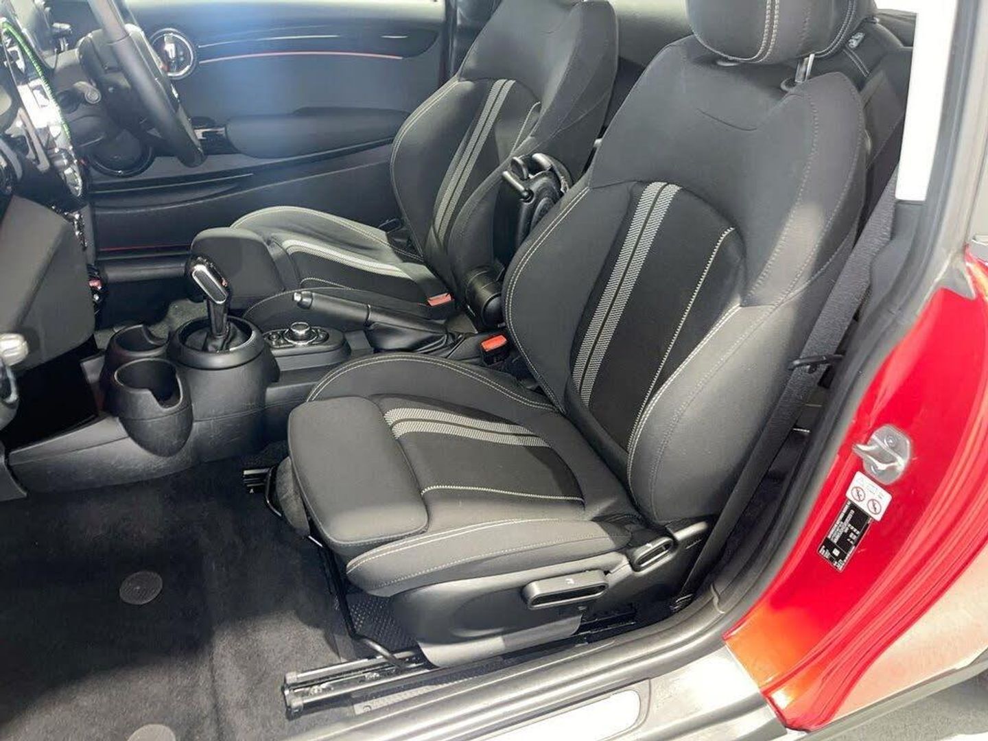 12V Socket in Centre Console, 16in Alloy Wheels - Revolite, 3 Point Seatbelts on all Seats, 4 Lashing Eyes in Luggage Compartment, 4 Speakers - in Front Door Trims and Underneath Front Seats, 8.8in Touchscreen with LED Ring, Air Conditioning - Manual, Airbags, Alarm System, Anti-Lock Braking System - ABS, Automatic Headlight Activation Switch, Bluetooth for Compatible Mobile Phone - with Audio Streaming, Bonnet Scoop, Carbon Black Colour Line - Knee Roll and Door Armrests, Chili Red, Chrome Highlights, Comfort Pack, Cruise Control with Brake Function, Cup Holders, Door Sill Strips - Metal with Cooper S, Door Storage Compartments, Double Stripe Cloth - Carbon Black, Dynamic Brake Lights, Dynamic Stability Control - DSC, Electric Windows, Electro-Mechanical Steering with Speed Dependant Steering Assistance, Electronic Gear Shifter, Electronic Vehicle Immobiliser, Exhaust Tailpipe - Double - Central with Chrome Finishers, Flexible Car Sharing Preparation, Floor Mats - Velour, FM Tuner and DAB Digital Radio, Foldable Rear Seats 60-40, Front and Rear ISOFIX - including Front Passenger Airbag Deactivation, Fuel Filler Cap in Chrome, Glove Compartment, Headliner - Satellite Grey, Heated Rear Window, Heated Windscreen Washer Jets, Instrument Cluster, Interior Lighting, Interior Trim - Piano Black, Leatherette Gearshift Lever and Handbrake Gaiters, LED Headlights with Closed Ring as Daytime Driving Lights, LED Reading Lights - Vanity Mirror Lights - Front Footwell Lights - Spotlights on Front Seats, Mechanical Seat Adjustment, MINI Driving Modes, MINI E-Call, MINI TeleServices, Model Logo Cooper S on Right of Tailgate, Multifunction Controls for Steering Wheel, Navigation Pack, On-Board Computer, Performance Control, Radiator Grille - Chrome Border with Honeycomb Structure - including S Badge, Rain Sensor Window Wipers, Rear Fog Light, Rear LED Lights with Union Jack Design, Rear Window Wiper, Roof and Mirror Caps - Body-Colour, Roof and Mirror Caps - White, Side Scuttle Panels with Integrated Indicators, Sport Leather Steering Wheel, Sport Seats, Start-Stop Toggle including Keyless Go, Steering Column Height and Length Adjustment, Storage - Pockets on Back of Front Seats, Sun Visor with Vanity Mirrors, Sun-Heat Protection Glass, Tool Kit in Luggage Compartment, Two-Tone Horn, Tyre Pressure Monitoring System, White Indicator Lenses