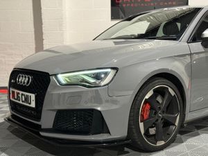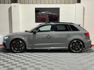 12V Power Socket - Rear, 12V Power Socket - Rear x2, 19in Alloy Wheels - 5-Arm Rotor Design - Galvanised Silver, ABS - Anti-Lock Braking System, AMI - Audi Music Interface, ASR - Anti Slip Regulation, Adaptive Brake Lights, Airbags - Driver, Airbags - Drivers Knee, Airbags - Front Passenger, Airbags - Front Side, Airbags - Head Level Side For Front and Rear, Alarm - Thatcham Category 1, All Weather LED Headlights, Aluminium Interior Elements, Aluminium Look Pedals, Aluminium-Effect Door Mirror Housings, Anti Theft Locking Wheel Bolts, Audi Drive Select, Audi Parking System Plus, Audi Parking System Rear with Acoustic Indicators, Automatic Wipers with Rain Sensor, Brake Calipers - High Gloss-Black with RS3 Logo, Cables x2 - MP3 Connection Including iPod, Car Jack, Cloth Headlining in Black, Colour Drivers Information System - DIS, Cup Holders - x2 in Centre Console, DAB Digital Radio, Display Screen Colour - 5.8in, Door Mirrors - Electrically Adjustable and Heated, Door Sill Trims - Aluminium with RS3 Logo, Dual-Zone Electronic Climate Control, EBD - Electronic Brakeforce Distribution, EDL - Electronic Differential Lock, ESP - Electronic Stability Programme, Electric Windows - Front and Rear, Electromechanical Parking Brake, Exhaust Tailpipe - RS, First Aid Kit, Front Bumper with Enlarged Air Inlets, Front Centre Armrest, Front Passenger Airbag Deactivation Switch, Front Sports Seats, Front and Rear Floor Mats, Full European Map Data, Grab Handles - Dampered, Head Restraints - Rear, Headlights - Coming-Leaving Home Function, Headlights - Light Sensor, Heat Insulating Glass, Heated Front Seats, Heated Rear Windscreen, ISOFIX Child Seat Mounting for Front Passenger and Rear Outer Seats, Immobiliser, Inlays - 3D Design Black, Interior Elements - Air Vents - Aluminium, Interior Elements - Frame Around the Inside Door Handle - Aluminium, Interior Elements - Glove Compartment - Aluminium, Interior Elements - Window Control Switches - Aluminium, LED Daytime Running Lights, LED Rear Lights, Luggage Compartment - Side Net, MMI Radio, MMI Touch, Manual Front Seat Adjustment, Mobile Telephone Preparation - Bluetooth Interface, Pollen Filter, Progressive Steering, RS Body Styling, RS Brake System - High Performance, RS Instrument Panel with Black Dials and Red Needles, RS Sports Suspension, Radiator Grille - Honeycomb Design, Rear Diffuser - RS3, Remote Central Locking with 2 Fold Away Keys, Roof Spoiler - RS3 Specific in Body Colour, Satellite Navigation System - SD Card Based, Seat Belt Reminder for All Seats, Seats - Adjustment for Cushion Depth, Seats - Extendable Thigh Support, Seats - Split Folding Rear - 60-40, Side Sills - RS, Smoking Package, Steering Wheel - 3-Spoke MultiFunction-Flat-Bottomed-Leather with Alcantara Inserts with RS Emblem, Steering Wheel - Gear Shift Paddles - Aluminium, Storage Compartment Under Rear Seat, Storage Net in Front Passenger Footwell and Front Seat Backrests, Storage and Luggage Package, Tool Kit, Tyre Pressure Monitoring System, Tyre Repair Kit, USB Connection, Voice Control - Navigation, Warning Triangle, Black Roof Rails