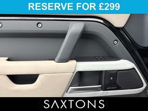 AIR SUSPENSION, SLIDING ROOF-CALL 01245 351234 | 20'' ALLOYS IN BLACK, SLIDING PANORAMIC ROOF, ELECTRONIC AIR SUSPENSION, ELECTRIC DEPLOYABLE TOW BAR, BLACK PACK, HEATED / COOLED FRONT SEATS, MERIDIAN SOUND SYSTEM, PRIVACY, FIXED SIDE STEPS, SIDE MOUNTED GEAR CARRIER, DEPLOYABLE LADDER, DEFENDER WHEEL COVER, REAR SPOILER, RED CALIPERS, FRONT AND REAR MUD FLAPS | Santorini Black with Full Acorn Leather Interior | This car benefits from the following features: 14 Way Memory Heated Front Seats, Heated Steering Wheel, Heated/Cooled Front Seats, Electric Adjustable Steering Column, 4 Way Seat Lumbar, Passive Keyless Entry/Start, High Line Ambient & Footwell Lighting, Power Heated Folding Mirrors, Puddle Lamps, Double Locking Power Lock Latch, Heated Windscreen, Four Corner Air Suspension, Privacy Glass, SOS / Assistance Call, Navigation System, Digital Audio Broadcast Radio, In Control Remote, Water Wading Aid, Automatic Headlamp Levelling, Hi-Line Audio System, Advanced Emergency Braking (City, Pedestrian, Cyclist & Junctions), 360 Parking Aid With Autobrake Functionality, 3D Surround Camera, Continuous Variable Damping, 10'' Infotainment Screen, Connected Navigation Data, Android Auto, Apple Carplay, Connected Nav Pro, Reverse Traffic Detection, Forward Facing Camera, Blind Spot Assist, Driver Drowiness Monitoring, Traffic Sign Recognition with Speed Limiter.-Click & Collect and Home Delivery available