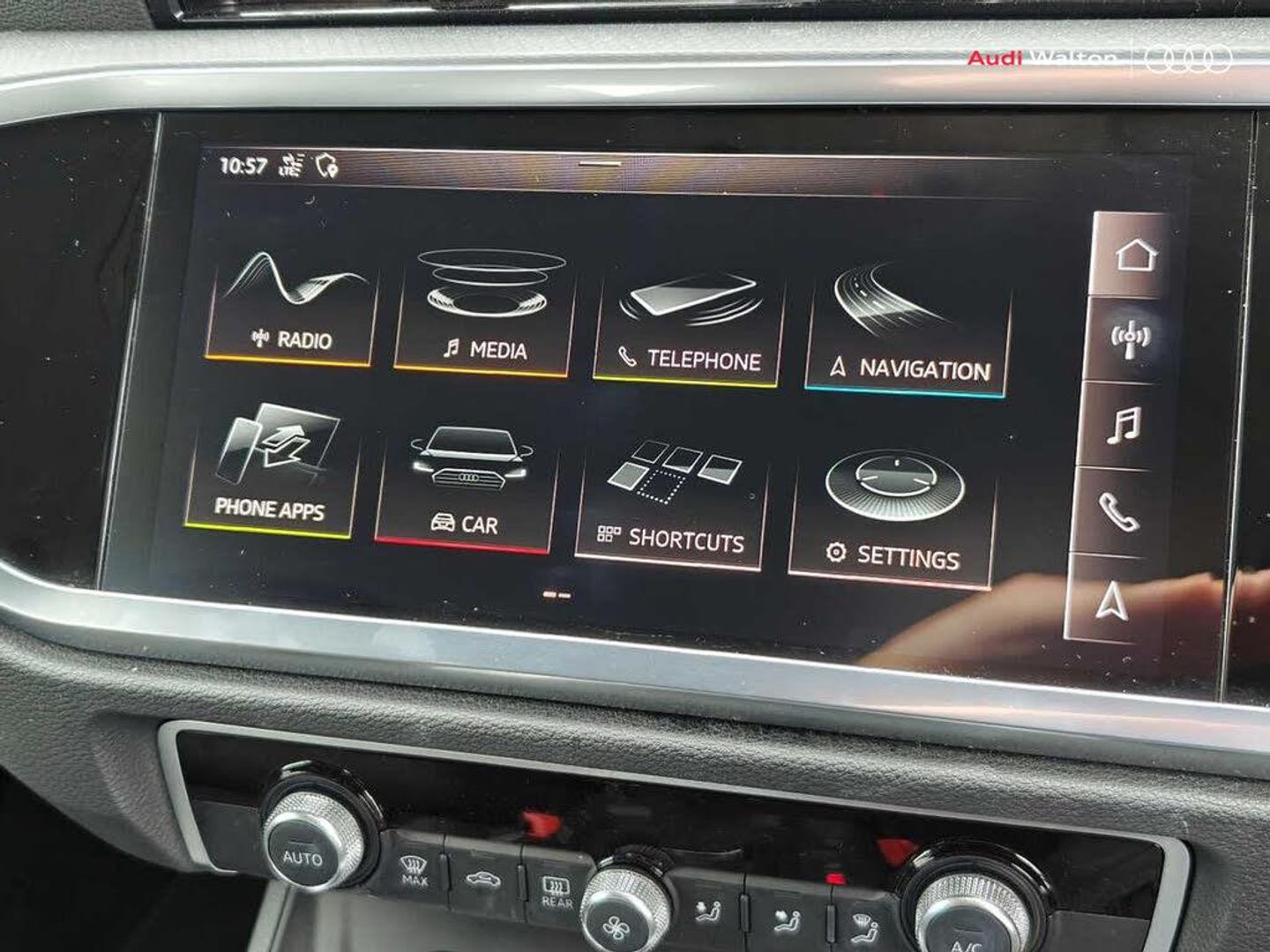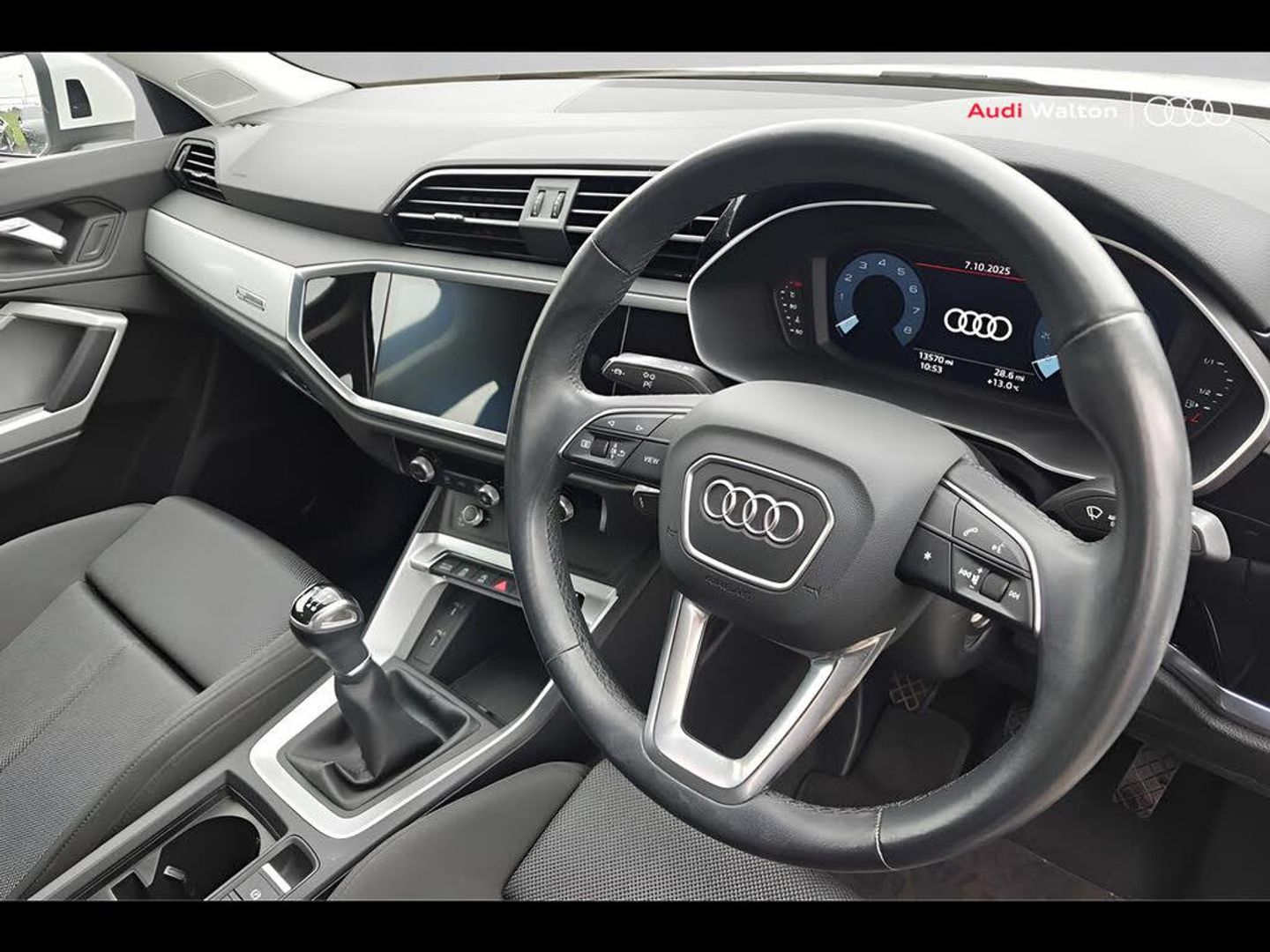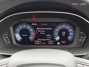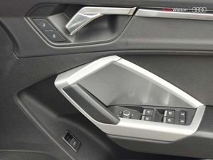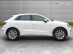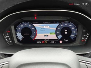 Audi connect safety and service (e-call), Audi drive select, Audi lane departure warning, Audi side assist, Audi Virtual Cockpit - 10.25" display, Bluetooth interface, Camera based traffic sign recognition, Cruise control + speed limiter, MMI Navigation Plus with high resolution 10.1 inch touchscreen colour display, Power operated tailgate, Progressive steering, Rear parking sensors, Service interval indicator, Smartphone interface includes wireless Apple carplay/Android Auto, Start stop system with recuperation, Voice control system with natural language interaction, Sports suspension, 1 x USB type C and 1 USB type A charging points, 6 passive loudspeakers, DAB digital radio module, Acoustic windscreen, Aluminium window trim, Auto dimming frameless rear view mirror, Bumpers and underbody protection in contrasting manhattan grey paint finish, Diffuser grille in grained matt black, Diffuser trim in manhattan grey metallic, Door sill trims with illuminated aluminium inlay, Electrically folding, adjustable and heated door mirrors with integrated LED side indicators and kerb view function for passenger side, Front and rear electric windows, Front fog lights, Front side air inlets in Manhattan grey metallic, Grille surround in aluminium silver matt, High gloss black finish B and C pillars, Honeycomb design radiator grille in matt titanium black, LED headlights with LED daytime running lights and dynamic rear indicator, LED rear lights, Rain and light sensors, 12V socket in rear centre console, 40:20:40 folding with manual adjustment for 60:40 forwards/backwards position and backrest angle, Adjustable rear seat bench/backrest, Dual zone electronic climate control, Front and rear floor mats, Front and rear headrests, Front and rear roof module including reading lights, Front centre armrest, Glove compartment lighting, Height and reach adjustable steering wheel, ISOFIX child seat mounting for front passenger with airbag deactivation and outer rear seat including top tether attachment point for outer rear seats, Luggage compartment light, Lunar silver cloth headlining, Manual front seats with height adjustment, Stainless steel luggage compartment sill finisher, Non smoking pack - Q3, 3x3 point rear seatbelts, 6 airbags - Driver, front passenger, curtain and side windows, Audi pre-sense front with pedestrain and cyclist recognition, Electrically operated child locks on rear doors, Electromechanical parking brake, Electronic stabilisation control including ABS, ASR and EDL, Hill descent control, Hill hold assist, Pre sense basic, Seatbelt monitoring, Tyre pressure warning, Warning triangle and first aid kit, Anti theft alarm, Anti theft wheel bolts, Remote central locking, Black dashboard, Detail dashboard around MMI touch colour display in glass look, black with surround in aluminium look, Micrometallic silver inlay