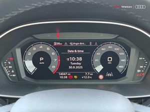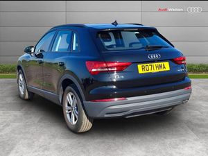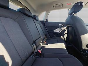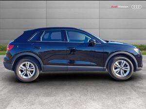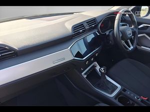 Amazon alexa Integration, Audi connect safety and service (e-call), Audi drive select, Audi lane departure warning, Audi Virtual Cockpit - 10.25" display, Bluetooth interface, Camera based traffic sign recognition, MMI Navigation Plus with high resolution 10.1 inch touchscreen colour display, Power operated tailgate, Progressive steering, Service interval indicator, Smartphone interface includes wireless Apple carplay/Android Auto, Start stop system with recuperation, Voice control system with natural language interaction, 48V Mild hybrid technology, Standard suspension, 2 USB-C ports with charge and data functions, 6 passive loudspeakers, DAB digital radio module, Acoustic windscreen, Auto dimming frameless rear view mirror, Black roof rails, Body colour door mirrors, Diffuser in grained anthracite, Electrically folding, adjustable and heated door mirrors with integrated LED side indicators and kerb view function for passenger side, Exterior bumper with wheel arch trims and side sill trims in grained black matt, Front and rear electric windows, Grained radiator protective grille, Halogen rear lights, LED headlights with LED daytime running lights, Rain and light sensors, 12V socket in rear centre console, 3 spoke multi-function leather steering wheel, 40:20:40 folding with manual adjustment for 60:40 forwards/backwards position and backrest angle, Dual zone electronic climate control, Front and rear floor mats, Front and rear headrests, Front and rear roof module including reading lights, Front centre armrest, Glove compartment lighting, Height and reach adjustable steering wheel, ISOFIX child seat mounting for front passenger with airbag deactivation and outer rear seat including top tether attachment point for outer rear seats, Luggage compartment light, Lunar silver cloth headlining, Manual front seats with height adjustment, Stainless steel luggage compartment sill finisher, Non smoking pack - Q3, 3x3 point rear seatbelts, 6 airbags - Driver, front passenger, curtain and side windows, Audi pre-sense front with pedestrain and cyclist recognition, Electrically operated child locks on rear doors, Electromechanical parking brake, Electronic stabilisation control including ABS, ASR and EDL, Hill descent control, Hill hold assist, Pre sense basic, Seatbelt monitoring, Tyre pressure warning, Warning triangle and first aid kit, Anti theft alarm, Anti theft wheel bolts, Remote central locking, Detail dashboard around MMI touch colour display in glass look, black with surround in aluminium look, Micrometallic silver inlay, 17" 5 twin spoke design alloy wheels, Tool kit, Tyre repair kit