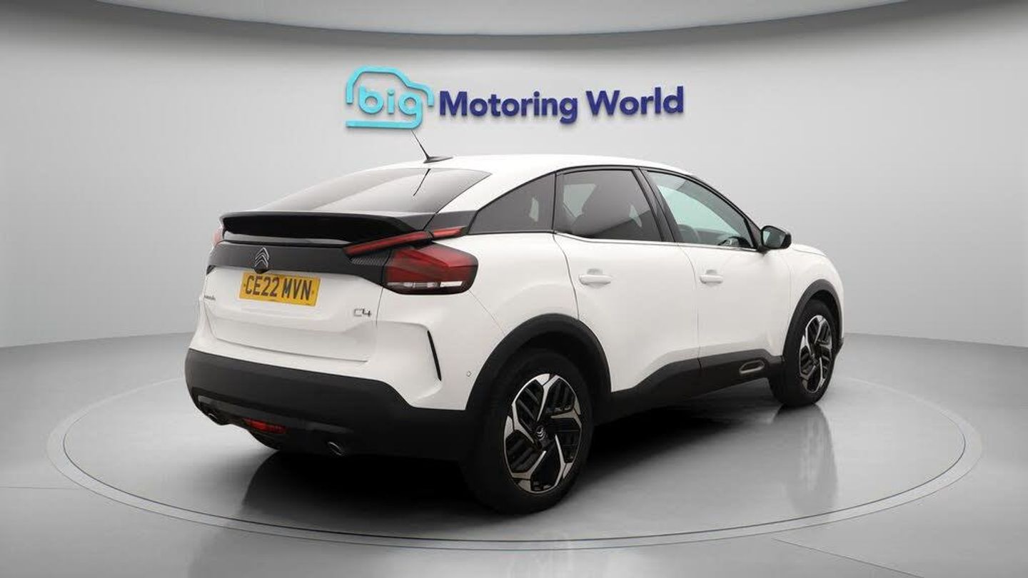 Head up Display,18'' alloy whee-Our Citroen C4 is finished in White. Specification includes a range of fantastic features including Head up Display, 18'' alloy wheels, Leather Seats, Apple CarPlay, Android Auto, Satellite Navigation, Privacy Glass, Heated Seats, Rear View Camera, Bluetooth Specification information is supplied by CAPHPI and may vary to the actual car. This data does not form any part of a buying contact. Please check specification prior to purchase in-store. The MOT is valid until March 2026, visit bigmotoringworld.co.uk for more photos, a 360 tour, service history and a free HPI report.Were BIG on peace of mind and this White Citroen C4 has completed our comprehensive 200 point inspection and passed all checks. Its ready for you to drive away with immediate collection in-store. We include a 90-day warranty as standard plus an option to extend for up to 3 years.Reserve this car exclusively for you, safely and securely at bigmotoringworld.co.uk, with a fully refundable £99 deposit. Test drive before you buy, with no commitment, no hassle and a completely haggle free experience. Still searching and want to see thousands more cars? We are BIG on choice with over 8000 cars to choose from.Visit our award winning web site bigmotoringworld.co.uk.Were Big Motoring World and were BIG on what matters to you.