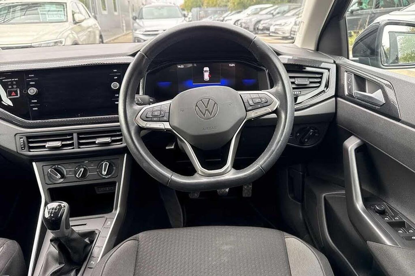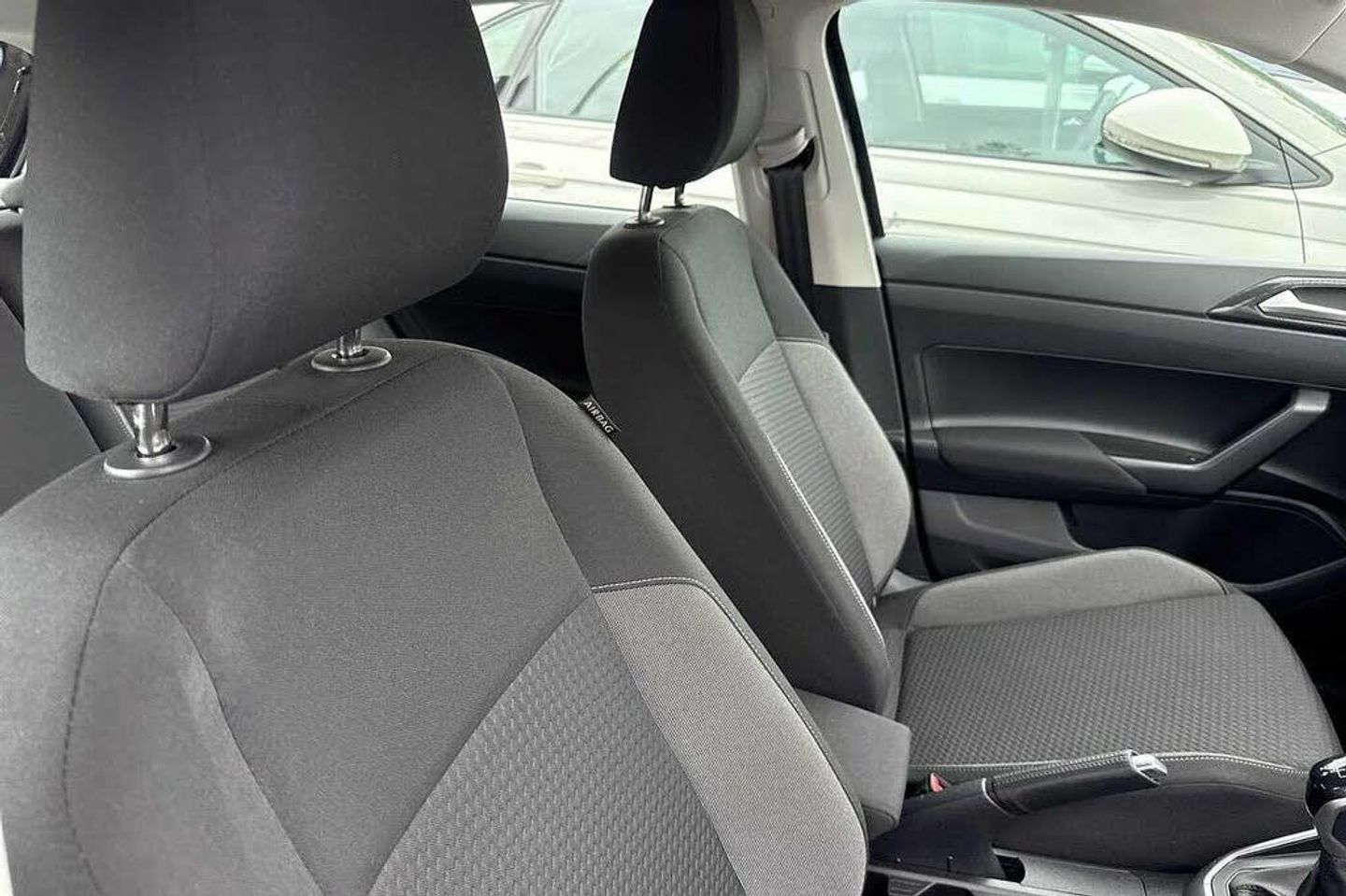 Front and rear parking sensors, Pearl - Deep black, Hartley/Thomas cloth - Titan black, Electric front windows, Heat insulating darkened glass in side and rear windows, Heat insulating glass windscreen, Rain sensor, Rear electric windows, Rear windscreen washer and wiper with interval delay, Front wheel drive, Rear shock absorpion, Body colour bumpers, Body colour door handles, Rear side wing doors, Rear fog light, Third brake light, ABS, ESC (Electronic stability control) + EDL (Electronic Differntial lock) and ASR (Traction control), Front disc brakes, Hill hold control, Rear drum brakes, Adaptive cruise control without follow-to-stop and speed limiter, Driver alert system, Front assist system, Power assisted speed sensitive steering, Automatic dimming interior rear view mirror, Body colour door mirrors, Power folding adjustable/heated exterior mirrors and front passenger exterior mirror lowering function, 3 point height adj front seatbelts + pretensioners, 3x3 point rear seatbelts, Driver and front passenger airbag with front passenger airbag deactivation, Drivers and front passengers safety optimised head restraints, Extended and predictive pedestrian/ cyclist protection, Front curtain and side airbags with center airbag, Manual child lock in rear doors, Single tone horn, Tyre pressure loss indicator, Bluetooth mobile phone interface, Preparation for We connect and We connect plus, Wireless app connect, DAB Digital radio, Diversity antenna for FM reception, Front and rear 6 speakers, Standard rear axle, Travel Assist - Lane keeping system and traffic jam assist, Emergency call service, Speedo and rev counter, electronic odometer, trip, service interval display and fuel gauge, Travel assist including emergency assist, Trip computer, Warning signal and warning light for front and rear seatbelts not fastened, Washer fluid level indicator, Start-stop system with battery regeneration (recuperation - energy recovery during braking), Lava stone black gloss/matt decorative inserts in dash and front door panels, 3 rear head restraints, 60/40 split folding rear seat and rear seat bench not split, Driver and front passenger seat height adjustment, Front seat backrest storage pockets, Front standard seats, Isofix child seat preparation easy-fit (for two outer rear seats, and front passenger seat) compatible with I-size, Single front passenger seat, 12V power socket in centre console, 2 USB-C ports in the front, 2 USB-C charging sockets on the center console in the rear, Chrome plated radiator grille inserts, air vent surrounds and light switch surrounds, Door and side trim panel, Front centre armrest, Handbrake lever handle in leather, Hartley/Thomas cloth upholstery, Headliner in recycled material, Leather trimmed gear knob, Luggage compartment cover, Luggage compartment floor, Multifunction steering wheel, Standard pedal cluster, 2 front and 2 rear reading lights, Luggage compartment lighting, Driver/passenger sunvisors with illuminated vanity mirrors, Light and vision pack - Polo, Alarm with interior protection, Anti-theft alarm system with interior monitoring, backup horn, and towing protection, Anti-theft wheel bolts, Electronic engine immobiliser, Low rolling resistance tyres
