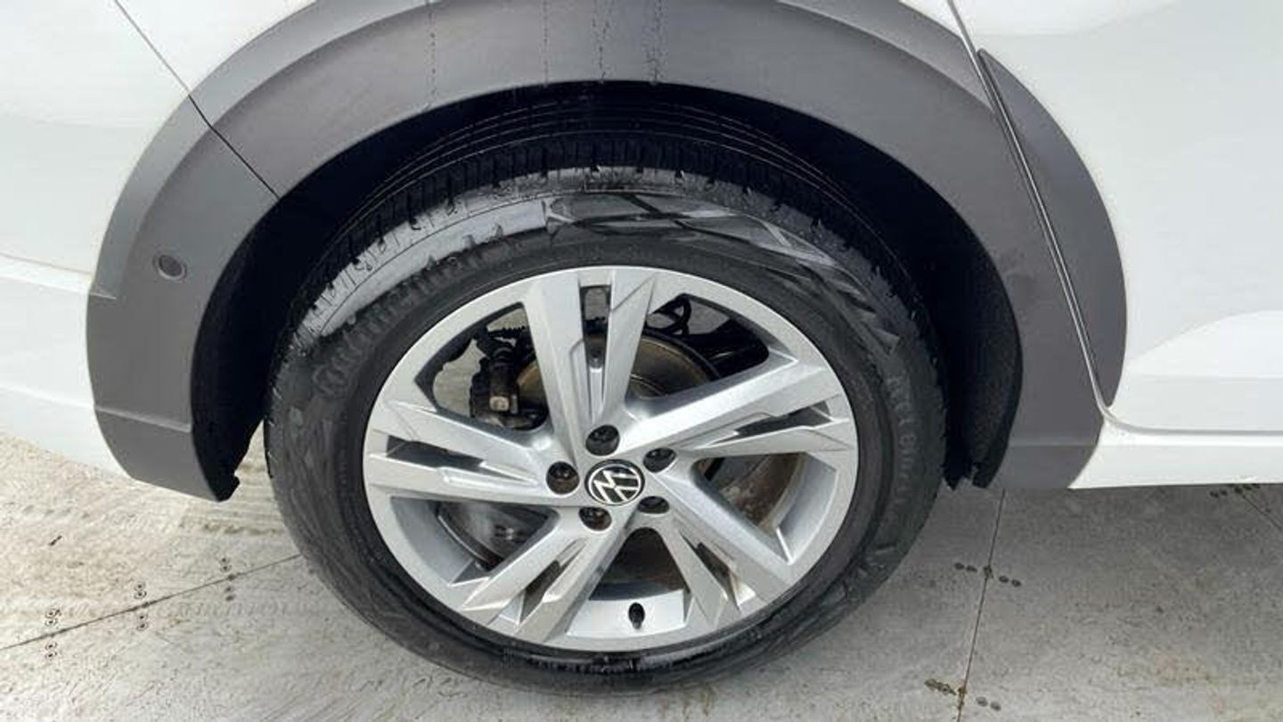 Heated front seats, Black roof pack with mirror housing - Taigo, Special solid - Pure white, 15 weight and space saving spare wheels with onboard tools + jack, Rear wash/wipe with intermittent wipe setting, Body coloured exterior mirror housings and door handles, External USB type C socket and charging sockets, Rear side wing doors, Ambient lighting with logo projection, Auto headlights, LED rear combination lamp, LED third brake light, Rear fog light on one side, reversing light on both sides, Electronic stability control, Front and rear disc brakes, Adaptive cruise control, Driving profile selection, Aspherical driver's exterior mirror, Left convex exterior mirror, Power folding adjustable/heated exterior mirrors and front passenger exterior mirror lowering function, 2 x 3-point seatbelts/outer rear seats with ECE label, 3-point seat belts in front with pretensioner and height adjustment, 3-point seatbelt for centre rear seat, Driver and front passenger airbags with front passenger airbag de-activation, front side and curtain airbags, Driver and front passenger safety-optimised head restraints, Extended and predictive pedestrian/ cyclist protection, Front curtain and side airbags with center airbag, Manual rear child locks, Black carpets, Front + rear carpet mats, Air care climatronic air conditoning system with active combination filter and 2-zone temperature control, Black roof lining, Chrome bezel for instrument cluster, vents, door handles + gear shift, Front centre armrest, Karoso artvelours cloth upholstery, Leather wrapped multifunction steering wheel, Seat covers in grey + titanium black, Stainless steel pedals, 2 front reading lights, Front footwell illumination, App-Connect including App-Connect Wireless, Digital radio reception (DAB+), Diversity antenna for FM reception, WeConnect plus, Digital cockpit pro - 10.25 high resolution TFT dash display screen with customizable menus and information, e-Call (emergency call), Start-stop system with battery regeneration (recuperation - energy recovery during braking), Grey anodised matte decorative inserts in dash and front door panels, 3 rear head restraints, 3 seat bench in 2nd row, Child seat anchor for child seat system i-Size, 2x top tether and child seat anchor in front on front passenger side, Front sports comfort seats, Lumbar support for driver's and front passengers seat, Single front passenger seat, Split folding backrest with centre armrest and unsplit rear seat bench, Chrome Package - Taigo, Drivers assistance pack - Taigo, Light and Sight pack including High beam assist - Taigo, Anti-theft alarm system with interior monitoring, backup horn, and towing protection, Low rolling resistance tyres, [Audio and Communications]12V socket in centre console, Wireless Charging including Bluetooth, [Drivers Assistance]Rear View Camera, Rear view camera, Driver alert system, Tyre pressure loss indicator, Washer fluid level indicator, [Exterior]15in Spare Wheel - Weight and Space-Saving, Black Roof and Mirror Housing Pack, Electric windows, Body coloured bumpers, Bumpers in R-Line style, Front scuff plates with R-Line logo, Anti-theft wheel bolts, [Interior]Seats - Heated Front, Height and reach adjustable steering wheel, Leather trimmed gear knob, Luggage compartment floor, Storage compartment under front seats, Interior ambient lighting and surround lighting, Luggage compartment light, Sun visors with illuminated vanity mirrors, Driver and front passenger seat height adjustment, [Performance]Power Steering, [Safety and Security]Hill start assist, Single tone horn, XDS electronic differential lock for improved traction and handling, Travel assist including emergency assist