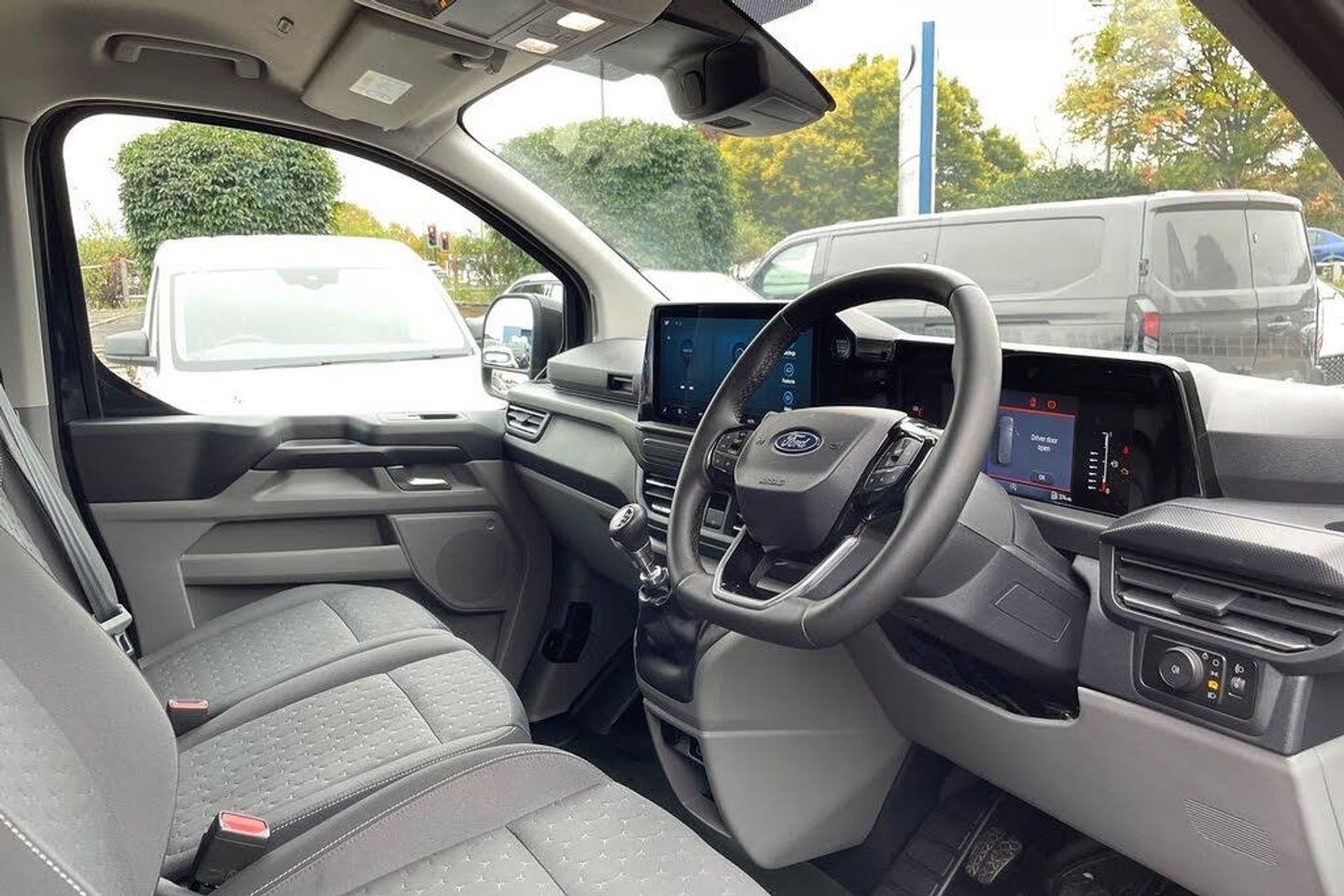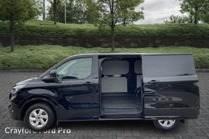 Fabric - Barlo Black Onyx, 13in Touchscreen, 16in Alloy Wheels - Sparkle Silver, 2 Remote Keys, 5G Embedded Modem, ABS - Anti-lock Braking System, AECS NO SMS - Roll Detect 2G, Alcohol Interlock, Automatic Air Conditioner, Automatic Headlights with Rain Sensing Wipers, Body Colour Rear Bumper, Body Coloured Exterior Mirror Finish, Bodyside Mouldings - Body Colour, Bottle Holder - Twin 2 litre Bottle Capacity - Facia-Mounted, Bumper - Body Colour Front Bumper, Comfort Dual Passenger Seat Pack, Courtesy Light, Daytime Running Lamps, Door Handles - Body Colour, Drivers Airbag, Dual Power Mirrors - Auto-Power Fold and Heated, EBA - Emergency Brake Assist, EBD - Electronic Brakeforce Distribution, ESC - Electronic Stability Programme, Electric Windows - Power Front with Driver-Passenger One-Touch, Emergency Brake Light Flashing, Engine Immobiliser, Fixed DSS LED Headlamps with Auto High Headlamps, Ford Easy Fuel System, Front Seat Belts with Pre-Tensioners, Front Splash Guard, Front Windshield Defroster - Quick Clear, Full Height Polypro Interior Trim Panels, Full Metal Bulkhead, HLA - Hill Launch Assist, Headlining - Cab - Moulded, Hill Start Assist, Hinged Rear Cargo Door, Inclination Anti-Theft Sensor, Interior Grab Handle with Drivers Sunglasses Holder, Interior LED Lights, Kerbside Side Load Door, Keyless Entry, LAC - Load Adaptive Control, Load Compartment - Tie Down Loops x6, Lockable Glovebox, Locking Wheel Nuts, Mechanical Parking Brake, Moulded Load Floor Liner, Passenger Airbag, Power Assisted Steering, Power Door Deadlocks - Double Locking, RSC - Roll Stability Control, Rear Splash Guards, Rear USB Port, Regular Van Standard Unlocking, Reversing Camera Pack - DAT Pack 2, SYNC 4, Seat Belts - 3-Point Diagonal Inertia Reel - All Seats, Sensico Gear Shift Knob, Sensico Steering Wheel, Spare Wheel - 16in Steel, Steering Column - Rake and Reach Adjustment, Storage - Drivers Side Storage Compartment on Facia Top, Storage - Front Door Map Pockets, Storage - Underseat Stowage Compartment, Super Bright Load Compartment Lights, Thatcham Category 1 Alarm, Tinted Glass Complete, Tool Kit, Traction Control - TC, Trailer Sway Control, Trip Computer, Tyre Pressure Monitoring System - TPMS, Washer Tank Level Warn Lamp