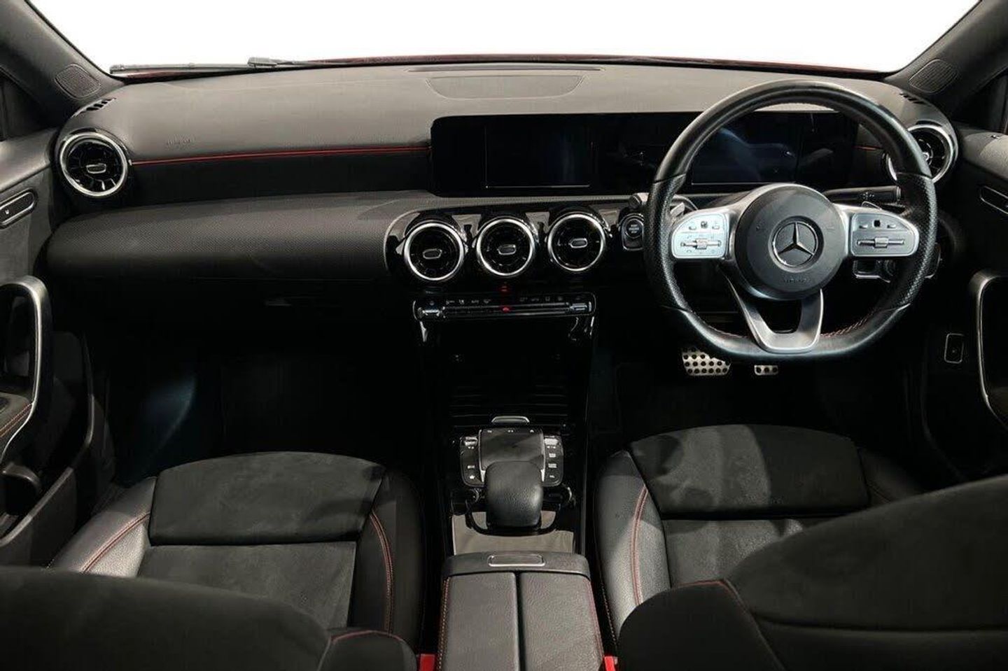 18in Alloy Wheels - AMG 5-Twin-Spoke Design - Painted in Titanium Grey with a High Sheen Finish, ABS - Anti-Lock Braking System with BAS - Brake Assist, Acoustic Ambient Protection, Active Bonnet - Pedestrian Safety Measure which Detects an Impact and Raises Bonnet by 65mm, Active Brake ASSIST, Active Lane Keeping Assist, Adaptive Brake Assist with Hold Function and Hill Start Assist, Adaptive Brake Lights, Air Conditioning - THERMOTRONIC Luxury Automatic Climate Control - Two-Zone with Display, Air Vents - Black with Silver Chrome Elements, Airbag - Kneebag for Driver, Airbags - Dual Stage - Driver and Front Passenger, Airbags - Windowbags for Driver and Front Passenger, Alarm System with Immobiliser and Interior Protection - Thatcham Category 1, AMG Bodystyling - Front and Rear Apron, Artico Leather-Dinamica Microfibre - Black with Red Contrast Stitching, ATTENTION Assist, Automatic Child Seat Recognition Sensor, Beltline Strips - Chrome, Bodystyling - Side Skirts - Body-Coloured, Brake Calipers - Mercedes-Benz Lettering on Front, Brake-Pad Wear Warning Indicator, Brushed Stainless Steel Sports Pedals with Rubber Studs, Bumpers - Body Coloured, Car Wash Mode, Centre Armrest - Front with Stowage, Charging Cable 3 Pin Plug, Charging Cable for Wallbox and Public Charging Stations - Mode 3 - 16 A - 4m, Charging Socket, Charging System - AC Charging System Rated at 7.4 kW, Childproof Locks - Manually Operated for Rear Doors and Electrically Operated for Rear Power Windows, Chrome Weather Strip, Comfort Suspension, Crash-Responsive Emergency Lighting, Cruise Control with Limiter, DAB Digital Radio Tuner, Diamond Radiator Grille with Pins in Chrome - Silver-Painted Louvre and Insert in Chrome, Direct Steer Speed-Sensitive Power Steering, Door Handles - Body Coloured, Door Mirrors - Electrically Adjustable and Heated with Integrated LED Indicators, Dual Bluetooth Interfaces, Dynamic Select with a Choice of Driving Modes - ECO-Comfort-Sport and Individual, Electric Parking Brake, Electric Windows - 4, ESP - Electronic Stability Programme with ASR - Acceleration Skid Control, ESP Curve Dynamic Assist, Exhaust System - Twin Trapezoidal Tailpipes in Polished Stainless Steel, First Aid Kit and Warning Triangle, Floor Mats with Stitched Edging and AMG Lettering, Front Door Sills with Mercedes-Benz Lettering, Glass - Rear Windscreen - Heated with Timer Control, Hard-Disk Navigation, Headlamp Assist - Automatic Headlamp Activation, Heated Front Seats, Hey Mercedes - Voice Activation, High Level Third Brake Light - LED, Instrument Cluster - Fluid Level Warning Indicator for Fuel - Oil - Coolant and Washer Fluid, Instrument Cluster - Outside Temperature Display, Instrument Cluster - Service Indicator ASSYST, Instrument Cluster - Trip Computer in Multi-Function Display with Current Fuel Consumption Indicator, Instrument Display - 7in Display, Interior Mirror with Reading Lamps in Black and Frameless, ISOFIX and Top-Tether Child Seat Fixing Points in Rear - Two Outer Seats, KEYLESS-GO Starting Function, LED High Performance Headlamps with Integrated LED Daytime Running Lights, LED Tail Lights, Light and Sight Package, Light Failure Indicator, Live Traffic Information, Luggage Compartment Cover, Luggage Nets on Driver and Front Passengers Backrests, MBUX Multimedia System, Media Display - 7in Touch Screen Display, Mercedes Me Connect - Standard Services, Mercedes-Benz Sound System - 100W, Patagonia Red, Pre-Entry Climate Control, Pre-Installation for Private Car Share, Privacy Glass, Radar-Based Recuperation, Rain-Sensing Windscreen Wipers with Two Sensitivity Settings, Rear Axle - Multi-Link, Rear Fog Light, Remote Central Locking and Crash Sensor with Emergency Opening Function, Reversing Camera with Parking Guidelines - 180 Degree View, Roof Lining - Black, Seat Belts - Black, Seat Belts - Rear Three-Point - 3, Seat Belts Reminder - Front and Rear, Seat Comfort Package, Seat Occupancy Sensor - Front Passenger Seat, Seats - Rear Seat Backrests - Split Folding 40-20-40, Speed Limit Assist, Sports Seats with Adjustable Head Restraints, Steering Column - Manually Adjustable for Height and Reach, Steering Wheel - 3-Spoke Multi-Function - Trimmed in Leather with Flattened Bottom Section and Perforated Leather in Grip Area with Galvanised Shift Paddles, Summer Tyres, Sun Visors with Illuminated Vanity Mirrors, TIREFIT Tyre-Sealant Kit, Touchpad on Centre Console, Tyre Pressure Monitoring System, URBAN GUARD Vehicle Protection, USB - Type C - 2 Ports in Rear of Stowage Compartment and 1 in Front Centre Console, Window Line - Chrome