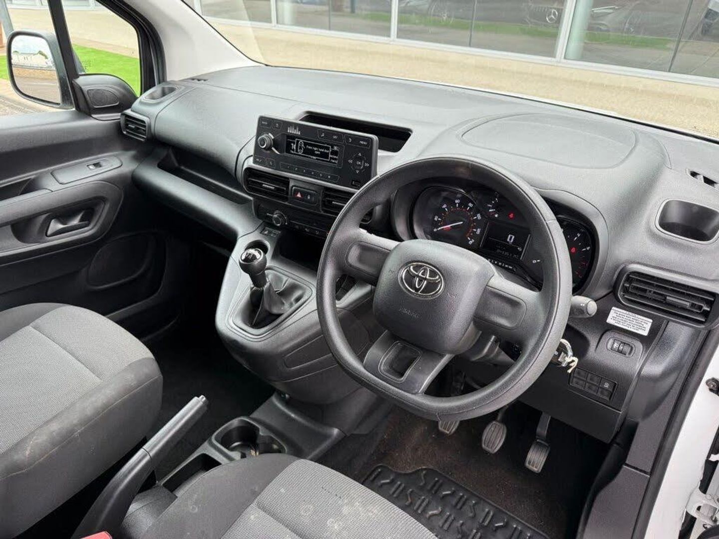 Vivid White, Premium Ply-Lining - Short - Plywood Sides + Door Panel Only, 1 Remote Key + 1 Simple Key, 16in Steel Wheels - Grey with Black Large Centre Caps, 2 Seats - Driver and Single Passenger Seat, Adjustable Head Rests, Analogue Speedometer, Anti Lock Braking System - ABS with Electronic Brake-Force Distribution - EBD, Anti-Jam Protection on Power Windows, Audio Switches Behind Steering Wheel, BA - Brake Assist, Black Door Mirrors and Handles, Black Front and Rear Bumpers, Black Interior Door Handles, Black Upper Front Grille, Bluetooth Hands Free System, Cargo Area Illumination, Closed Upper Passenger Dashboard Storage Compartment, DAB Digital Radio, DAC - Downhill Assist Control, Daytime Running Lights, Driver and Front Passenger Personal Lights, ESC - Electronic Stability Control, Front Bottle Holders, Front Passenger Airbag, Front Power Windows, Full Size Spare Wheel, Gear Shift Indicator - GSI, Glovebox with Cooler, HAC - Hill Start Assist Control, Headlights - Automatic, Heated and Power Adjustable Door Mirrors, In-Floor Storage Box, Inner-Load Hooks x6, Insert Tray on Passenger Dashboard, Key Starting System, Manual Air Conditioning, Manual Parking Brake, Manual Wipers, Manually Foldable Door Mirrors, Mirror on Driver Sun Visor, Monochrome Multi-Information Display, MyT Connected Services, Open Lower Glovebox - Passenger Side, Open Upper Driver Dashboard Storage Compartment, Overhead Storage - Driver and Passenger, Panel Bulkhead, Panel Rear Swing Out Doors, Piano Black Insert on Gear Shift, Pollen Air Filter, Power Steering, Privacy Glass 30 Percent Smoke Tint, Remote Central Locking, Roof Rails, Row 1 Carpet Floor, Rubber Cargo Liner, Satin Chrome Insert on Steering Wheel, Side Protection Moulding without Paint, Speakers x4, Steering Wheel - 3-Spoke Urethane, Supplemental Restraint System - SRS - Airbags - 2 Airbags, Two Sliding Doors, Tyre Pressure Warning System, USB Connector, Urethane Gear Shift, VSC - Vehicle Stability Control, eCall Emergency Call System