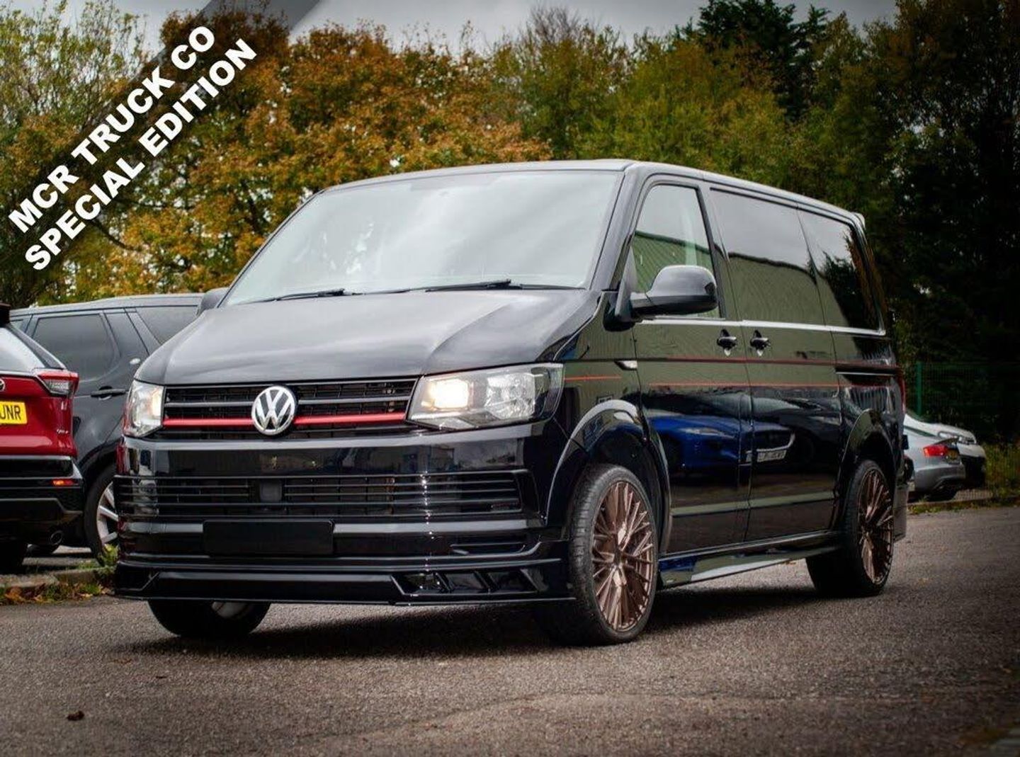 This 2018 Volkswagen Transporter T28 is unlike anything else on the road, a fully reimagined and custom-built widebody project designed and created in-house by the team at MCR Truck Co. Finished in our exclusive "Midnight Noir" paint, a one-of-a-kind mix developed by our technicians, it features striking red pinstripes and an aggressive widebody styling package that completely transforms its look. Sitting perfectly on 20-inch bronze Riviera alloys, with a custom grille and bespoke finishing touches throughout, this Transporter turns heads wherever it goes. Exterior specification includes a full custom wide-body body kit, bespoke front grille, 20-inch bronze Riviera alloys, exclusive "Midnight Noir" paint with red pinstripes, and one-of-a-kind styling by DCS Automotive. The interior is currently a work in progress with exciting upgrades on the way, including a full custom interior retrim, 13-inch media screen, digital dashboard upgrade, and a full engine remap taking power to approximately 175bhp. This Volkswagen Transporter project is a rare opportunity to own a completely bespoke van that blends performance, style, and individuality. Built with passion and precision, it's already a head-turner and there's still more to come. Whether you're looking to upgrade your current van or start fresh, we can transform any vehicle into a true MCR Truck Co special from alloy wheels and styling packs to full bespoke conversions. Need short-term flexibility? We've got you covered with rental options from 3 to 12 months, giving you a practical solution without long-term commitment. Backed by over 15 years of experience, DCS Automotive Wigan offers handpicked light commercials, tailored finance, and expert body shop services all under one roof. Drive away with confidence - choose MCR Truck Co at DCS Automotive.