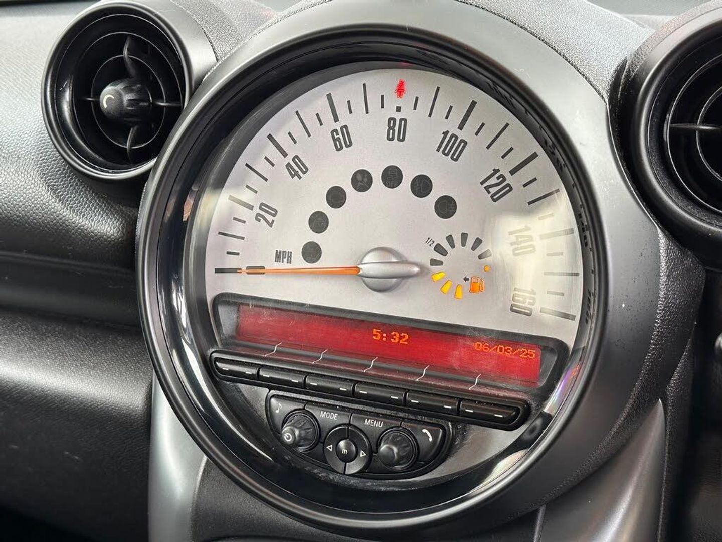 17in Alloy Wheels - 5-Star Double Spoke Light, 3-Spoke Sport Leather Steering Wheel with Gearshift Paddles, 3rd Brake Light, ASC+T - Automatic Stability Control and Traction, Air Conditioning - Manual, Air Scoop Integrated between Bumper and Radiator Grille-Frame in Body Colour, Airbags - Driver, Airbags - Front Passenger, Airbags - Front Passenger with Deactivation Switch, Airbags - Front Side, Airbags - Head, Alarm - Thatcham CAT1, Anti-Lock Braking System - ABS, Aux-In Connection, Basic Bluetooth Function with USB Audio, Bike Rack Preparation at Rear, Brake Assist, Brake Pad Wear Indicator, CBC - Cornering Brake Control, Car Jack, Central Bass Hi-Fi System, Central Locking - Activated At 10mph, Central Locking - Remote, Centre Rail, Child Seat ISOFIX Attachment, Cooled Glovebox, Cupholders - Two in Front, DAB Tuner, DTC - Dynamic Traction Control, Door Handles - Chrome Plated, Door Handles - Interior - Chrome Plated, Door Mirrors - Electrically Adjustable and Heated, Dynamic Stability Control - DSC, EBD - Electronic Brake-Force Distribution, Electric Windows - One Touch Up and Down Front and Rear, Electronic Power Steering, Embellisher at Bottom Edge of All Windows - Chrome Plated, Exhaust Tailpipe - Visible Double Round Left and Right with Chrome Finishers, Footrest and Pedals in Stainless Steel, Frame Chrome-Plated Radiator-Grille in Honeycomb Black, Grab Handles, Halogen Lights for Low Beam and High Beam Headlights, Headlight - Beam-Throw Control Electrical with Manual Adjustment, Headlights - Chrome Bezels, Headlights - Follow Me Home, Headlining - Beige, Heated Front Windscreen Washer Jets, Hill Assist, Interior Surfaces - Dark Anthracite Decorative Trim Finishers on Centre Console and Door Ring, Interior lights - Integrated into Centre Front Headliner including Two Reading Lights, Lashing Eyes in Luggage Compartment, MINI Mobility System, MINIMALISM Fuel Saving Technology, Microfilter, Mirror Caps in Body Colour, PDC - Park Distance Control - Rear, Radio BOOST CD, Roof Rails - Dark Anthracite, Roof in Body Colour, Seats - 40:20:40 Split Rear Backrests, Seats - Height Adjustable Drivers, Seats - Sports Front, Second Radio Remote Key, Security Locking Wheel Bolts, Side Scuttles with Integrated Indicators, Spoiler - Roof, Sport Button, Steering Column Height and Length Adjustment, Sun Visors with Integrated Vanity Mirrors on Drivers and Passengers Sides, TPWS - Tyre Pressure Warning System, White Direction Indicators Lights, 17in Alloy Wheels - 5-Star Double Spoke in Anthracite Matt, Colour Line - Carbon Black, Interior World - Carbon Black, Diagonal Track Cloth - Carbon Black