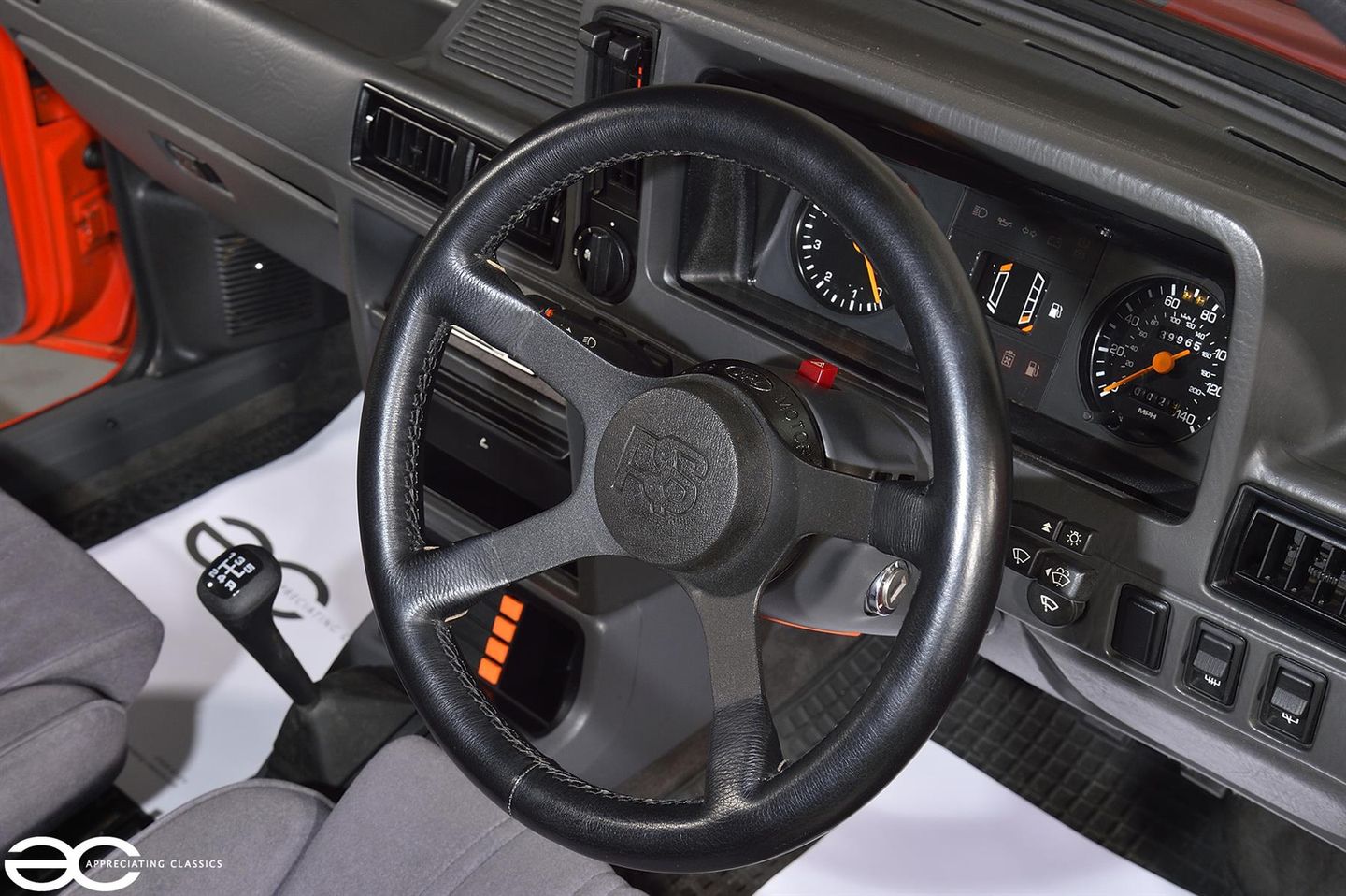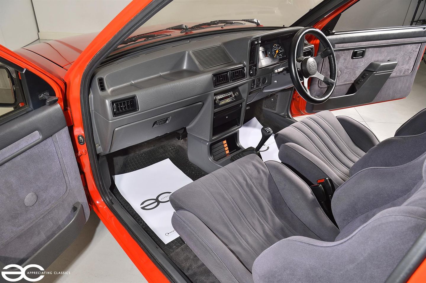 Inside, the RS1600i retains its factory Shark Grey crushed velour seats, which remain in remarkable condition, showing minimal wear.