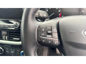 Air Conditioning, Metallic Paint, Cruise Control, Satellite Navigation, Alloy Wheels, DAB Radio, Bluetooth, Parking Sensors, Stop Start, Heated Front Windscreen, Low Mileage, USB, Apple-Android Play, Auto Lights, Electric Folding Mirrors, Lane Departure& Lane Keeping Assist, Boot carpet, Quickclear heated windscreen, Electronic stability control with hill start assist, Bluetooth system, Electric power steering, Ford easy fuel, 8" touch screen, Body colour electric adjustable heated door mirrors with integral indicators, 10 speakers, Body colour rear spoiler, Halogen projector headlamps with LED daytime running lights, Manual air conditioning, 3 spoke leather trimmed steering wheel with audio control, Footwell illumination, NCAP Pack - Fiesta, Driver and passenger airbags, Rear centre head restraint, Remote central locking & engine immobiliser, Tyre repair kit