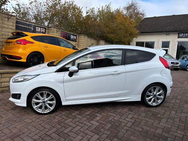 63,659 miles (11 service stamps) 1 year MOT - 3 month warranty - service - 12 months road TAX all included at point of sale, We are delighted to offer for sale this lovely smooth driving and stunning looking example of this much loved and sought after rare Titanium model, finished in stunning Frozen White paint, two owners from new, excellent condition throughout, this Fiesta has never been smoked in and has always been maintained to the highest of standards, it's spent it's life down England so it's tidy underneath as well, Ideal safe and reliable sporty run about, Economical to run only 20 a year road TAX and the 1.0 Litre 99 BHP engine returns over 65 miles per gallon combined, It will have a full years MOT on it with no advisories and also serviced before collection in the B R service and MOT centre, Simply a true one off exceptional example !! Specification and safety as follows: Cruise control, Bluetooth mobile phone connectivity, voice activation, front+rear heated screens, electric windows, electric heated/folding door mirrors, air conditioning, auto digital climate control, CD/DAB Radio player with steering controls + remote USB/AUX sockets, auto lights/wipers/dimming mirror, on board trip computer, heated washer jets, remote central locking, 2 keys, alarm/immobiliser, start/stop system (can be switched off) Ford ECO mode, Tyre monitor system, Daytime running lights, cup holders, vanity mirrors, storage compartments, power steering, adjustable steering, adjustable front seats, height adjustable drivers seat, 60/40 split/folding seats, front/side/curtain/knee airbags, air bag deactivation, headrests, 5 seatbelts, seatbelt pretensioners, central locking/electric window over-ride switchs, ISOFIX, high level brake light, ABS brakes, traction control, hill start assist, rear wiper, fog lights, headlight aim adjust, tinted glass, alloys, 200 deposit secures this stunning Fiesta ! OPEN 7 DAYS - OPEN LATE 8 PM - PART EX WELCOME - CREDIT/DEBIT CARDS ACCEPTED - FINANCE ARRANGED - FINANCE ARRANGED - NATIONWIDE DELIVERY POSSIBLE BY ARRANGEMENT