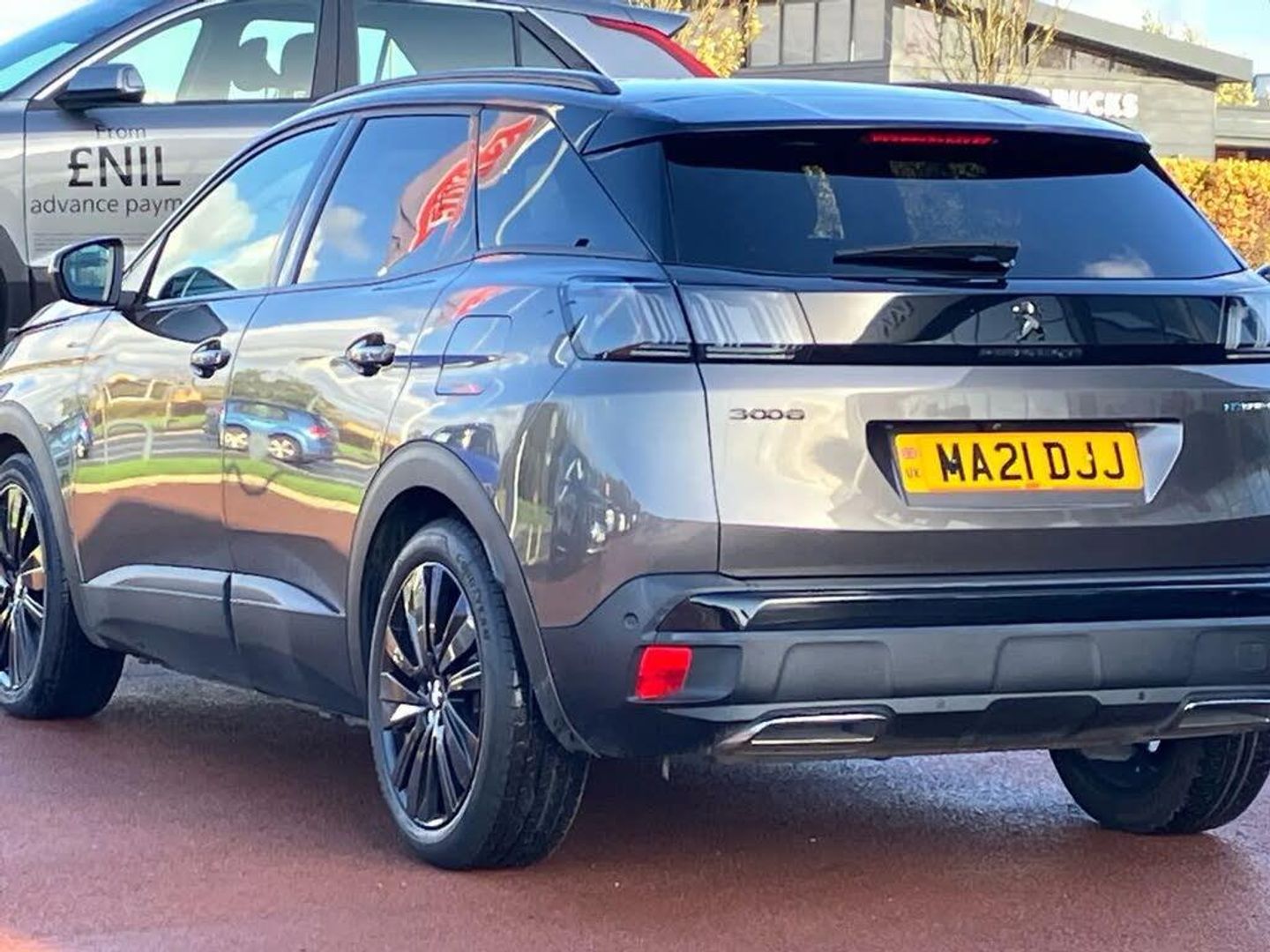 3D connected navigation with 10" HD touchscreen + voice recognition system,Apple car play and Android auto,Blind spot detection system,Bluetooth telephone facility,Drive mode selector (Electric, Hybrid, Sport, 4WD) & Hill Assist Descent Control,Driver Attention Alert level 3,Driving Time Warning (DAA1),Emergency services call system,Extended traffic sign recognition,Exterior temperature indicator with ice warning,Front and rear parking sensors,Lane departure warning system,Lane Keeping Assistance (LKA) with road edge detection,Mirror screen with mirror link, apple carplay and android auto,Multi function trip computer,Peugeot i-cockpit with compact multi-function sports steering wheel,PEUGEOT i-Cockpit with configurable 12.3" Head-up digital instrument panel,PEUGEOT SOS and assistance,Rear passenger USB charging sockets (x2) (type A),Speed limit recognition and recommendation,Deferred charging option, configurable in car or via My PEUGEOT App,Dynamic stability control and electronic anti-skid system,Mode 3 type 2 cable for wallbox charging,DAB Digital radio,USB socket,Auto self levelling headlights,Automatic hazard light activation upon heavy brake application,Automatic triggered rear windscreen wiper in reverse gear,Black with chrome detailed front wing trim,Body colour door handles,Body colour rear roof spoiler with stainless steel edging trim,Body protectors (bottom of front and rear bumpers + wheel arches + protection at bottom of doors) in black,Dark tinted rear side windows + tailgate window,Diamond Black door mirror shells,Door mirror mounted LED courtesy floor lighting,Electric folding door mirrors with exterior courtesy LED lighting,Electric operated/heated door mirrors,Fog Mode,Front windscreen wiper with magic wash cleaning system,Full LED headlights with LED fog lights with static cornering function,Gloss black B and C pillar and aerodynamic deflector trim,Gloss black front bumper air scoops,Gloss black rear cluster connecting strip,Gloss black windscreen trim,Headlights left on audible warning,Heated rear windscreen with integrated antenna,High beam assist,HYBRID4 emblem on front wings and tailgate,LED daytime running lights,LED front indicator,LED rear number plate lighting,LED side indicator lights integrated into door mirrors,LED third brake light,One touch electric front/rear windows with pinch protection,Rear LED Peugeot signature 'Claw Effect' lights with clear lens and scrolling LED direction indicators,Rear side wing doors,Twin exhaust tailpipe,1/3 to 2/3 split folding rear seats,12V Sockets in dashboard, rear cabin and load area,2 cupholders in front centre console,2 cupholders in rear armrest,2 x Rear reading spotlights,2x Rear coat hooks,3x Isofix child seat fittings in the front passenger and outer rear seats,4 Grab handles retractable and damped,Aikinite stitching in armrest, gear lever and dashboard facia,Aluminium pedals,Blue ambient lighting for connecting zone,Blue ambient lighting to front door panels, central storage and cupholders,Blue ambient lighting to headup instrument panel,Cabin pre-conditioning,Centre front armrest with butterfly wing opening and illuminated storage compartment,Driver seat manual adjustment (longitudinal and back rest angle),Dual zone automatic climate control,e-Toggle compact gear selector,Electric power steering with reach and rake adjustable steering column,Fixed boot floor with access to the charging cable storage box,Flocked front door pocket interior with blue ambient lighting,Flocked glovebox interior,Foldable front passenger seat with picnic table,Footwell illumination,Front interior light with 2 reading spotlights and rear interior light with timer,Front passenger seat manual adjustment (longitudinal and back rest angle),Front seat back map pockets,Gear shift indicator,Illuminated glovebox,Individual left and right controls in boot for seat folding,LED interior lighting in storage spaces and load area,LED roof interior lighting,Mistral floor mats with Aikinite contrast stitching,Mistral full grain perforated leather steering wheel with aikinite stitch detail and satin chrome 'GT' emblem,Rear bench seat with central armrest and ski hatch,Rear centre console ventilation system,Roof lining - Mistral black,Satin chrome dashboard trim,Satin chrome digital instrument panel and touchscreen trim,Satin chrome front door panel recess trim,Satin chrome interior door handles,Satin chrome scorpion's tail and toggle switch trim,Seatbelt not fastened audible and visual alert for front seats,Seatbelt unfastened on the move audible and visual alert for front and rear seats,Sunvisors with illuminated vanity mirrors,Drive assist plus pack - 3008,Visibility pack - 3008 GT,3x Rear three-point retractable seatbelts with force limiters in the outer rear seats,ABS (Anti-lock Braking System) with EBD (Electronic Brakeforce Distribution) and EBA (Emergency Braking Assistance),Acoustic vehicle alerting system