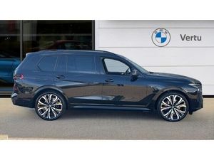 Command attention and experience the pinnacle of luxury and performance with the 2022 BMW X7 xDrive40d MHT M Sport 5dr Step Auto, now available to test drive at Vertu BMW Teesside. Finished in elegant Black Sapphire Metallic and paired with bold 23 alloy wheels, this X7 makes a statement on every road. This model features the sought-after Comfort Package and an impressive selection of extras, including the Ultimate Package and M Sport Pro Package, combining luxury, innovation and performance. With a 6-seat configuration, this X7 offers premium comfort for every passenger, enhanced by M Electric Front Sport Seats, front massage and ventilated seats, and a Heat Comfort System. Front and rear heated seats, ambient lighting, Ambient Air fragrance system, and soft-close doors elevate the cabin experience even further. The Sky Lounge Panoramic Glass Sunroof, Crafted Clarity interior controls, and Iconic Glow Kidney Grille add distinctive touches of sophistication, while M Carbon side mirrors and M Sport styling enhance its commanding presence. Enjoy the power of the M Sport exhaust system and precision handling with Integral Active Steering and Executive Drive Suspension, supported by BMWs Mild Hybrid Technology for improved efficiency and performance. Cutting-edge technology comes as standard with features such as Driving Assistant Professional, Parking Assistant Professional, Gesture Control, and Live Cockpit Professional. Entertainment is delivered through the immersive Bowers & Wilkins sound system, while convenience features like Comfort Access, rear side window blinds, and heated/cooled cupholders ensure no detail is overlooked. At Vertu BMW Teesside, our expert team is on hand to offer a seamless car-buying experience from start to finish. We'll begin with a personalised video presentation, tailored to showcase the features most important to you. As an Approved Used BMW, this X7 comes with a full BMW service history and benefits from 12 months warranty, 12 months roadside assistance, and 12 months MOT, along with a thorough inspection by our BMW-trained