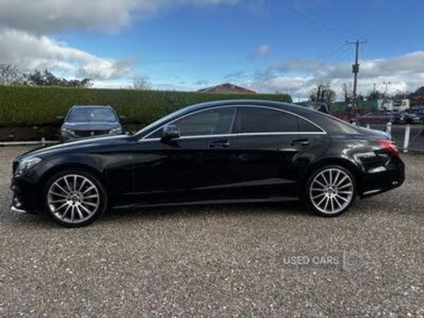Active park assist with parktronic system, Attention assist, Bluetooth interface for hands free telephone, Collision prevention assist plus, COMAND online HDD Nav with media interface, radio/CD/DVD/MP3, 8" screen, linguatronic, 10GB music register, memory card slot, smartphone integration, Multi function trip computer, Outside temperature gauge, Remote boot release, Service indicator (ASSYST PLUS), Smartphone integration with Apple CarPlay and Android auto, Speed sensitive power steering, DAB Digital radio, Harman Kardon sound system with 14 speakers and amplifier, SD card slot, USB/aux input socket, Adaptive brake lights, AMG bodystyling, Auto dimming door mirrors, Auto dimming rear view mirror, Automatic headlights with high beam assist, Body coloured bumpers, Chrome door handles, Elec heated + adjust door mirrors, Electric folding door mirrors, Electric front/rear windows with one touch/anti pinch, Electric glass sunroof, Front fog lights, Headlight washers, Heated windscreen wash system, Illuminated door handles, Intelligent LED headlight system with active cornering lights, LED daytime running lights, LED rear lights, Radiator grille with integral star and 1 louvre in diamond design, Rain sensor windscreen wipers, Tinted glass, Visible twin exhaust tailpipe in bumper, Adjustable lumbar support, 1/3 to 2/3 split folding rear seats, 2 rear head restraints, 3 spoke flat bottom AMG steering wheel in nappa leather, Ambient lighting, AMG floormats, AMG sports seats, Auto Mercedes-Benz child seat recognition sensor, Courtesy light switch-on with door unlocking, Dual zone climate control, Easy-pack folding rear seat backrests, Front and rear door pockets, Front centre armrest with storage compartment, Front cupholders, Front height/angle adjust neck pro active head restraints, Front seat back map pockets, Heated front seats, Height/reach adjust steering wheel, Illuminated glovebox, Interior rear light/integral reading lights, Isofix rear child seat fastenings, Leather gear knob, Lockable glovebox, Multi function steering wheel, Rear armrest with storage + cupholders, Sports pedals with stainless steel surfaces and rubber studs, Steering wheel gearshift paddles, Storage compartment under load area floor, Sunvisors with illuminated vanity mirrors, Memory pack - CLS, ABS with Brake Assist, Adaptive brake system, Brake calipers with Mercedes-Benz lettering + perforated brake discs, Child proof door locks, Drivers knee airbag, Dual stage Driver/Passenger Airbags, ESP with ASR, Front and rear curtain airbags, Front side airbags, Hill start assist, Pre-Safe anticipatory safety system, Rear seatbelt warning indicator, Tyre pressure monitoring system, Warning triangle and first aid kit, Alarm system/interior protection/immobiliser, Locking wheel bolts, Remote central locking, Diesel particulate filter, 19" AMG multi spoke alloy wheels titanium grey, Tyre repair kit