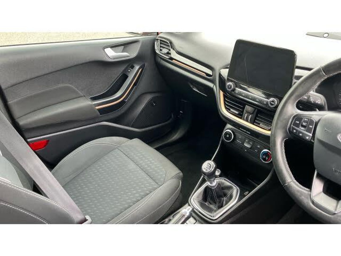Air Conditioning, Metallic Paint, Satellite Navigation, Alloy Wheels, DAB Radio, Bluetooth, Parking Sensors, Stop Start, Heated Front Windscreen, Low Mileage, USB, Apple-Android Play, Auto Lights, Lane Keeping Assist& Rain Sensors, Boot carpet, Quickclear heated windscreen, Electronic stability control with hill start assist, Bluetooth system, Electric power steering, Ford easy fuel, 8" touch screen, Body colour electric adjustable heated door mirrors with integral indicators, 10 speakers, Body colour rear spoiler, Halogen projector headlamps with LED daytime running lights, Manual air conditioning, 3 spoke leather trimmed steering wheel with audio control, Footwell illumination, NCAP Pack - Fiesta, Driver and passenger airbags, Rear centre head restraint, Remote central locking & engine immobiliser, Tyre repair kit