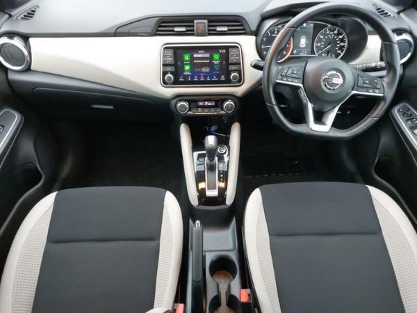 Smartphone integration with Apple CarPlay and Android auto, Nissan Connect touchscreen navigation and Entertainment system, 360 degree around view monitor, Rear parking sensors, Rear view camera, Engine start button, Bluetooth system, Audio system with MP3, DAB Digital radio, Steering wheel mounted audio controls, Metallic paint, Auto dimming rear view mirror, Heated door mirrors, LED Headlights, LED signature daytime running lights, 17" Diamond cut alloy wheels, Isofix front passenger and rear seat preparation, Leather wrapped steering wheel, Reclining front seats, Synthetic leather front door pads, Synthetic leather instrumental panel inserts, 60/40 split folding rear seat