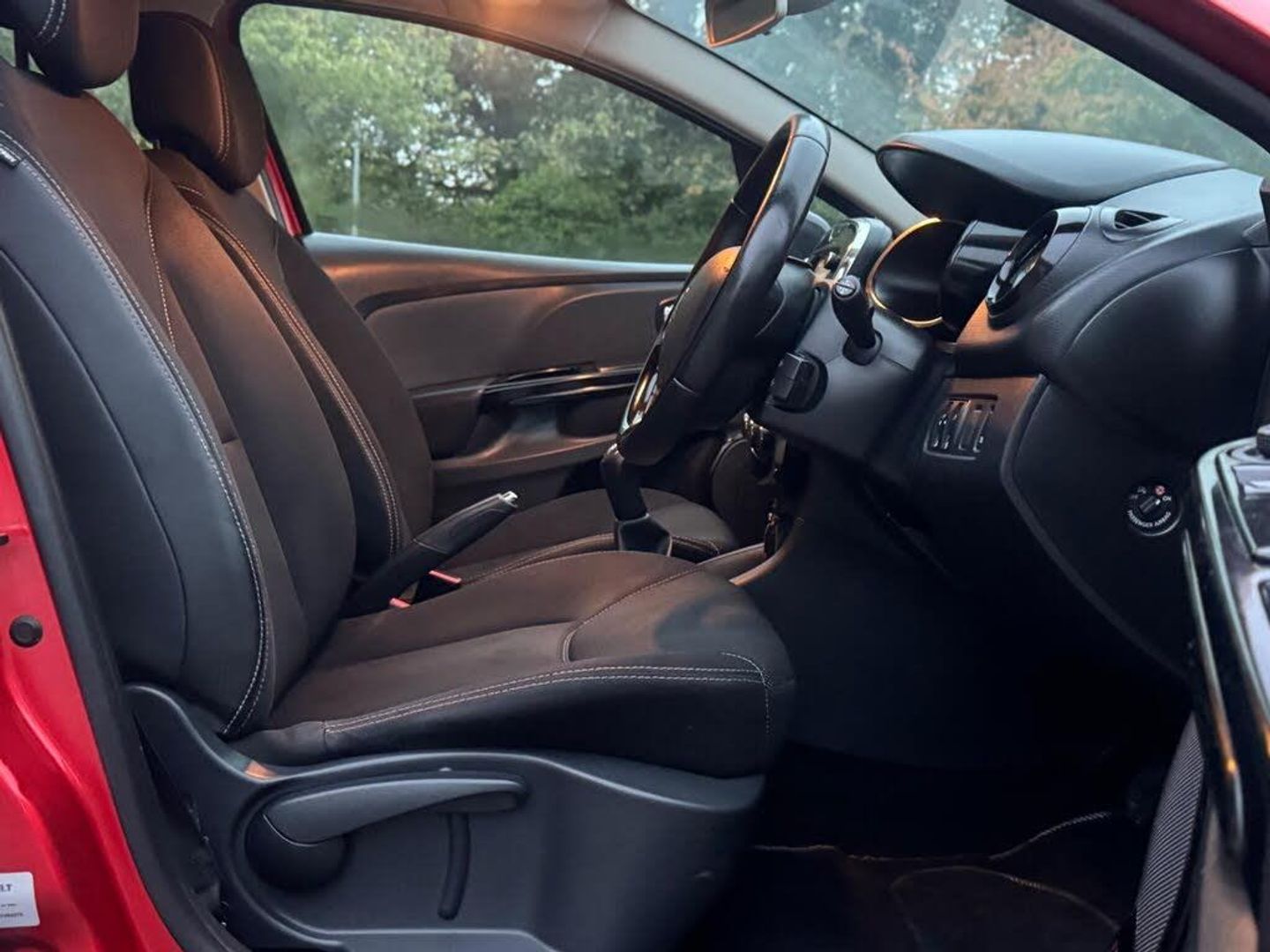 1.2L Storage Shelf Above Glovebox, 12V Power Socket, 16in Alloy Wheels - Passion Chrome, 2x Storage Spaces for 2 Cups and Miscellaneous Items near Handbrake, 4L Front Glovebox, 7in Touch Screen, ABS - Anti Lock Brakes, Air Conditioning - Manual, Airbags - Driver, Airbags - Front Lateral, Airbags - Front Passenger, Airbags - Front Passenger Deactivation, Airbags - Thorax, Anti Drill Door Locks, Arkamys 4x20W Radio and Handsfree Technology Renault Bass Reflex System, Automatic Windscreen Wipers with Rain Sensors, Bluetooth Connectivity, Bumpers - Body Coloured, Bumpers - Front - Gloss Black with Chrome Surround, CSV - Understeer Control, Centre Console - Gloss Black, Chrome Instrument Dial Surrounds, Cruise Control with Speed Limiter, Dashboard - Soft Touch Dark Carbon, Deadlocking, Door Handles - Body Coloured - Front, Door Handles - Interior Chrome, Door Handles - Interior Matt Black Surround, Door Mirrors - Electrically Adjustable - Manual Folding and Heated, Door Mirrors - Gloss Black Housing, EBA - Emergency Brake Assist, EBD - Electronic Brake Distribution, ESC - Electronic Stability Control, ETC - Electronic Traction Control, Eco Mode, Electric Windows - Front with Anti Pinch, Exterior Chrome Touches - Side Door- Boot Lid Strip and Front Grille Strips, Fingertip Remote Control, Front Fog Lights, Front Speaker Surrounds - Gloss Black with Red Bass Reflex Logo, Fuel Computer, Gear Change Indicator, Gear Gaiter Surround - Gloss Black, Gear Knob - Chrome, Gloss Black Front and Side Air Vents Surrounds, Gloss Black Surround Front Speakers with Logo, HSA - Hill Start Assist, Handsfree Keycard with Push Button Start-Stop Function, Handsfree Technology and Renault Bass Reflex System, Headlights - Automatic On, Headlights - Black Surrounds, Headlights - Daytime Running Lights, Headrests - Front Height Adjustable, Headrests - Rear x3, Heating System with Pollen Filter, ISOFIX - Child Seat Fixing Points - Outer Rear Seats, Lane Change Function, Lightly Tinted Windows, Lower Door Protector - Black Gloss with Chrome Insert, Navteq Nav n Go Satellite Navigation, On-Board Multimedia System, Passenger Dashboard Storage with Anti-Slip Carpet, Power Assisted Steering - Electric Variable, Push Button Start, RAID - Renault Anti Intruder Device, Rear Diffuser - Black Gloss, Rear Spoiler - Body Coloured, Remote Central Locking, Renault MediaNav Intergrated on Board Multimedia System inc 7in Touch Screen, Seatbelt Warning Sound, Seats - 60-40 Split Folding Rear, Seats - Drivers Height Adjustment, Seats - Folding Passengers, Small Storage Area by Gear Stick for Phone-Keys, Soft Touch Dashboard, Steering Wheel - Height and Reach Adjustable, Steering Wheel - Leather with Gloss Black Insert, Storage Space 1.2L - 1x Front Door, Strip Base of Bootlid - Chrome, Tyre Inflation Kit, Tyre Pressure Monitoring System, USB Connection, Window Surrounds - Black Rubber, 16in Alloy Wheels - Passion Black