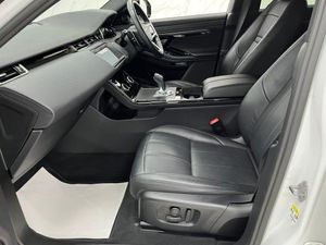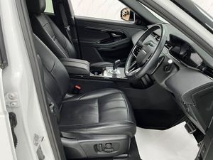 Fuji White, Grained Leather - Ebony with Ebony-Ebony Interior, 10in Touchscreen, 12-Way Driver and 10-Way Passenger Heated Electric Front Seats with 2-Way Manual Headrests and Rear Centre Armrest, 18in Alloy Wheels - Style 5074 - Sparkle Silver, 40-20-40 Folding Rear Seats, ABS - Anti Lock Braking System, ACC - Adaptive Cruise Control, ATPC - All Terrain Progress Control, All Season Tyres, Ambient Interior Lighting, Analogue Dials with Central TFT Display, Android Auto, Apple CarPlay, Approach Lights, Auto-Dimming Interior Rear View Mirror, Automatic Headlights, Bluetooth Connectivity, Body Coloured Roof, Brake Pad Wear Indicator, Bright Metal Pedals, Cabin Lighting, Carpet Mats, Chrome Treadplates, Customer Configurable Autolock, DAB - Digital Audio Broadcast, DSC - Dynamic Stability Control, Driver Condition Monitor, EBA - Emergency Brake Assist, EBD - Electronic Brake-Force Distribution, EPAS - Electronic Power Assisted Steering, ETC - Electronic Traction Control, Electric Parking Brake, Electric Windows with One-Touch Open-Close and Anti-Trap, Emergency Braking, Evoque Badge, Flush Deployable Door Handles, Front and Rear Parking Aid, HDC - Hill Descent Control, Headlining - Ebony Morzine, Heated Electric Power Fold Door Mirrors with Approach Lights and Auto-dimming Driver Side, Heated Rear Window with Timer, Hill Launch Assist, Home Charging Cable, Intrusion Sensor, LED Headlights, Lane Keep Assist, Leather Steering Wheel, Locking Wheel Nuts, Low Traction Launch, Manual Headlight Levelling, Manual Tailgate, Manually Adjustable Steering Column, Online Pack with Data Plan, Overhead Lighting Console, Overhead Stowage for Sunglasses, P300e Badge, Passive Front Headrests, Passive Suspension, Pivi Pro - Connected, Power Operated Child Locks, Power Socket Pack 1, Public Charging Cable, Push Button Start, R-Dynamic Exterior Pack, RSC - Roll Stability Control, Rain Sensing Windscreen Wipers, Rear Air Vents, Rear Animated Directional Indicators, Rear Centre Headrest, Rear Collision Monitor, Rear Fog Lights, Rear ISOFIX, Rear View Camera, Remote, Satin Chrome Gearshift Paddles, Seat Belt Reminder, Secure Tracker (12 Month Subscription From New), Six Airbags, Sound System, Standard Roof, Sun Visors - Illuminated Vanity Mirrors, TPMS - Tyre Pressure Monitoring System, TVBB - Torque Vectoring by Braking, Tailgate Spoiler, Terrain Response 2, Traffic Sign Recognition and Adaptive Speed Limiter, Trim Finish - Gradated Linear Dark Aluminium, Twin Sliding Front Centre Armrest, Two-Zone Climate Control, Windscreen - Heated, Windscreen Washer Jets - Heated, Wireless Device Charging