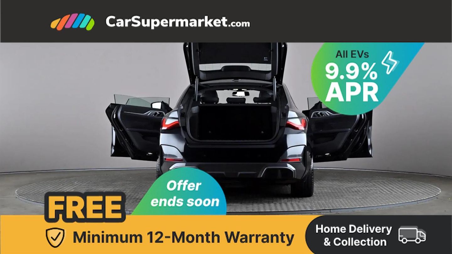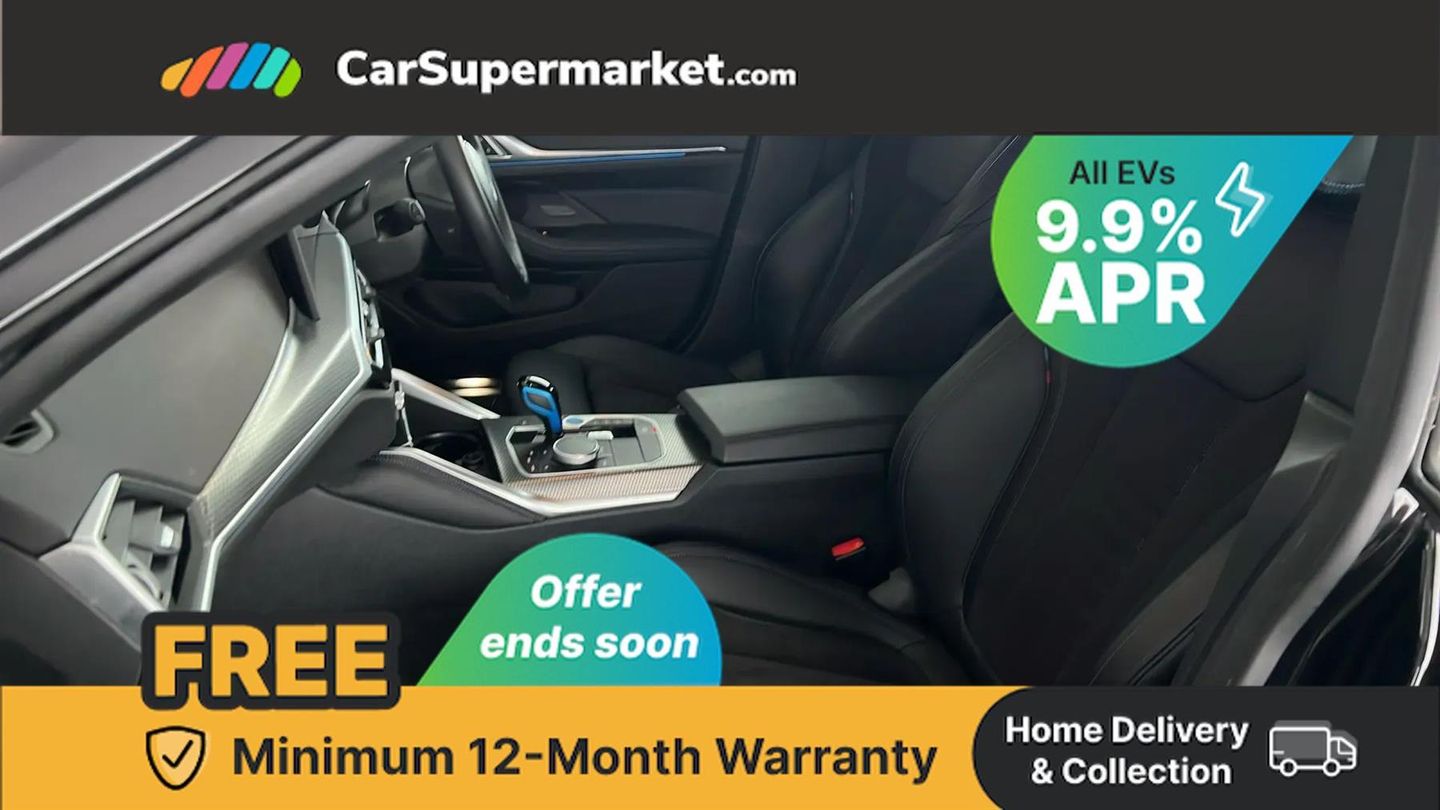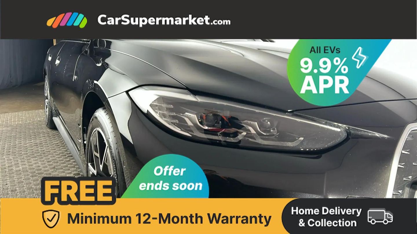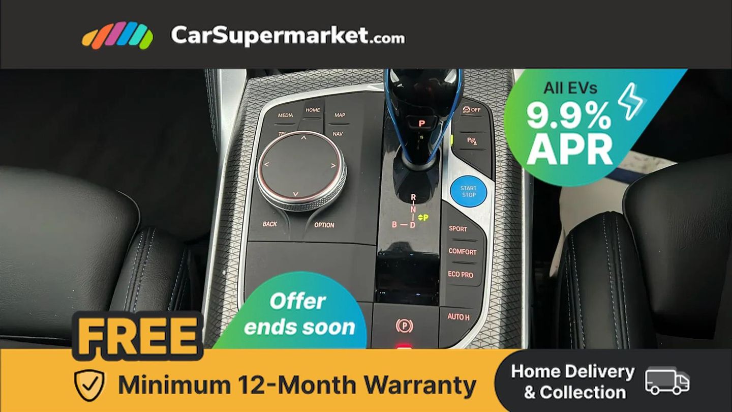 Active guard plus,Attentiveness assist,Automatic tailgate operation,BMW legal emergency call,BMW remote services,BMW Teleservices,Condition based service,Cruise control with brake assist,Drive off assistant,Driving experience switch,Electric Power Steering (EPS) with Servotronic,Engine start/stop button,iDrive controller,Integrated owners handbook,Live cockpit plus with nav function 12.3" instrument cluster and 14.9" centre display,Personal Profile - automatic lock when driving away selectable,Preparation for active cruise control with stop and go,Run flat indicator,Service interval indicator,Smartphone integration,Speed limiter,Widescreen display,AC charging up to 11kW,DC charging up to 150kW,eDrive exterior sound,Electric drive unit,Electronic differential lock,High voltage battery,Mode 2 flexible charger,Mode 3 charging cable,Safety battery terminal clamp,Standard suspension,2x USB Type C ports in front centre console for charging and data transfer,BMW iconic sound electric,DAB tuner,Auto dimming rear view mirror,Auto dimming with folding wing mirrors,BMW badge on bonnet and tailgate with blue ring around the badge,BMW radiator grille partially with blue accent,BMW radiator grille with mesh grille/end face of the nuggets in quartz silver matt,Body colour door handles,Body colour mirror caps with bottom segment in matt black,Electric adjustable exterior mirrors,Electric windows with trap release and convenient opening/closing feature,Exterior mirror heated,Fading support,Follow me home headlights,Front and rear bumper system,Front apron plastic in body colour,Headlight beam throw control,Heated washer jets,High gloss black mirror triangles,High gloss shadow line exterior trim,I badge with blue highlight on front ornamental grille,I4 charging socket flap, right, rear in body colour,Integrated outside door handles, flush design, flush integrated, handle recess indirectly illuminated,Lateral blue accent including air breather,LED daytime running lights,LED direction indicator lenses,LED eyebrow light,LED front fog lights,LED rear lights,M Sport entry door sill strips,M Sport spoiler,Mirror glass aspheric on driver's side, convex on passenger side,Model logo - Rear and right model designation, Rear left i4 inscription,Number plate panel integrated into front bumper and tailgate,One piece front bumper cover including towing eye cover in body colour,Rain sensor including auto headlights activation,Rear bumper with blue accent,Rear side wing doors,Rear wiper,Reversing light,Roof fin in body colour,Side frame trim strip in black matt,Side LED indicators,Trailer stabilisation logic,Turn indicators in side mirrors,Visible VIN plate,Welcome lighting,Window cavity seal in black matt,12v power outlet - luggage side,12V power outlet in front console,2 front cupholder in centre console with clamping elements and matt black inlay,3 seat bench in 2nd row,3 spoke leather M sport multifunction sports steering wheel,40:20:40 split folding rear seat and rear centre armrest with two cupholders,Adjustable steering column,Ambient door pocket lighting,Ambient inside door handle light in rear,Ambient interior lighting with 11 pre-defined selectable light designs including 6 colours,Ambient light design projected onto the left and right entering and exiting area,Ambient storage compartment lighting in the centre console,Anthracite headlining,Automatic air conditioning with 3 zone control,BMW ID,Compartment in front of cupholder,Contour lighting in instrument panel and door trim panel,Driver seat backrest width adjustment,Dynamic function of contour lighting,Front and rear ambient footwell lighting,Front and rear armrest with integrated door trim,Front and rear door exit lights,Front and rear door pockets,Front sport seats,Glovebox light,Headrests for all seats,Heated front seats,Illuminated armrest storage compartment,Interior light and reading light,Lashing eyelets in boot,Luggage compartment light,Make-up mirror lights,Manual adjustment of seat height, fore/aft position, seat depth, backrest tilt and head restraint height,Rear storage compartment,Single front passenger seat,Storage tray and compartment with cover in centre console,Sunvisors with vanity mirrors and ticket pocket,Through loading system,Toolkit,M Sport exterior styling pack - I4,3 point seatbelts on all seats,Acoustic protection for pedestrians,Active protection,Anti lock braking system (ABS) with brake assist,Automatic Stability Control (ASC),Battery safety cut-off,Brake drying,Brake energy regeneration,Brake pretensioning,Cornering brake control (CBC),Crash sensor activating central locking release, hazard warning lights,Driver and front passenger airbags,Driver and passenger side airbags,Driver/passenger seat occupancy sensor,Dynamic brake control,Dynamic stability control + (DSC+),Dynamic Traction Control - DTC,Electromechanical parking brake,Front and rear curtain airbags,Front and rear ventilated brake disc,Head airbags for all 4 outer seats