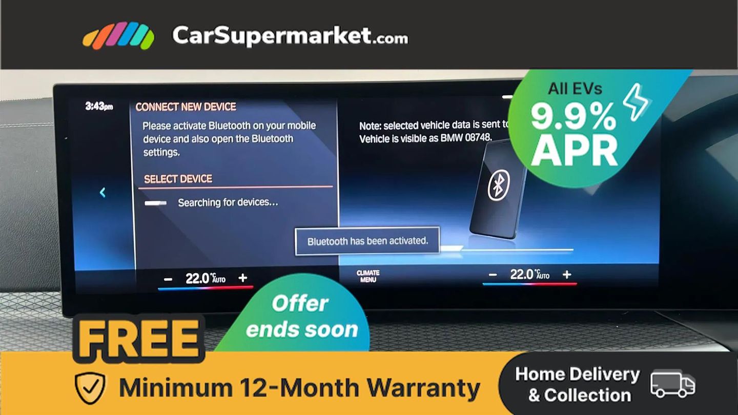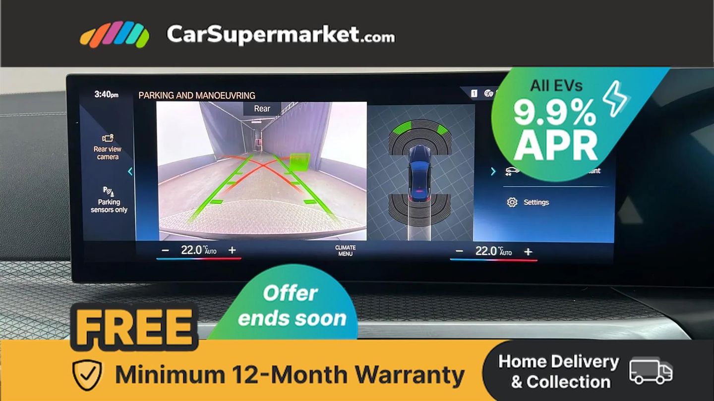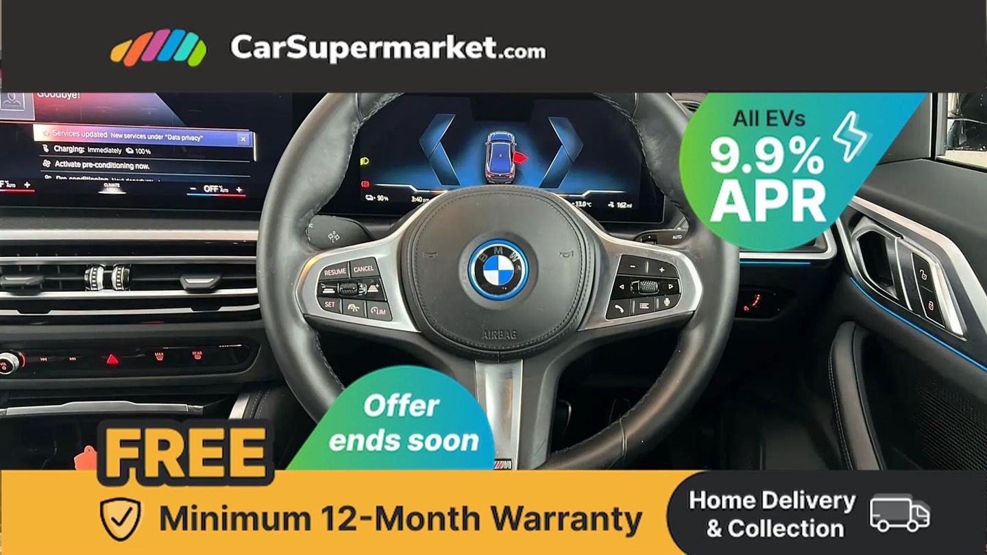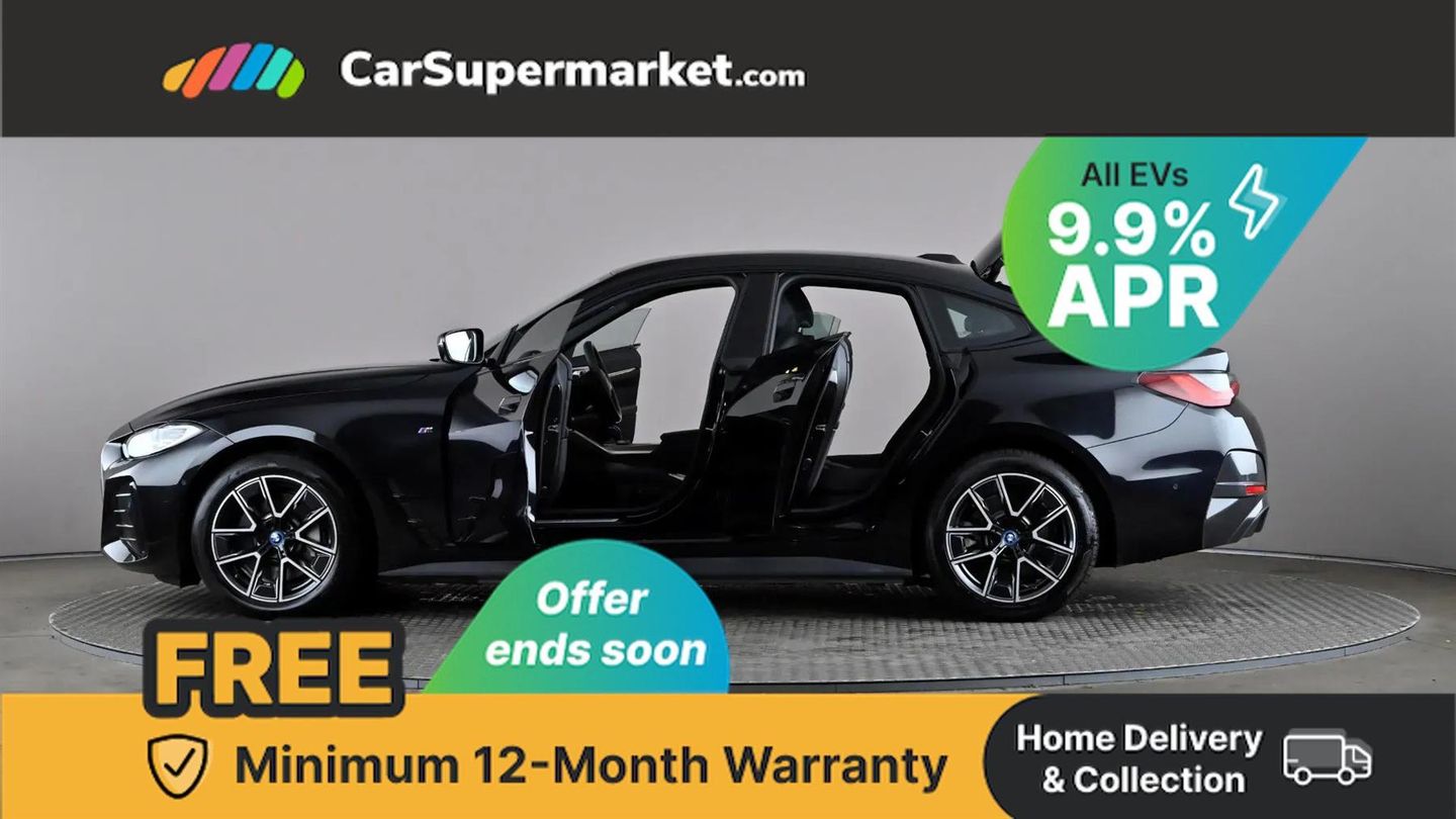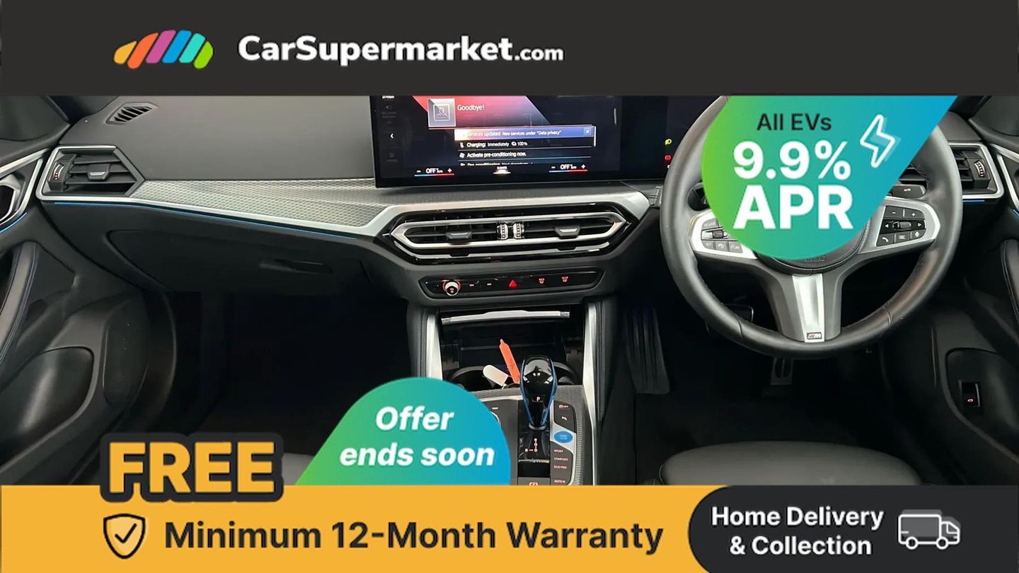 Active guard plus,Attentiveness assist,Automatic tailgate operation,BMW legal emergency call,BMW remote services,BMW Teleservices,Condition based service,Cruise control with brake assist,Drive off assistant,Driving experience switch,Electric Power Steering (EPS) with Servotronic,Engine start/stop button,iDrive controller,Integrated owners handbook,Live cockpit plus with nav function 12.3" instrument cluster and 14.9" centre display,Personal Profile - automatic lock when driving away selectable,Preparation for active cruise control with stop and go,Run flat indicator,Service interval indicator,Smartphone integration,Speed limiter,Widescreen display,AC charging up to 11kW,DC charging up to 150kW,eDrive exterior sound,Electric drive unit,Electronic differential lock,High voltage battery,Mode 2 flexible charger,Mode 3 charging cable,Safety battery terminal clamp,Standard suspension,2x USB Type C ports in front centre console for charging and data transfer,BMW iconic sound electric,DAB tuner,Auto dimming rear view mirror,Auto dimming with folding wing mirrors,BMW badge on bonnet and tailgate with blue ring around the badge,BMW radiator grille partially with blue accent,BMW radiator grille with mesh grille/end face of the nuggets in quartz silver matt,Body colour door handles,Body colour mirror caps with bottom segment in matt black,Electric adjustable exterior mirrors,Electric windows with trap release and convenient opening/closing feature,Exterior mirror heated,Fading support,Follow me home headlights,Front and rear bumper system,Front apron plastic in body colour,Headlight beam throw control,Heated washer jets,High gloss black mirror triangles,High gloss shadow line exterior trim,I badge with blue highlight on front ornamental grille,I4 charging socket flap, right, rear in body colour,Integrated outside door handles, flush design, flush integrated, handle recess indirectly illuminated,Lateral blue accent including air breather,LED daytime running lights,LED direction indicator lenses,LED eyebrow light,LED front fog lights,LED rear lights,M Sport entry door sill strips,M Sport spoiler,Mirror glass aspheric on driver's side, convex on passenger side,Model logo - Rear and right model designation, Rear left i4 inscription,Number plate panel integrated into front bumper and tailgate,One piece front bumper cover including towing eye cover in body colour,Rain sensor including auto headlights activation,Rear bumper with blue accent,Rear side wing doors,Rear wiper,Reversing light,Roof fin in body colour,Side frame trim strip in black matt,Side LED indicators,Trailer stabilisation logic,Turn indicators in side mirrors,Visible VIN plate,Welcome lighting,Window cavity seal in black matt,12v power outlet - luggage side,12V power outlet in front console,2 front cupholder in centre console with clamping elements and matt black inlay,3 seat bench in 2nd row,3 spoke leather M sport multifunction sports steering wheel,40:20:40 split folding rear seat and rear centre armrest with two cupholders,Adjustable steering column,Ambient door pocket lighting,Ambient inside door handle light in rear,Ambient interior lighting with 11 pre-defined selectable light designs including 6 colours,Ambient light design projected onto the left and right entering and exiting area,Ambient storage compartment lighting in the centre console,Anthracite headlining,Automatic air conditioning with 3 zone control,BMW ID,Compartment in front of cupholder,Contour lighting in instrument panel and door trim panel,Driver seat backrest width adjustment,Dynamic function of contour lighting,Front and rear ambient footwell lighting,Front and rear armrest with integrated door trim,Front and rear door exit lights,Front and rear door pockets,Front sport seats,Glovebox light,Headrests for all seats,Heated front seats,Illuminated armrest storage compartment,Interior light and reading light,Lashing eyelets in boot,Luggage compartment light,Make-up mirror lights,Manual adjustment of seat height, fore/aft position, seat depth, backrest tilt and head restraint height,Rear storage compartment,Single front passenger seat,Storage tray and compartment with cover in centre console,Sunvisors with vanity mirrors and ticket pocket,Through loading system,Toolkit,M Sport exterior styling pack - I4,3 point seatbelts on all seats,Acoustic protection for pedestrians,Active protection,Anti lock braking system (ABS) with brake assist,Automatic Stability Control (ASC),Battery safety cut-off,Brake drying,Brake energy regeneration,Brake pretensioning,Cornering brake control (CBC),Crash sensor activating central locking release, hazard warning lights,Driver and front passenger airbags,Driver and passenger side airbags,Driver/passenger seat occupancy sensor,Dynamic brake control,Dynamic stability control + (DSC+),Dynamic Traction Control - DTC,Electromechanical parking brake,Front and rear curtain airbags,Front and rear ventilated brake disc,Head airbags for all 4 outer seats