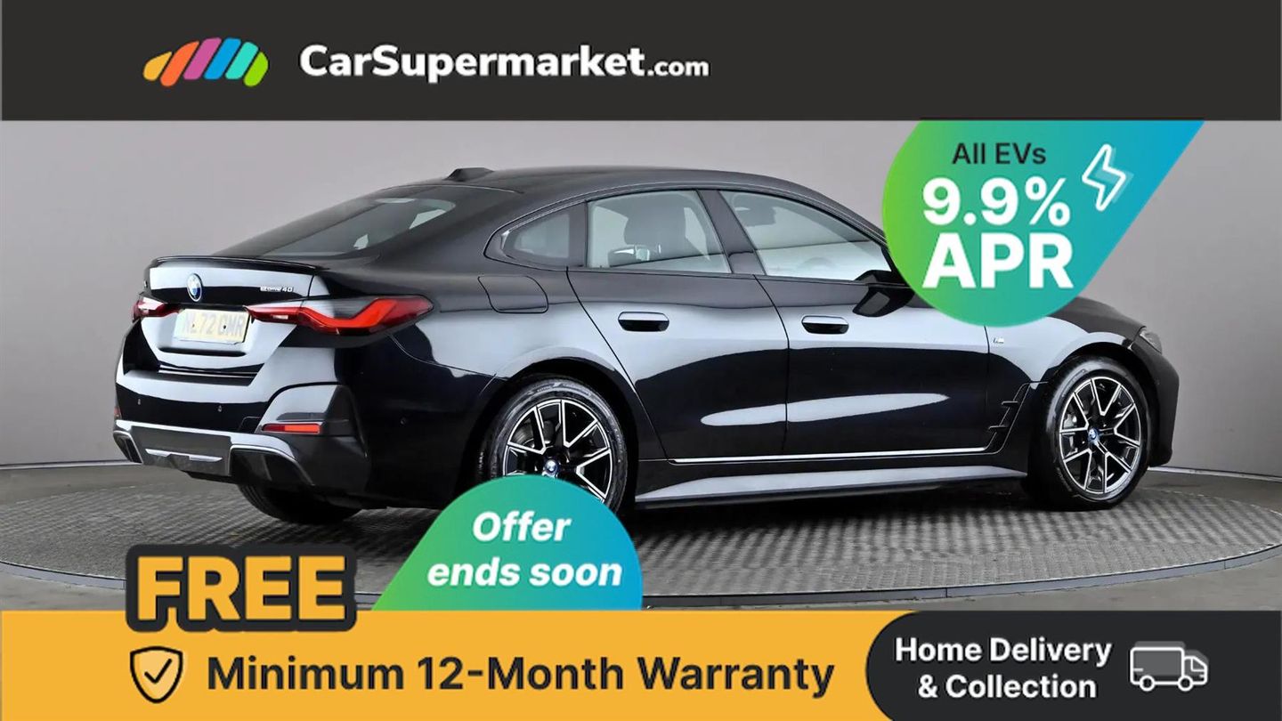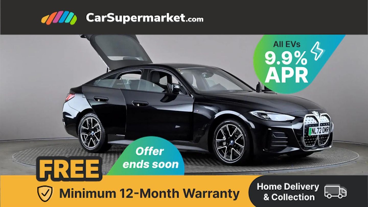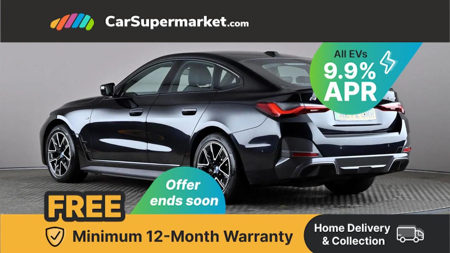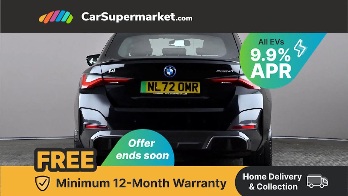 Cruise Control, Sat Nav, Heated Front Seats, 18" Alloy Wheels, Parking Sensors;This 2022 BMW i4 40 M Sport has been meticulously maintained by its single owner, boasting a clear vehicle history check and a recent service completed on 14th October 2025 at 45,217 miles, with its MOT valid until October 2026. This electric saloon offers a compelling blend of performance and practicality, featuring a substantial 84 kWh battery that provided an impressive maximum range of 351 miles when new. The M Sport trim enhances its dynamic appeal, and you'll appreciate the generous boot space for all your needs. Experience the thrill of instant electric power with the i4's remarkable acceleration, achieving 0-62mph in just 5.7 seconds, a performance that sets it apart from many other electric vehicles. Charging is convenient, with a full charge at home using a 7kW charger taking approximately 12 hours and 30 minutes, while rapid public charging can replenish the battery from empty to 80% in a swift 34 minutes. This combination of range, performance, and charging flexibility makes the BMW i4 40 M Sport an excellent choice for both daily commutes and longer journeys.