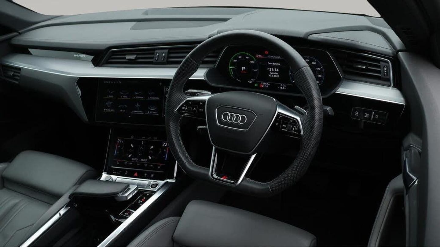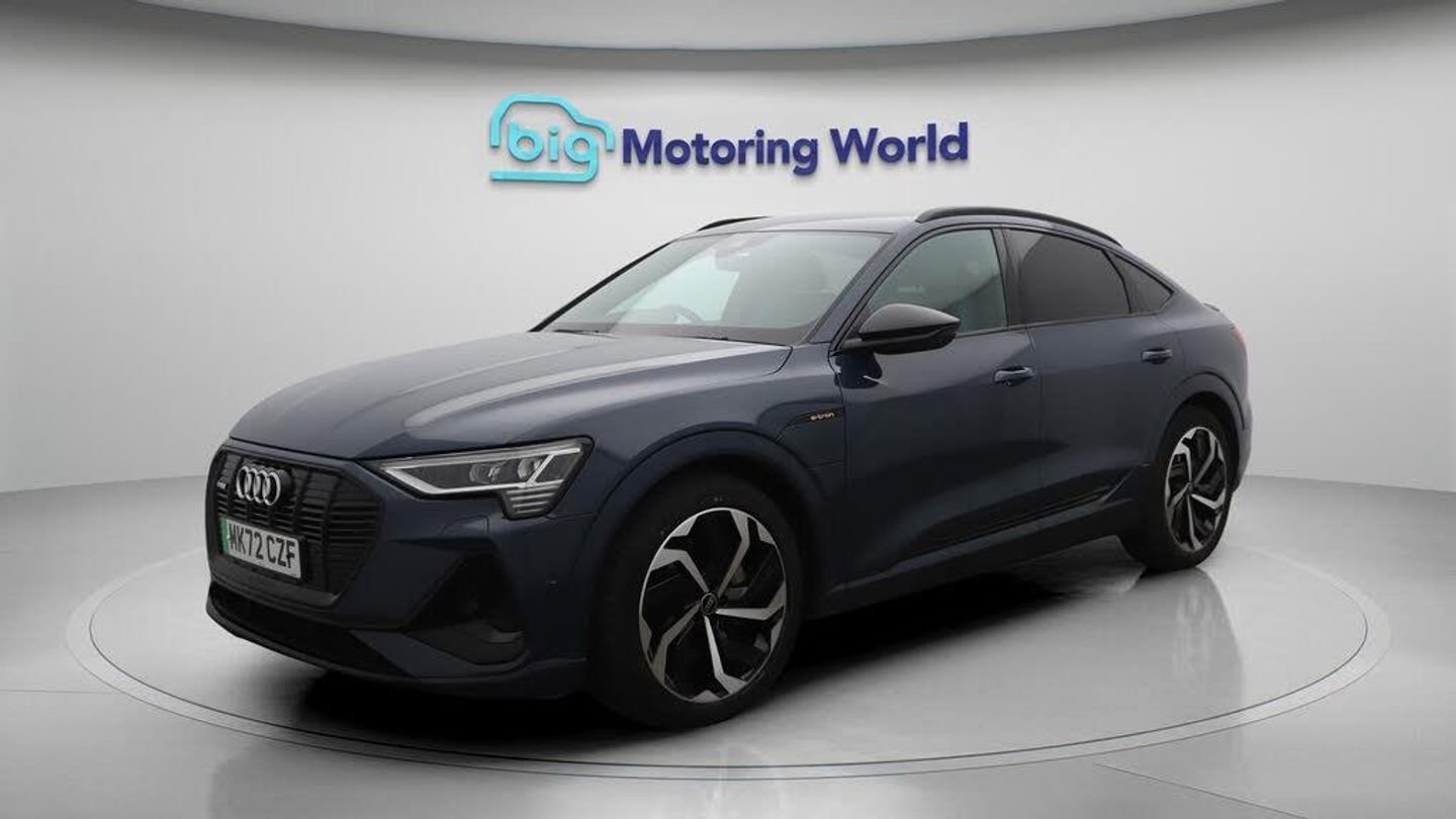 All Wheel Drive,21'' Alloy Whee-Our Audi e-tron comes with optional extras worth £750. Specification includes a range of fantastic features including All Wheel Drive, 21'' Alloy Wheels, Leather Seats, Air Suspension, Apple CarPlay, Lane Assist, S Line Body Styling, Android Auto, Privacy Glass, Heated Seats Specification information is supplied by CAPHPI and may vary to the actual car. This data does not form any part of a buying contact. Please check specification prior to purchase in-store. The MOT is valid until September 2026, visit bigmotoringworld.co.uk for more photos, a 360 tour, service history and a free HPI report.Were BIG on peace of mind and this Blue Audi e-tron has completed our comprehensive 200 point inspection and passed all checks. Its ready for you to drive away with immediate collection in-store. We include a 90-day warranty as standard plus an option to extend for up to 3 years.Reserve this car exclusively for you, safely and securely at bigmotoringworld.co.uk, with a fully refundable £99 deposit. Test drive before you buy, with no commitment, no hassle and a completely haggle free experience. Still searching and want to see thousands more cars? We are BIG on choice with over 8000 cars to choose from.Visit our award winning web site bigmotoringworld.co.uk.Were Big Motoring World and were BIG on what matters to you.