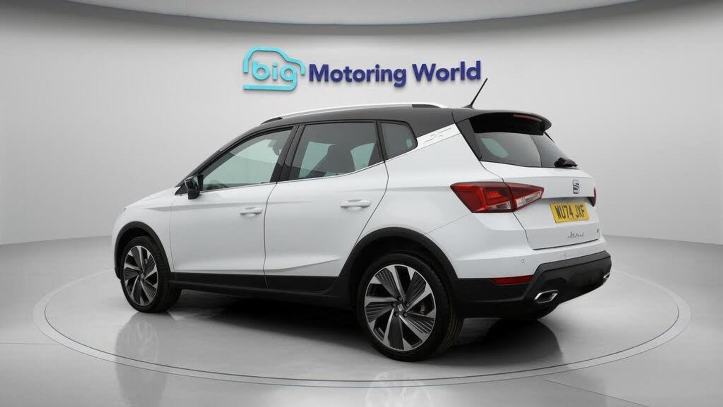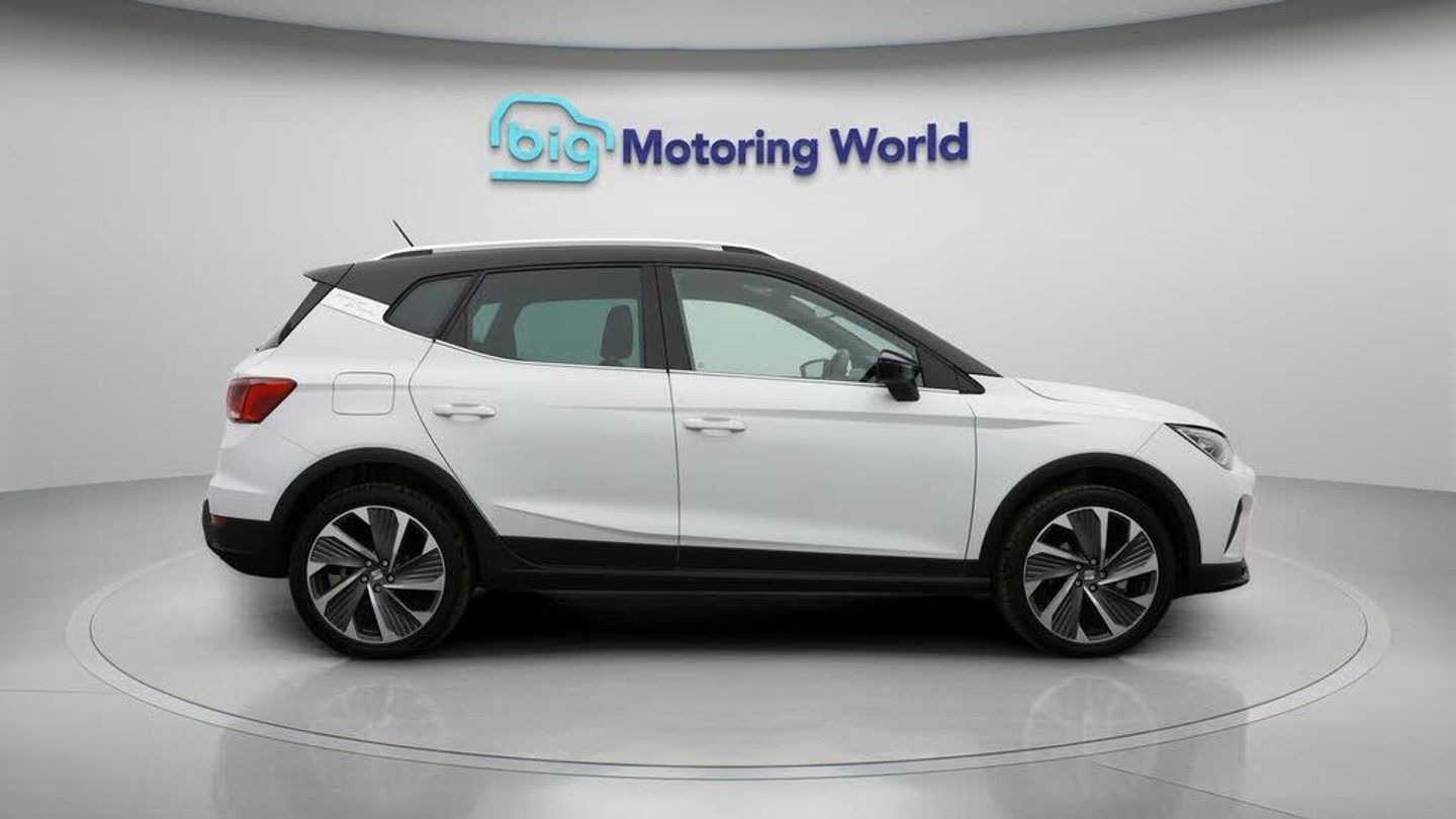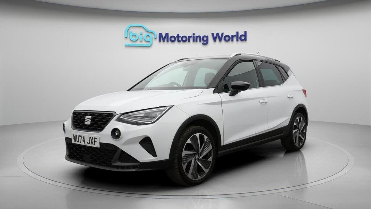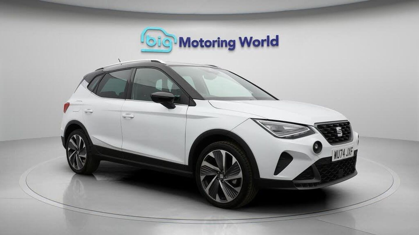 18'' alloy wheels,Part Leather-Our SEAT Arona is finished in White. Specification includes a range of fantastic features including 18'' alloy wheels, Part Leather Seats, Apple CarPlay, Digital Cockpit, Lane Assist, Android Auto, Satellite Navigation, Heated Seats, Bluetooth, Parking Sensors Specification information is supplied by CAPHPI and may vary to the actual car. This data does not form any part of a buying contact. Please check specification prior to purchase in-store. The MOT is valid until December 2027, visit bigmotoringworld.co.uk for more photos, a 360 tour, service history and a free HPI report.Were BIG on peace of mind and this White SEAT Arona has completed our comprehensive 200 point inspection and passed all checks. Its ready for you to drive away with immediate collection in-store. We include a 90-day warranty as standard plus an option to extend for up to 3 years.Reserve this car exclusively for you, safely and securely at bigmotoringworld.co.uk, with a fully refundable £99 deposit. Test drive before you buy, with no commitment, no hassle and a completely haggle free experience. Still searching and want to see thousands more cars? We are BIG on choice with over 8000 cars to choose from.Visit our award winning web site bigmotoringworld.co.uk.Were Big Motoring World and were BIG on what matters to you.