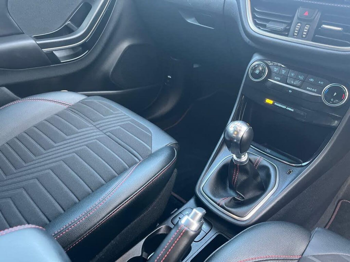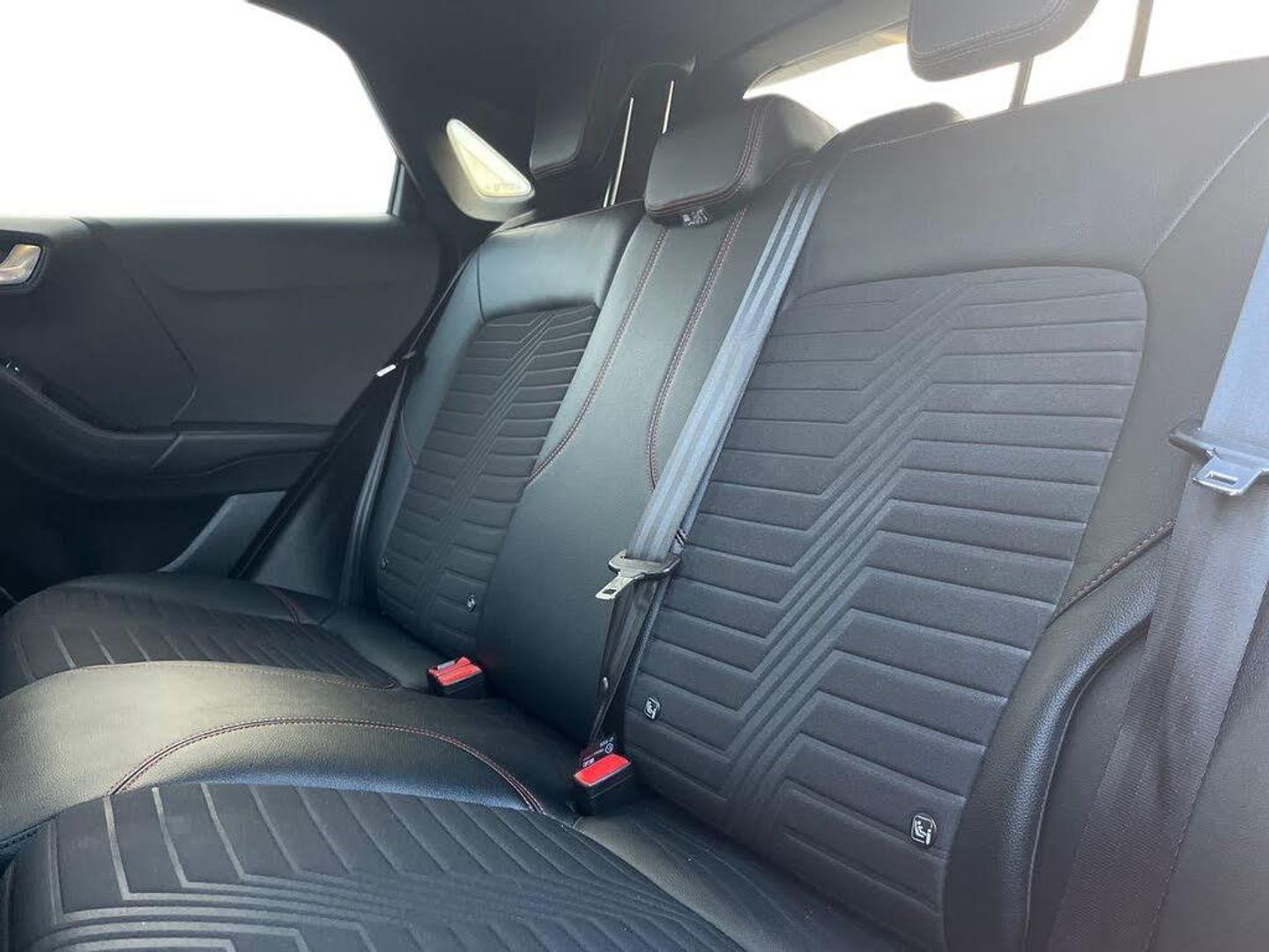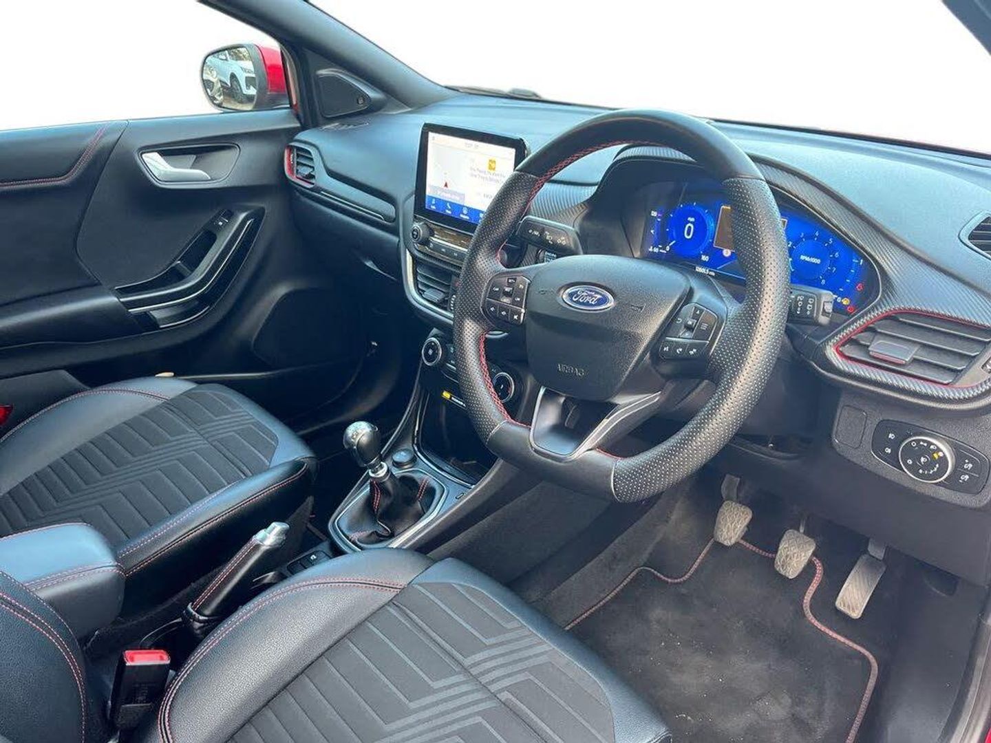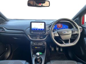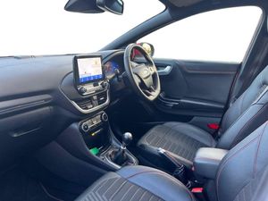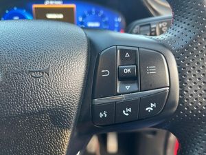 Driver impairment monitor, Emergency call service, Ford easy fuel, Full digital 12.3" instrument cluster, Lane keeping aid with lane departure warning, Power assist steering, Power start button, Rear parking sensor, Selectable drive modes(Normal, sport, Eco, trail, slippery), Speed sign recognition, Sport suspension, Automatic headlights with auto high beam, Automatic rain sensing wipers, Front fog lamps, LED daytime running lights, LED rear lamps, Power foldable heated door mirrors with puddle lamps, Privacy glass to side rear windows and tailgate glass, Quickclear heated windscreen, Rear side wing doors, Rear wiper, ST-Line body styling kit with unique grille and large body colour rear spoiler, Third brake light, 3 seat bench in 2nd row, Centre console with armrest and stowage, Ford megabox extended bootspace, Front and rear head restraints, Front floor mats, Manual 4 way driver seat adjust with lumbar adjustment, Manual 4 way passenger seat with lumbar seat adjustment, Sensico partial premium upholstery, Single front passenger seat, ST-Line flat bottomed sensico leather steering wheel with leather handbrake and aluminium gear knob, Wireless charging pad with electronic air temperature control (EATC), B&O Premium Audio system + Ford SYNC 3 navigation pack - Puma, 3 rear seatbelts, Child safety lock, Electronic stability control (ESC) and hill start assist, Pedestrian/cyclist detection & post-collision braking, Pre collision assist system, Tyre pressure monitoring system (TPMS), Thatcham alarm, Carbon look interior deco spears