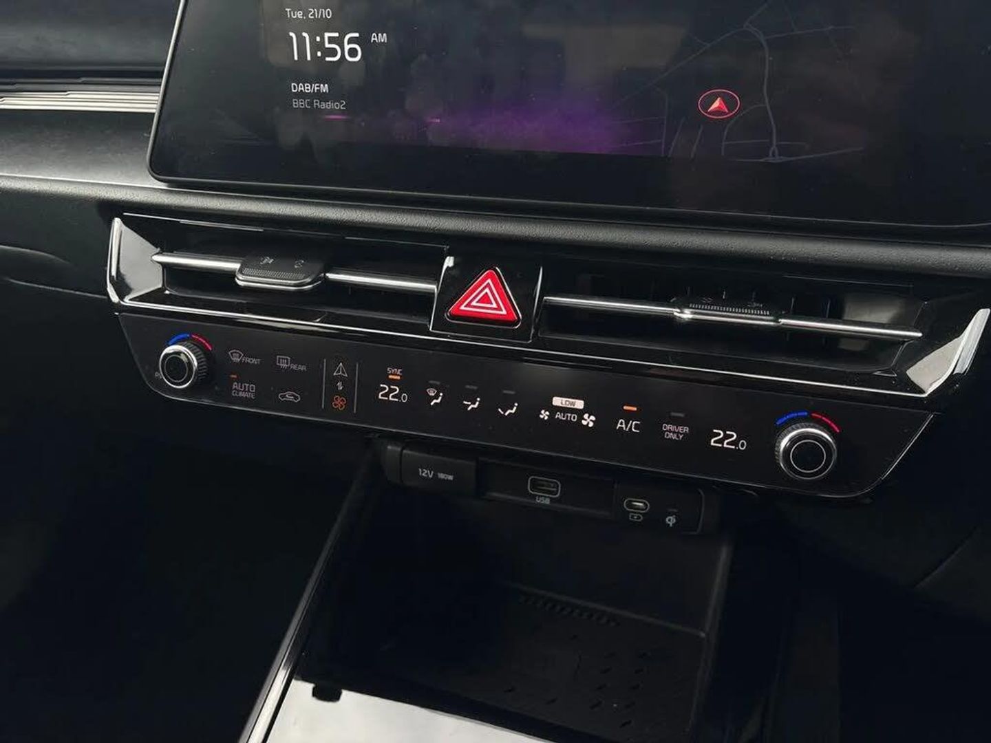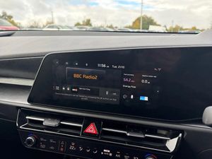 10.25" touchscreen satellite navigation,4.2" driver display screen,Apple car play/Android Auto with voice control,Blind spot collision avoidance assist,Drive mode select (Eco, normal, sport, snow),E-call,Emergency stop signalling system,Forward Collision-Avoidance Assist (FCA) 1.5 - City/Pedestrian/Cyclist/Junction turning,Front parking sensors,Highway Driving Assist (HDA),Intelligent speed limit assist,Kia Connect (UVO),Lane Following Assist (LFA),Lane keep assist,Motor driven power steering,Rear cross traffic collision avoidance assist (RCCA),Rear parking sensors,Reversing camera system,Safe exit warning (SEW),Smart cruise control with stop and go functionality,Tailgate,Trip computer with distance/fuel consumption/average speed,Wireless Smartphone charger,220v AC Inverter,'Shark fin' mobile antenna,6 speakers,Bluetooth with music streaming,DAB Digital radio,Steering wheel mounted controls,USB port for connection of a media device,Acoustic windshield,All round electric windows with drivers and front passenger auto up/down and safety function,Auto dimming rear view mirror,Automatic defog system,Automatic headlight control system,Black grille with chrome surround,Black window surrounds,Body colour bumpers,Body colour door mirrors,Body colour exterior door handles,Electrically adjustable and heated door mirrors with LED turn indicator,Electrically folding door mirrors,Front and rear chrome skid plates,Front fog lights,Gloss black wheel arches,Heated rear window,LED daytime running lights,LED Headlights,LED High mounted brake light,LED rear combination lights,Privacy glass - Rear windows and tailgate,Rain sensing front wipers,Rear fog lights,Rear roof spoiler,Rear side wing doors,Rear wiper,Roof rails,Solar glass windscreen,Welcome and follow-me home light functionality,Windscreen Washer Level Warning,12v socket in front,12V socket in luggage compartment,3 seat bench in 2nd row,60:40 split remote folding rear seats,All-round height adjustable headrests,Artificial leather centre console storage box,Artificial leather steering wheel,Automatic air conditioning,Centre console cupholder,Chrome coating interior door handles,Cloth / Artificial leather upholstery,Driver's power adjustable seat,Driver/passenger sunvisors with illuminated vanity mirrors,Drivers seat power lumbar support,Front and rear cabin lights,Front and rear door storage,Front passenger 1 x USB-C charging port,Front passenger seat manual adjustments,Glove box,Heated front seats,Heated steering wheel,ISOFIX Child seat top tethers and anchor fixings,Luggage area load cover,Luggage board,Luggage compartment light,Manually adjustable steering column,Paddle shifts,Rear centre armrest with cupholder,Rear passenger 2 x USB-C charging ports,Seatback pocket - driver,Seatback pocket - front passenger,Shift by wire SBW,Single front passenger seat,Ventiliation ducts to rear compartment,3 point seatbelts on all seats,ABS,Automatic unlocking of doors in case of impact,Curtain and side airbags,Dual shell horn,Electric parking brake with auto hold function,Electronic stability control,Front airbags,Front passenger airbag cut-off switch,Height adjustable front seatbelts,Hill start assist control (HAC),Knee airbags,Seatbelt reminder warning,Traction control,Tyre pressure monitoring system,Customisable automatic door locking,Customisable automatic door unlocking,Deadlocks,Engine Start/Stop Button with Smart Entry System,Locking wheel nuts,Manual child locks,Rear occupant alert,Smart key with motion sensor,Thatcham category 2 security alarm and immobiliser,Visible vehicle identification number,Warranty - 7 Years/ 100,000 miles,Centre fascia chopped carbon,18" Alloy wheels,Tyre mobility kit