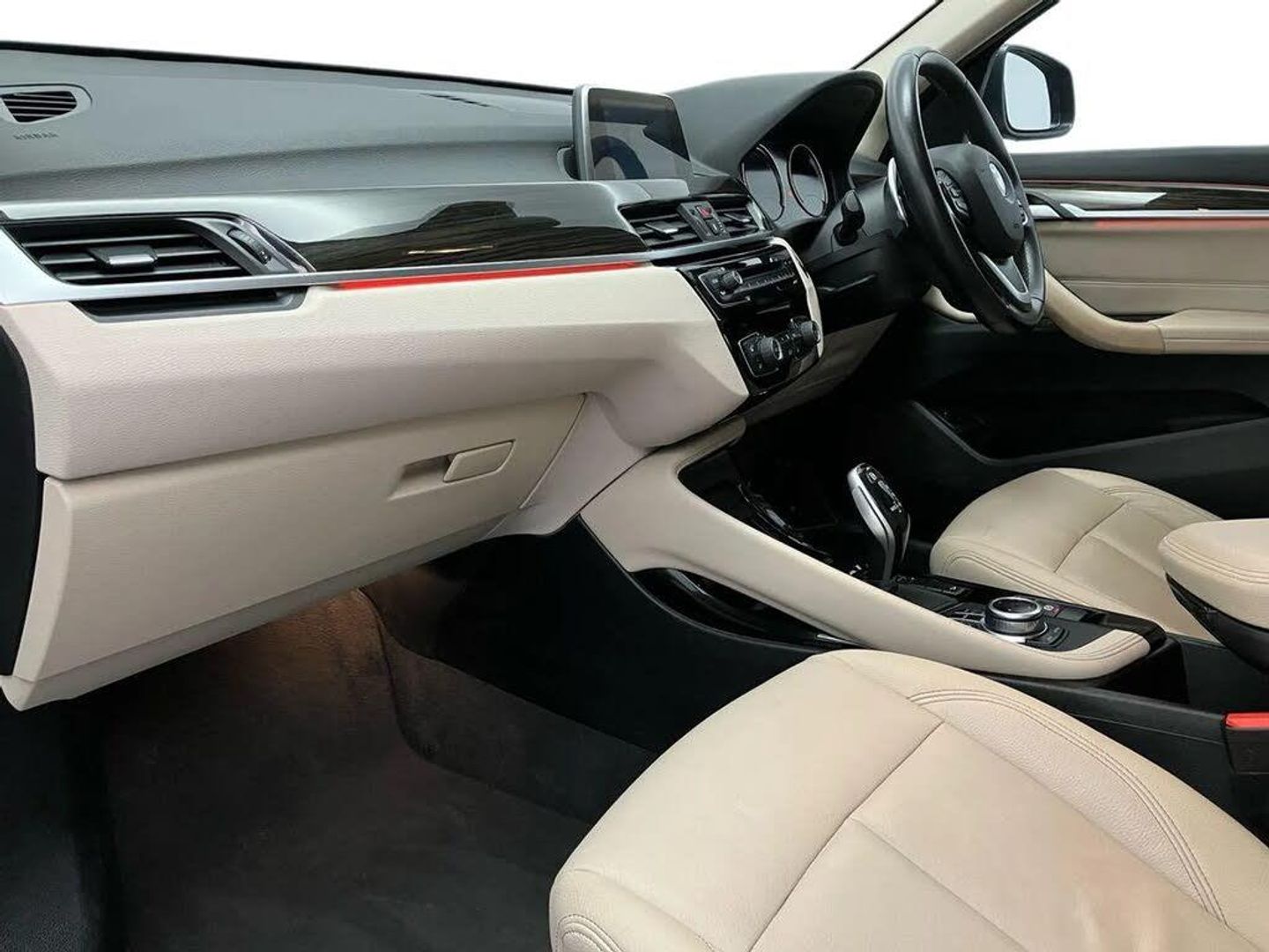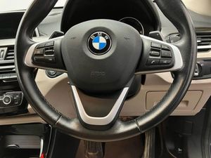 Active Guard incl speed limiting and lane departure functions with auto steering, and front collision warning with brake intervention,Ambient temperature display,Attentiveness assist,Automatic tailgate opening,BMW Online services,BMW remote services,BMW Teleservices,Brake pad wear indicator in front and rear,Instrument cluster with speedometer with miles per hour read out, tachometer and fuel gauge,Lights on warning by audio warning signal when ignition is switched off,On board computer,Outside temperature gauge,Personal Profile - automatic lock when driving away selectable,Real time traffic information,Service interval indicator,Servotronic PAS,Speed limiter,Stop/start button,Tyre puncture warning system,12V compressor with integrated sealant injection bottle and hose,Drive performance control with ECO PRO comfort + sport mode,Electronic differential lock,High precision injection,Performance Control,2 USB Power socket for rear seat,BMW professional radio with CD player,DAB Digital radio,USB connection located in centre console,USB/audio interface,Adaptive LED Headlights,Adjustable headlights,Body colour bumpers,Body colour door handles,Body colour door mirrors,Clear lenses direction indicator lights,Direction indicator side lights integrated exterior mirrors,Dynamic brake lights,Electrically adjustable and heated door mirrors,Exclusive door sill finishers,Fingertip control / anti-trap function on electric window,Follow me home headlights,Front air inlets with black matt finisher and silver matt highlight,Front and rear electric windows,Front bumper underbody protection in silver matt,Front fog lights,Halogen headlights,Headlight beam throw control,Heat insulating tinted glass,Heated windscreen washer jets,High level third brake light,Kidney grille with 14 matt aluminium fronted vertical slats,LED daytime running lights,Lightweight engineering,Rain sensor including auto headlights activation,Rear bumper underbody protection in black, grey and silver matt,Rear fog lights,Rear window aerial,Rear window wash/wipe,Reversing light in rear light cluster,Shark fin antenna,Sill cover in silver matt insert,Twin chrome exhaust tailpipes x2,Visible VIN plate,Welcome home function,12v power point in centre console,3 rear headrests,3 spoke sport leather steering wheel,4 grab handles,Black door sill finishers with BMW designation,Boot light,Centre console with cupholders,Child seat ISOFIX attachment for two outer rear seats and front passenger seat with anchorage points,Dakota leather upholstery with perforation and contrast stitching,Driver and front passenger heated seats,Driver/passenger sunvisors with ticket holders,Drivers folding storage compartment,Dual zone automatic air conditioning,Extended storage,Front and rear door armrests,Front centre armrest/sliding cover,Front/rear adjustable head restraints,Illuminated glovebox,Leather gearknob/gaiter/handbrake grip,LED ambient lighting in door trim,Luggage area underfloor compartment,Luggage compartment lighting,Luggage compartment loading edge with stainless steel insert,Multifunction steering wheel,Rake/reach adjustable steering wheel,Rear coded belt buckles,Sliding/split/reclining 40/20/40 rear seat with 60/40 split rear seat base,Steering wheel gearshift paddles,Velour floor carpets,Extended storage package - X1,3 rear 3 point seatbelts,ABS/EBD,Audio/visual collision warning system,Automatic Stability Control (ASC),Battery safety cut-off,BMW emergency call,Brake drying,Brake energy regeneration,Braking readiness,Collision mitigation braking system,Cornering brake control (CBC),Crash Sensor - activates hazard/interior lighting + unlocks doors,Driver/Front Passenger airbags,Driver/front passenger side airbags,Dynamic brake control,Dynamic stability control + (DSC+),Dynamic Traction Control - DTC,Electronic parking brake,Front and rear head airbags,Front passenger airbag deactivation,Front seatbelt force limiters,Front ventilated disc brakes,Hill start assist,Pyrotechnically pre-tensioned front seatbelts,Rear disc brakes,Rear door child safety locks,Seatbelt warning,Side impact protection,Twin horns,Tyre pressure monitor,Warning triangle and first aid kit,Auto door lock when driving,Central locking including boot and fuel flap with deadlocks,Engine immobiliser,Locking wheel nuts,Remote control Thatcham category 1 alarm,Remote control with integrated key with Pearl chrome highlight,High gloss black centre console,Low rolling resistance tyres,Extended Lighting,Exterior Mirrors - Electrically Folding with Anti Dazzle,Exterior Mirrors - Folding,Interior Trim - Fineline Stream Wood with Pearl Chrome Finisher,Mediterranean Blue,Perforated Dakota Leather - Oyster with Grey Highlight and Stitching,Reversing Assist Camera,Sun Protection Glazing
