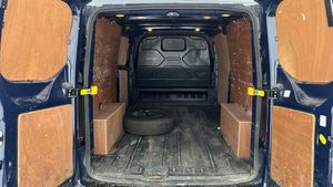 Easy fuel capless refuelling system, Embedded modem, Ford Eco mode, PAS, Selectable drive mode, Vehicle maintenance monitor, Audio controls mounted on steering wheel, Automatic lights and wipers, Body coloured door mirrors, Body coloured front bumper, Door open tyre carrier drop, Electric front windows with one touch facility for driver and front passenger, Emergency brake light flashing, Front splash guards/Mud flaps, Headlamp levelling, Intermittent front wash/wipe, Partialy body coloured rear bumpers, Passenger side sliding load door with track cover, Rear door edge warn reflectors, Rear mudflaps, Rear splash guards, Wide bodyside grey mouldings, 2 adjustable sunvisors, 2 Interior grab handles, Cloth upholstery, Driver and passenger sun visors, Header mounted courtesy lights - 2 map lights, Header mounted package tray, Height adjustable front headrests, Illuminated footwell, Lockable glove box, Map reading lights, Molded gear shift knob, Moulded cab floor liner, Partial molded headliner, Partial rubber inside floor cover, Passenger underseat storage box, Reach and rake adjustable steering column, Recirculation heater, Side rear door trim panel - Level 1, Tool kit, Washer tank level warning lamp, Interior trim accent pack B- Transit custom, Less rear seat pack - Transit Custom, 3 point seatbelts for all seats, Driver's airbag, Dual note electric horn, Height adjustable drivers seatbelt mount, Passenger seatbelt height adj, Seatbelt remainder for driver and passenger, Auto locking on drive-away, Auto relocking, Power door dead locks, Remote central locking, Speed dependent power lock group, 2 12v sockets, 80 litre fuel tank, ABS, Auto start/stop system, Diesel particulate filter, ESP, Extra heavy duty alternator, Mechanical parking brake, Roll stability control, Side wind mitigation, Standard duty suspension, Full wheelcovers