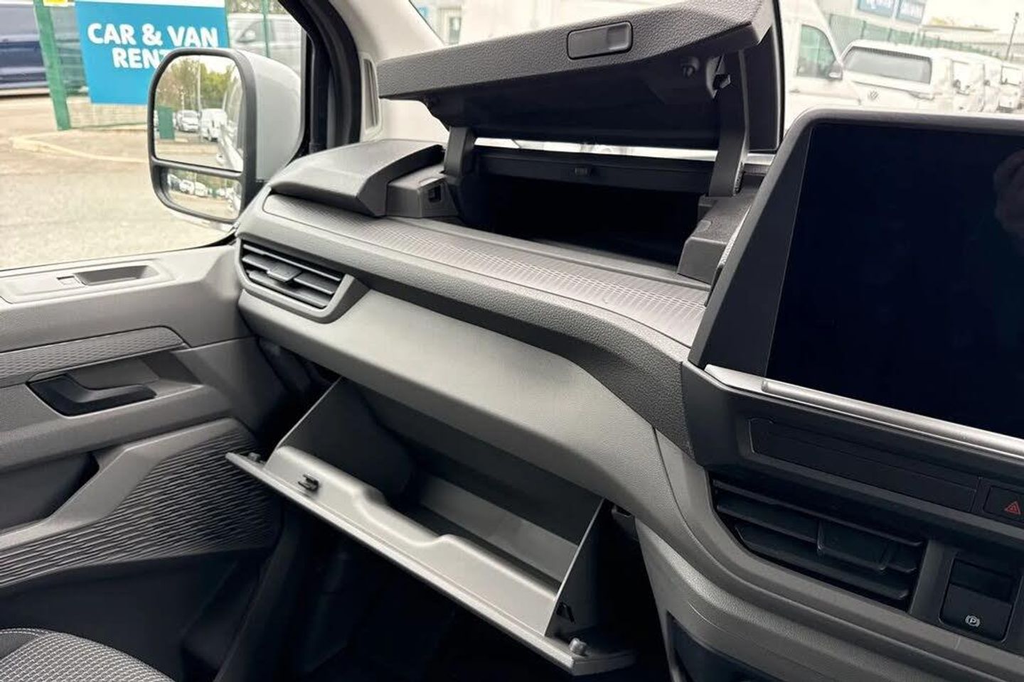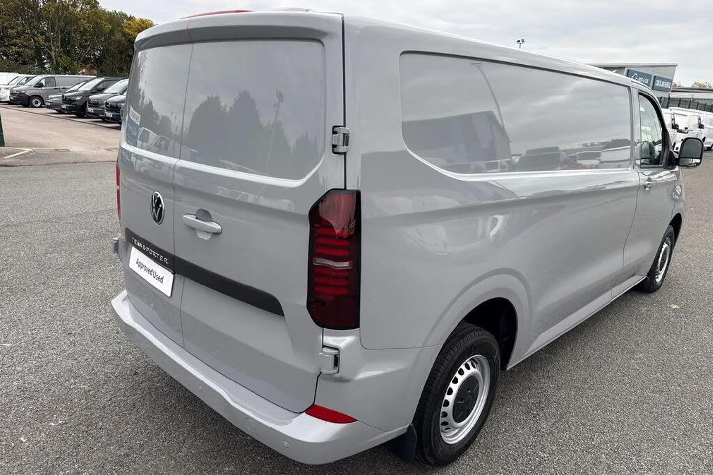 Stone Grey,Heated Windscreen,LED's In Load Area,Parking Sensors,Keyless Access,LED's Headlamps,Bulkhead,Power Folding Mirrors,Single Zone Air Conditioning,Grad Handle On Passenger Side,Wireless Phone Charger,230V Outlet,Rear View Camera,Keyless Start,Mudflaps,Multi Function Steering Wheel,Alarm,12V Outlet on D Pillar,Green tinted heat insulating glass in cab and passenger compartment,Heated front windscreen,Windshield wiper intermittent control with rain sensor for windshield wipers,16" chassis with 16" brake system,Radiator grille with 2 chrome trims,Transporter nameplate on the rear fender,Automatic headlight control,leaving home and manual coming home feature,Front fog lamps with cornering light,Electronic stability control,ABS,ASR with deactivation button,hill start assist and brake assist system,Start/stop system with regenerative breaking,Adaptive cruise control,Cross wind assist,Electromechanical speed sensitive power steering,height and longitudinally adjustable steering column,Left convex exterior mirror,Power adjustable and heated exterior mirrors,Power folding adjustable door mirrors with separately heated,Right convex exterior mirror,3 point height adjustable seat belts on outer seats cab with electric pretensioners,Driver and front passenger airbag with front passenger airbag deactivation,Single tone horn,Warning buzzer and light for driver and front passenger seat belt not fastened,Without child safety lock in passenger compartment,Mobile phone interface,2 USB interfaces type C in dashboard,4 speakers with 2 tweeters and 2 woofers,Composition colour radio with 6.5" touchscreen,Digital radio reception (DAB+),Volkswagen app connect,Closing rear wing door with unlatching from the inside,Rear wing doors without window apertures,Dimmable illuminated instruments,Driver alert with Multi-function display plus,Multi function display plus with black and white display,eCall emergency system,Forward collision warning front assist with autonomous emergency braking,Diesel particulate filter,Dust/pollen filter,3 spoke leather wrapped multi function steering wheel,Auto dimming breakaway interior rear view mirror,Comfort headliner in cab,hardboard roof trim in passenger and load compartment,Glove compartment with illumination,High partition,Refrigerant R134a,Rubber floor covering in cab,Standard lower part dashboard in palladium,Storage compartments on cab seats and reading light,LED Interior lighting in load and passenger compartment,Front and rear left without window closed side panel in load compartment,Interior plastic loading edge protection,Without right side window apertures in passenger and load compartment,Comfort pack - Transporter,Exterior pack without fog light- Transporter,Non smoker pack - Transporter,Front seats on the right in 1st row of seat,Manual adjustable lumbar support for right single seat in 1st row seats,Anti theft alarm system with interior monitoring in cab,backup horn and towing protection,Lockable wheel bolts,16" Clayton alloy wheels