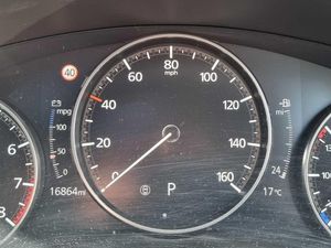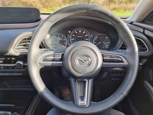 7" TFT Colour driver instrument panel display, 8.8" Colour centre touch screen display with Mazda Connect infotainment, Adaptive cruise control (Mazda radar cruise control) features stop and go, Apple car play/Android Auto, Blind spot monitoring with rear cross traffic alert, Drive mode selector, Driver attention alert system, E-call with GPS, Emergency stop signalling system, Engine start/stop button, Front and rear parking sensors, Integrated bluetooth, Integrated Mazda navigation system, Intelligent speed assist, Lane keep assist system (LAS) with Lane departure warning system (LDWS), PAS, Power lift gate, Reversing camera, Service indicator, Trip computer, Window projected colour active driving display (head up display) with traffic sign recognition, i-stop, 2 USB charging ports, Bose surround sound system with 12 Speaker, Bose center point, Bass match and audio pilot technology, CD player, DAB Digital radio, Multimedia Commander including separate volume dial, Steering wheel mounted audio/bluetooth controls, Adaptive LED Headlights, Auto dimming driver's door mirror, B-pillar and C-pillar garnishes in gloss black finish, Body coloured, electrically adjustable, heated auto power folding door mirrors with integrated indicators, Coming/leaving home lighting function, Door mirrors with tilt-down function when reversing, Dual chrome exhaust, Dusk sensing headlights, Electric front/rear windows with one touch auto up/down, Frameless auto dimming interior rear view mirror, Front kodo turn signal, Gloss black front grille, Gloss black rear roof spoiler, High beam assist, LED headlamps with auto levelling, Power tilt/slide sunroof, Privacy glass (rear side windows and rear screen), Rain sensing front wipers with adjustable speed and intermittent wipe, Rear fog lights, Rear wiper, Signature front LED daytime running lights, Signature LED rear combination lights with LED rear turn lights, 12V power outlet in centre console, 60/40 split fold down rear seats, Chrome horn pad ring, Dashboard, door cards and front centre armrest in rich brown leather, Driver and front passenger visors with covered vanity mirror and driver ticket holder, Driver seat memory function, Driver's seat, power tilt, slide, recline, height and lumbar adjustment, Driver, Front passenger and two rear grab handles with coathooks, Dual zone climate control air conditioning with rear air vents, Folding rear centre armrest with two cup holders, Front and rear (x3) head restraints, Front and rear door pockets, Front and rear LED lighting, Front armrest, Front centre storage with two cupholders, Front passengers seat manual slide, recline and height adjustment, Glovebox illumination, Heated front seats with 3 stage setting, Heated steering wheel, ISOFIX child seat anchorage points attached on outer rear seats, Leather wrapped gear shift knob, Leather wrapped steering wheel with telescopic and tilt adjustment, Luggage compartment light, Paddle shift controls, Rear passenger seat map pockets, Roof mounted sunglasses holder, Vinyl leather door panel inserts, 3 point ELR front seat belts x2 with pretensioners, 3 point ELR rear seat belts, Anti-lock braking system (ABS), Driver/Front Passenger airbags, Drivers knee airbag, DSC - Dynamic Stability Control, Electronic parking brake with auto disengage function and auto hold function, Front and rear curtain airbags, Front passenger airbag cut-off switch, Front side airbags, Front smart city brake support, G-Vectoring control plus, Hill launch assist, Mild Hybrid system with regenerative braking, Seatbelt reminder for driver/front passenger and rear seats, Traction control system (TCS), Tyre pressure monitoring system (TPMS), Remote central locking with deadlocking and automatic door lock when driving, Smart keyless entry, Thatcham accredited alarm and immobiliser, 18" Bright silver metallic alloy wheels, Emergency tyre repair kit