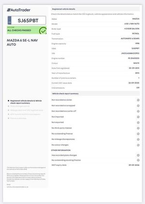 Prime Motor World are proud to present this immaculate Mazda 6 which is well maintained & mechanically sound.-----------------------------------------FULL SERVICE HISTORY | HPI CLEAR | 1 PREVIOUS OWNER | ULEZ COMPLIANT | RECENTLY SERVICED | MOT UNTIL SEP 2026 (ADVISORY RECTIFIED) | 2 KEYS-----------------------------------------Service History Schedule: 8k (Mazda)13k (Mazda)18k (Mazda)23k (Mazda)30k39k50k58k-----------------------------------------Specifications: Front & Rear Parking Sensors Sat Nav Keyless Start Electric Parking brake Start & Stop Cruise Control with Speed Limiter Auto Lights Auto Wipers Multifunctional Steering Wheel Multiple Driving Modes Isofix Bluetooth Radio CD DAB------------------------------------------If you have any questions, please feel free to get in touch. We will be more than happy to assist you.------------------------------------------ Free 3 Months Nationwide Warranty inclusive of Parts & Labour (with the Option to extend up to 6, 12, or 24 month) HPI Clear - Certificate provided Test drive/Inspections welcomed Part Exchange (P/X) considered No Admin Fee (Finance through 3rd party will incur a fee of £300 + VAT) All Major Credit/Debit Cards accepted for payment (No Cash accepted) Home delivery available (additional charges apply) Post-Sale Support Open on Weekends & Bank Holidays (flexible viewing hours) Viewings by Appointment only.-------------------------------------------Here at Prime Motor World, we offer fantastic deals on wide range of vehicles. We take pride in delivering outstanding Customer Service and highly competitive pricing, ensuring your satisfaction with every purchase. We maintain high standards of quality while preparing all our vehicles. For more stock, please visit our website www.primemotorworld.co.uk-------------------------------------------Disclaimer: Every effort has been made to ensure the accuracy of the above information but errors may occur. Please confirm with a salesperson.-FSH|F&R SENSORS|NAV|DAB|ULEZ