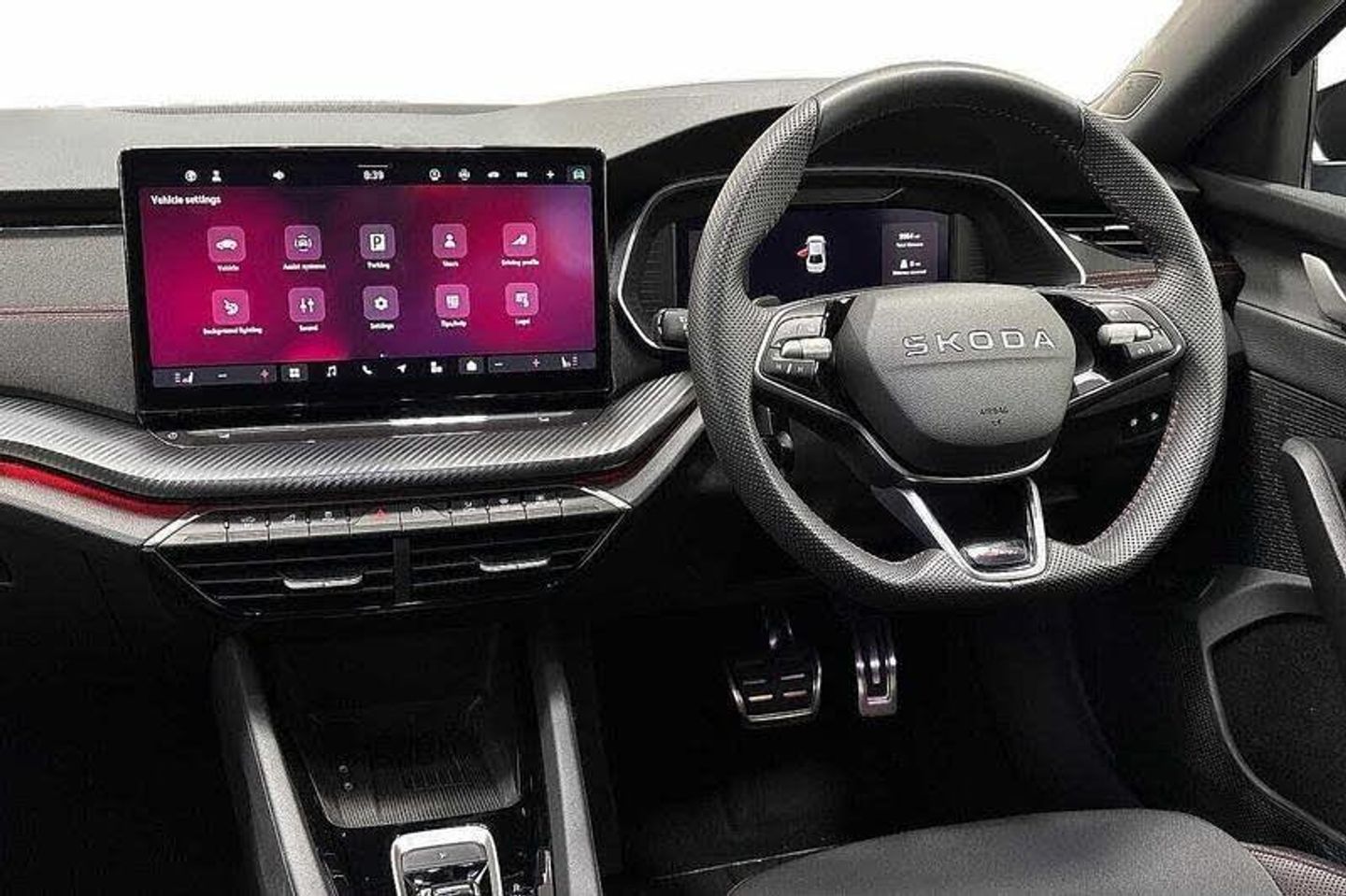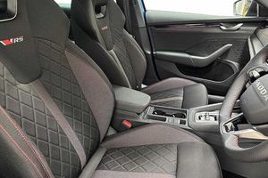 Metallic paint, Head up Display, Winter package premium - Octavia Sportline DSG, 18 Space saving spare wheel, Metallic - Race blue, vRS Design Selection - Black fabric with red stitching, Aero front windscreen wipers with intermittent function, Electric front and rear windows, Rain and light sensors, Black sport exhaust pipes, Body colour bumpers, Body colour door handles, Exterior gloss black sports styling including front grille, window surrounds, door mirrors and badging, Ice scraper in fuel cap, Rear side wing doors, Unique vRS bumpers and exterior styling, High beam control, High level third brake light, LED daytime running lights, ESC including ABS, EBV, MSR, ASR, EDS, HBA, DSR, Front assist system, 3x3 point rear seat belts, Alarm with interior monitoring, tilt sensor and back up horn, Curtain airbags and front side airbags, Driver and front passenger airbags, Drivers knee airbag, Front central airbag, Passenger airbag deactivate switch, Three point seat belts in front and rear, Warning reflectors in front door, Voice control system, 13 touchscreen display with navigation, DAB Digital radio, 1x USB Typc C port in rear view mirror, 4x USB Type C ports - 2x in front centre console and 2x in rear (45W), eCall emergency system, Wireless charging (15W) with cooling function, Driver fatigue sensor, Virtual Cockpit - 10.25 digital display, 3 rear headrests, 3 seat bench in 2nd row, Front head restraints, Front sport seats, Single front passenger seat, Unsplit rear bench seat, split folding backrest with centre armrest with cupholder, 12 volt socket in boot, Jumbo Box storage, Mechanical rear seat release from boot, Parcel shelf - folding, Steering wheel in black leather with black stitching, Storage compartments in left and right of boot, Sunglasses storage, Umbrella in door panel, Illuminated glovebox, Luggage compartment lighting x2 lights, Electronically controlled limited slip differential, Sun visors with mirrors, Comfort package - Octavia, Family package - Octavia, Light and view package plus - Octavia, vRS Design Selection pack - Octavia, Anti-theft wheel bolts, Keyless start/stop, 19 Elias anthracite alloy wheels, [Audio and Communications]Wireless SmartLink for Apple CarPlay and Android Auto, [Drivers Assistance]Drive mode selection, Traffic sign recognition, Tyre pressure monitor, [Exterior]Heated rear windscreen, Rear privacy glass, Gloss black diffuser, Gloss black spoiler, Logo projection in front doors, Red brake calipers, [Interior]Rear fog light on one side, Auto dimming rear view mirror, Electrically operated boot with virtual pedal, Gloss black air vent surrounds, Heated front seats, 4 foldable roof handles, Aluminium pedals, Interior door handles in dark chrome, Ticket holder, Waste bin in door panel, [Performance]vRS suspension, Progressive dynamic steering, [Safety and Security]Electronic parking brake, Hill hold assist, Turn Assist, ISOFIX on front passenger seat and outer rear seats, Two tone horn, Visual and acoustic seat belt reminder, Remote central locking