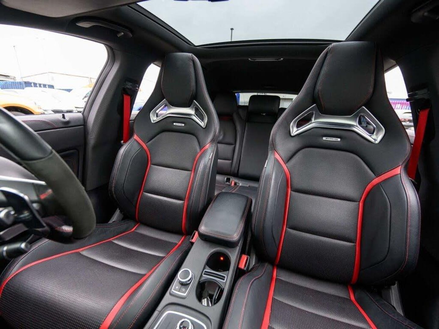 18in Alloy Wheels - AMG 10 Spoke Design - Painted in Titanium Grey with High-Sheen Finish, 7in Tablet-Style Colour Display, ABS - Anti-Lock Braking System with BAS - Brake Assist, AMG Bodystyling, AMG Drive Unit with Leather-Trimmed Gear Shift, AMG Dynamic Select with a Choice of Driving Modes - Comfort-Sport-Sport Plus and Individual, AMG High-Performance Braking System with 3-stage ESP, AMG Instrument Cluster with Colour Display and AMG Menu, AMG Performance Seats, AMG Radiator Grille with Twin Louvre, AMG Spoiler Lip, AMG Sports Exhaust System with Two Twin Black Chrome Plated Tailpipes, AMG Sports Suspension, ATTENTION Assist - Alerts the Driver to Increasing Fatigue and Inattention, Active Bonnet, Active Brake Assist with Hold Function and Hill Start Assist, Adaptive Brake Assist, Air Conditioning - Air Vents with Black Surround Red Insert and Cruciform Nozzle, Airbag - Kneebag for Driver, Airbags - Dual Stage - Driver and Front Passenger, Airbags - Sidebags for Driver and Front Passenger, Airbags - Windowbags for Driver and Front Passenger, Ambient Lighting - Interior Door Handles, Anti-Theft Protection Package, Armrest - Front on Centre Console with Fore-Aft Adjustment and Contrast Stitching with Stowage Compartment Beneath, Audio 20 Radio-CD, Automatic Child Seat Recognition Sensor - Pressure Sensor, Automatic Front Passenger Airbag Deactivation, Beltline Strips - Black, Brake Calipers with AMG Lettering at Front and Rear, Brake Pad Wear Indicator, Braking - Adaptive Brake Lights - Flash Under Emergency Braking, Bumpers - Body Coloured, Childproof Locks - Manually Operated for Rear Doors and Electrically Operated for Rear Power Windows, Crash-Responsive Emergency Lighting, Cruise Control with Limiter, DAB Digital Radio Tuner, Door Handles - Body Coloured, Door Mirrors - Electrically Adjustable and Heated, Door Mirrors - Painted Black with Integrated LED Indicators and Aspherically Curved Mirror Glass, Double Cup Holder in Centre Console, ESP - Electronic Stability Programme with ASR - Acceleration Skid Control, ESP Curve Dynamic Assist - AMG Tuned, Easy-Pack Automatic Powered Tailgate, Electric Parking Brake, Electric Windows - 4, Electronic Key - Chrome Surround, First Aid Kit and Warning Triangle, Floor Mats - Red Stitched Edging - AMG Lettering, Fluid Level Warning Indicator for Fuel - Oil - Coolant and Washer Fluid, Footwell Lighting - Front and Rear, Glass - Rear Windscreen - Heated with Timer Control, Headlamp Assist - Automatic Headlamp Activation in Dark Conditions, Headlamps - LED High Performance with Integrated LED Daytime Running Lights, High Level Third Brake Light - LED, ISOFIX and Top-Tether Child Seat Fixing Points in Rear - Two Outer Seats, Illuminated Front Door Sills with AMG Lettering, Illuminated Glove Compartment, Instrument Cluster with 4 Analogue Dials and Needles Suspended in Six-o-Clock Position, Interior Lighting - Courtesy White and Warning Red Lights in the Front Doors and Boot Lid, Interior Lighting - Sun Visor with Illuminated Vanity Mirror for Driver and Front Passenger, Interior Lighting in Rear with Integral Reading Lights and Locator Lighting, KEYLESS-GO Starting Function, LED Tail Lights, Lamp Failure Indicator, Lighting in Stowage Compartment, Load Securing Rings in Luggage Compartment, Luggage Compartment Cover, Media Interface, Mercedes Connect Me - Standard Services, Outside Temperature Gauge, Parking Pilot, Privacy Glass - From B-Pillar Backwards, Race Start Function, Rain-Sensing Windscreen Wipers with Two Sensitivity Settings, Rear Fog Light, Remote Central Locking and Crash Sensor with Emergency Opening Function, Roof Lining - Black, Seat Belts - Rear Three-Point - 3, Seat Belts Reminder - Front and Rear, Seat Occupancy Sensor - Front Passenger Seat, Seats - Front Cushion Angle Adjustment, Seats - Front Seats - Height Adjustable, Seats - Rear Seat Backrests - Split Folding 1-3 - 2-3, Service Indicator ASSYST, Side Skirts - Body-Coloured, Smartphone Integration, Sports Pedals in Brushed Stainless Steel with Black Rubber Studs, Steering - AMG Speed-Sensitive Sports Steering, Steering Column - Manually Adjustable for Height and Reach, Steering Wheel - Gear Shift Paddles, Steering wheel - 3-spoke 12-button AMG Performance Steering Wheel in Nappa Leather-DINAMICA Microfibre, THERMOTRONIC - Luxury Automatic Climate Control - Dual Zone, TIREFIT with Tyre Inflation Compressor, Trim - AMG Design in Black-Red, Trip Computer in Multi-Function Display Showing Current Fuel Consumption, Tyre Pressure Monitoring System, designo Seat Belts - Red