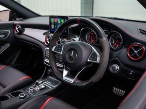 Sagitta is delighted to present for sale this stunning 2019 Mercedes-Benz CLA45 AMG Shooting Brake 4Matic in Metallic Cosmos Black with a Full Black Leather Interior with Contrast Red Flashings and Red Seat Belts, the car benefits from the following specifications, Satellite Navigation System, Reversing Camera, Bluetooth, Voice Control, Cruise Control, Apple Car Play, Keyless Entry, Electric Heated and Memory Seats, Parking Sensors, Multi-Function Steering Wheel, Stop Start System, AMG Performance Seats, AMG Dynamic Select, AMG Body Kit Front and Rear, Rear Spoiler, Sliding Glass Panoramic Sunroof, Electric Heated and Folding Mirrors, Privacy Glass, 19" Multi-Spoke Black Alloys with Red Brake Calipers , Service History at Mercedes at 24,702 miles, at 33,388 miles and then at Independents at 43,218 miles and the car will come with a Fresh Service , MOT till 14.10.2026, 2 Keys, More photos are available on our website, Part Exchange Welcome, all our cars come with a 6-month Warranty through Autoguard and 12 months of AA Roadside Assistance. Nationwide delivery is available, please contact us for a quote. Deposits can be taken over the phone. Payments can be made via bank transfer and Finance applications can be completed online. Whilst every effort is made to ensure the above details are correct, there may be some discrepancies, so please make sure to contact us for exact specifications and history on this vehicle. The vehicle specification displayed may not be exact for this vehicle. Please contact us to confirm the precise specifications.