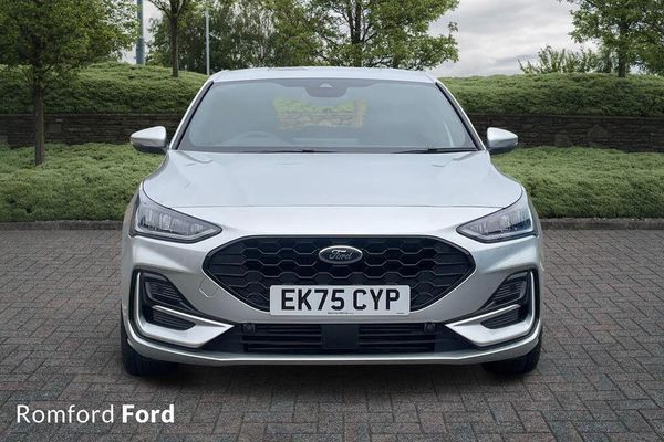 This 2025 Ford Focus T ST Line presents a superb ownership proposition, having had only one owner since new. This stylish hatchback is powered by an efficient 1.0 litre petrol hybrid engine, meeting Euro 6 emissions standards. It boasts the sporty ST Line trim, featuring a Ford Key Free System for effortless keyless entry and start, alongside a large 13.2 inch touchscreen with SYNC 4 navigation, compatible with both Android Auto and Apple CarPlay. For convenience and safety, it includes front and rear parking sensors with parking assistance, and dual zone electronic air temperature control for personalised cabin comfort. The striking full fixed LED headlights with LED daytime running lights ensure excellent visibility. Experience dynamic performance with this Focus, accelerating from 0 to 62mph in a brisk 8.4 seconds, a testament to its responsive hybrid powertrain. This acceleration figure highlights its capability compared to other vehicles in its class. The combination of advanced technology, efficient hybrid power, and the sporty ST Line styling makes this Ford Focus a compelling choice for those seeking a well equipped and engaging driving experience.